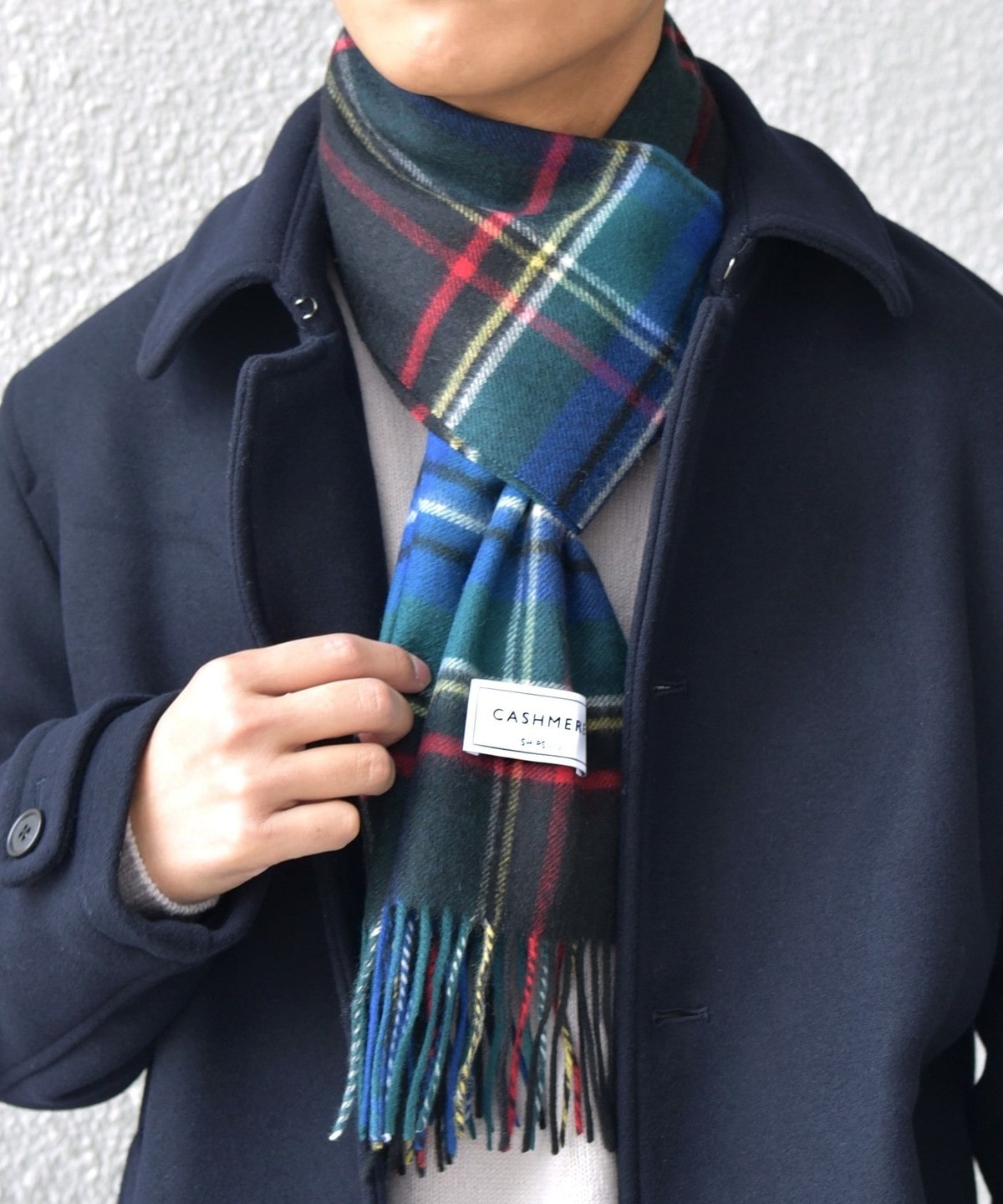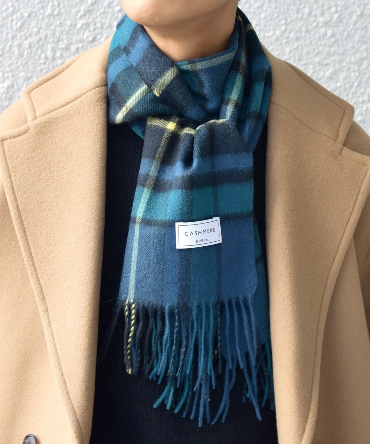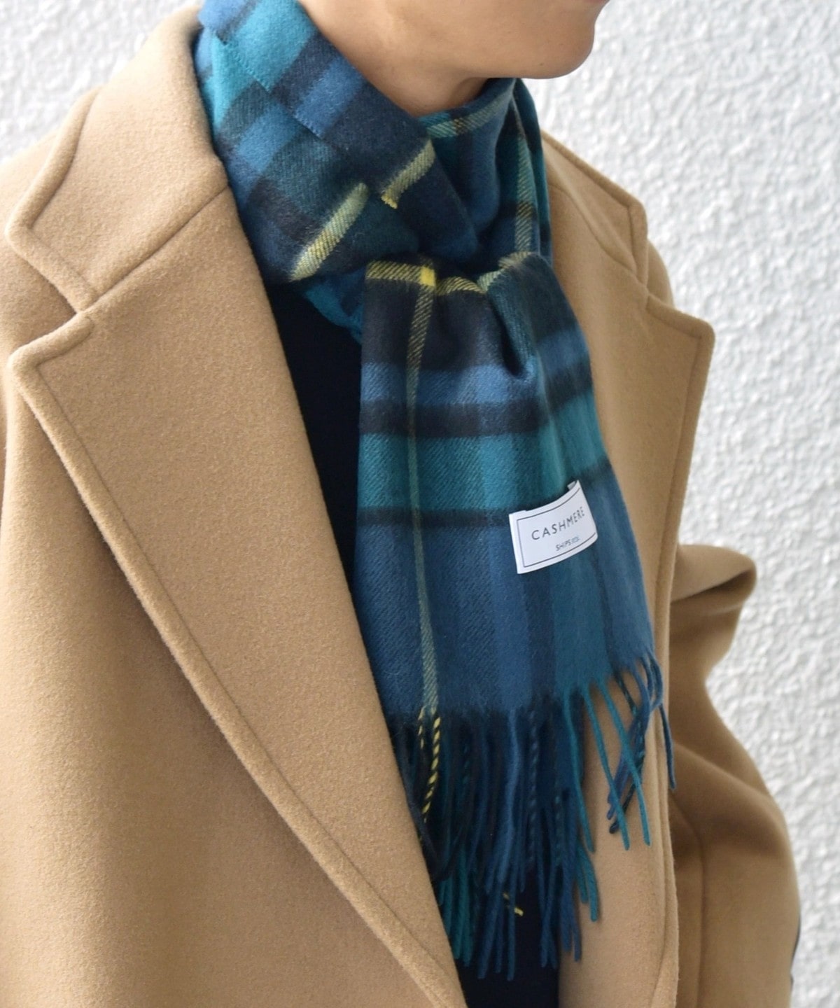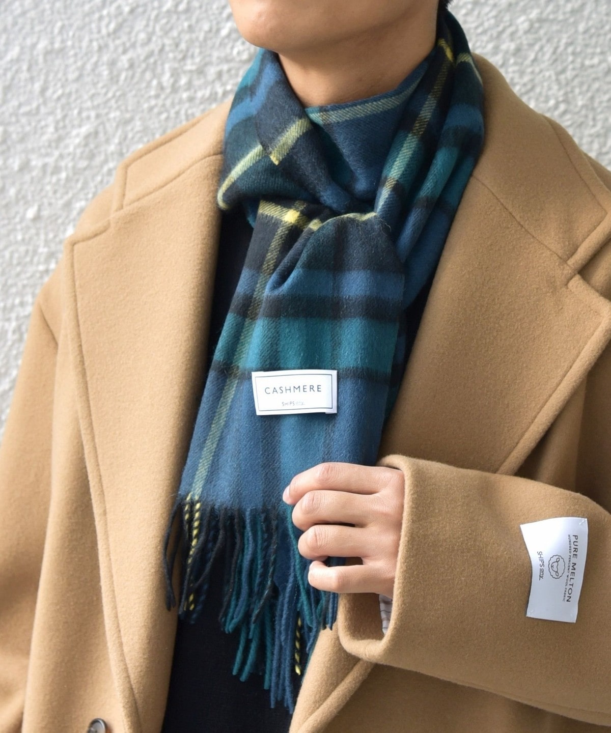 コーディネートのアクセントに最適なチェック柄の高級感あるカシミヤマフラー