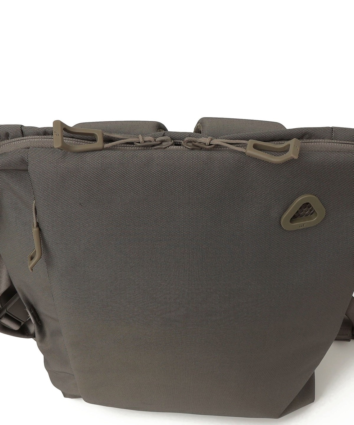 ペットボトルからリサイクルして作られた生地や、水を使わない染料で加工を施しており、生産過程で使用される水、化学薬品、CO2排出量を大幅に削減し、かつデザイン性、機能性に優れたバッグとなっています。