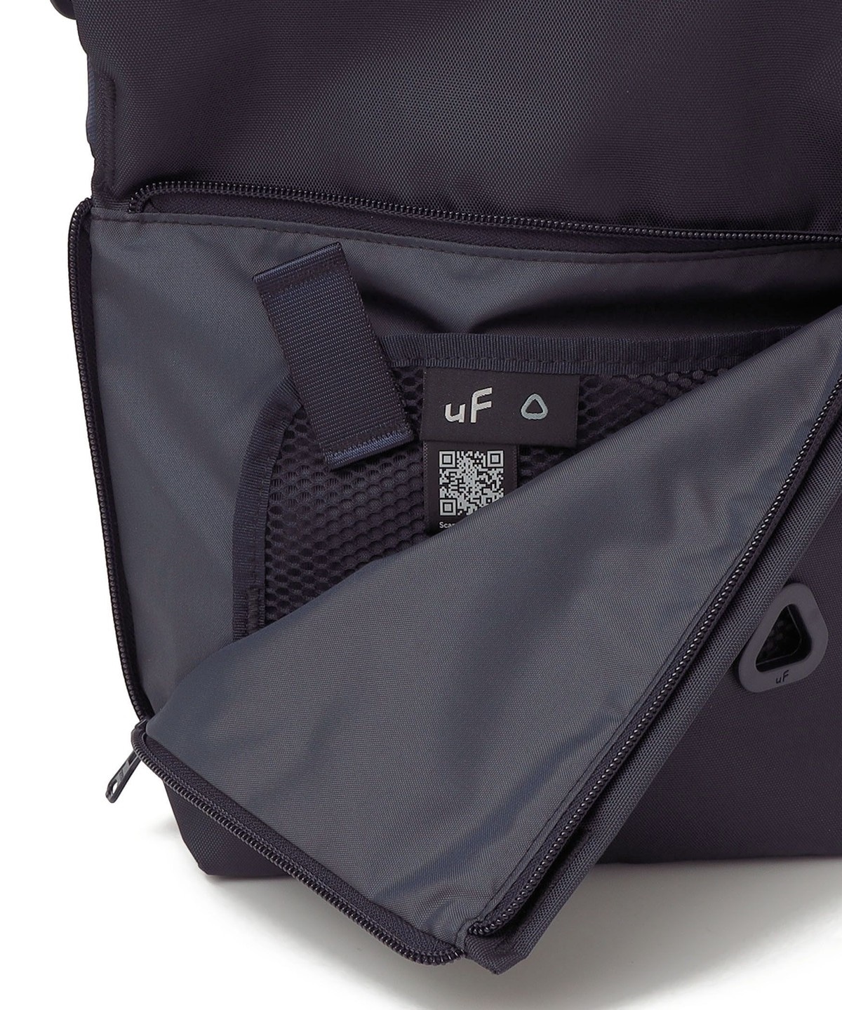 フロントにあるポケットは、独自のL字開閉+メッシュポケットで全体がパッと見えるため、ものを探す時間が省け、ストレスフリーな仕様です。