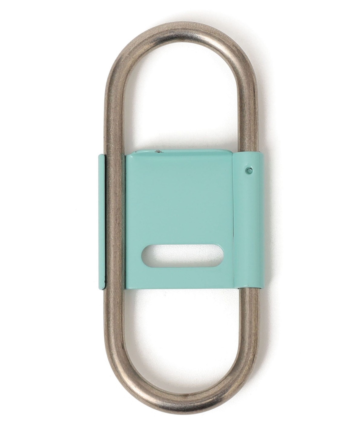押し込むことで開閉するスプリング式で脱着しやすく、センターパーツがストッパーになっているのでベルトループに付けた際にキーリングと鍵の回転を防ぎます。