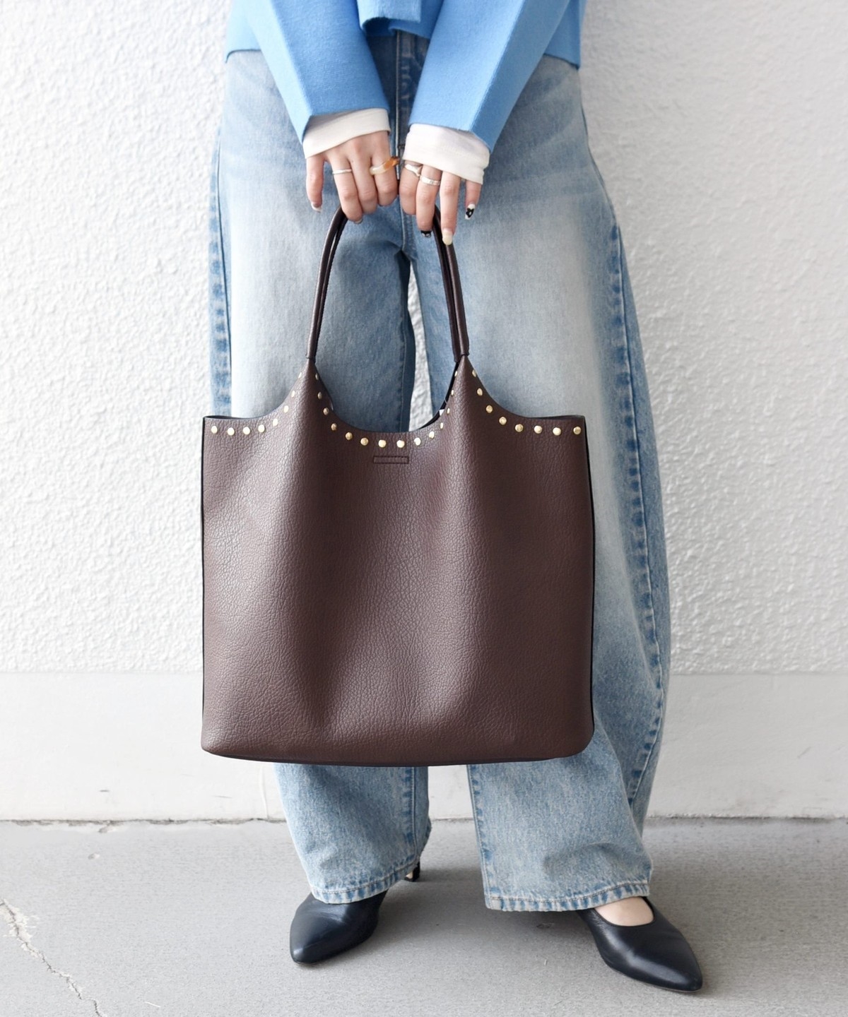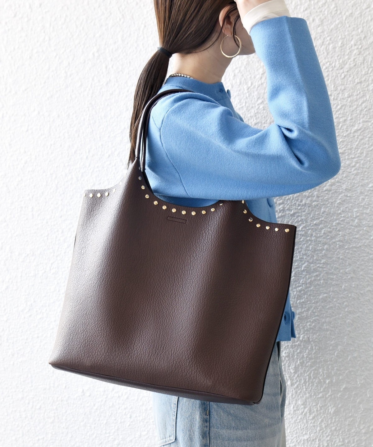 《追加予約》【WEB限定】SHIPS any: ポーチ付き スタッズ A4 トート バッグ