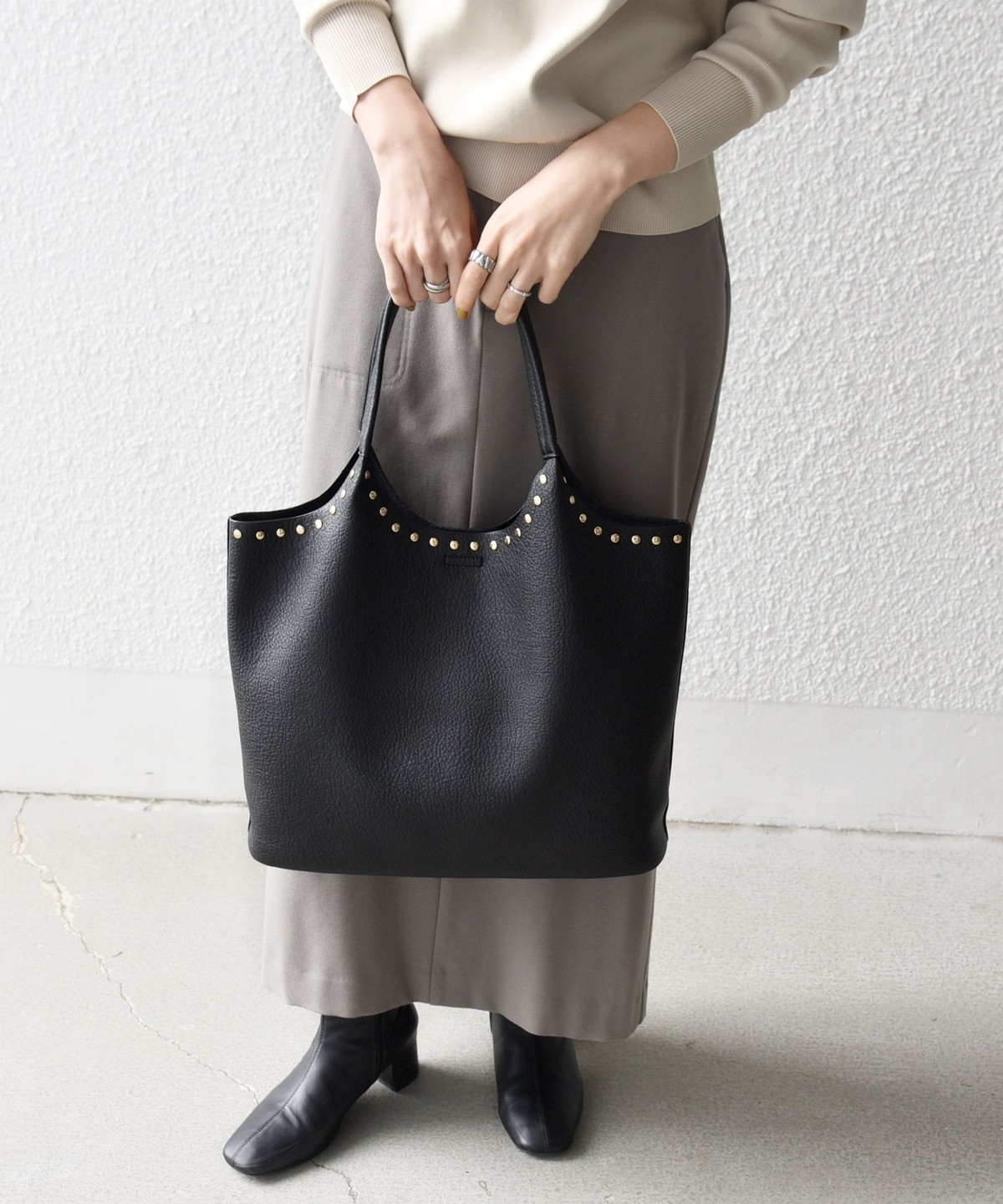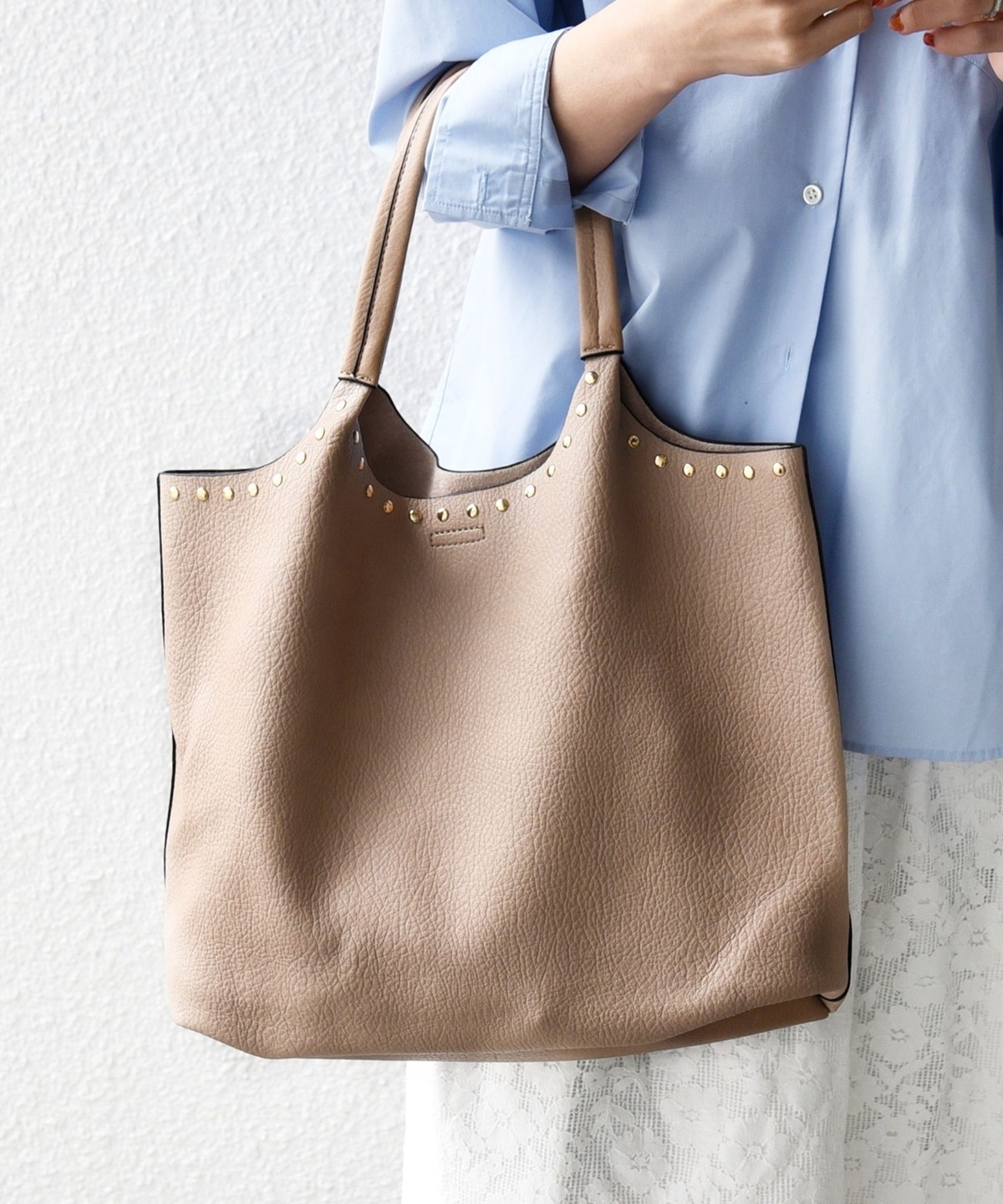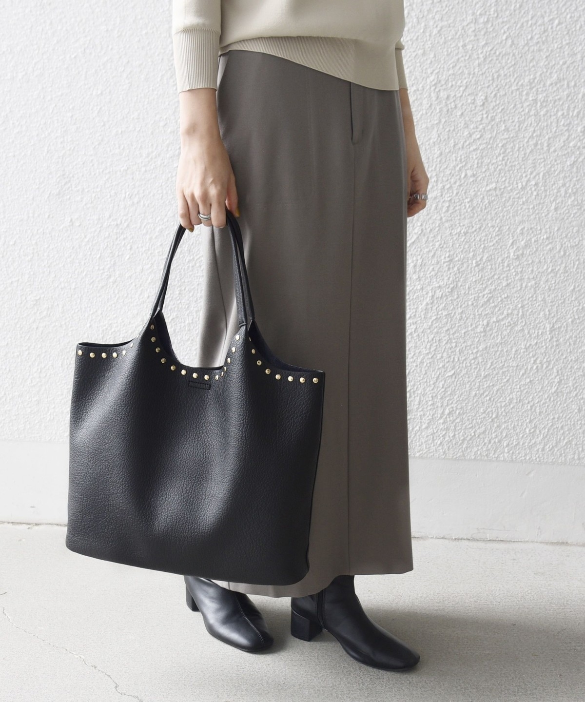 《一部追加予約》【WEB限定】SHIPS any: ポーチ付き スタッズ A4 トート バッグ