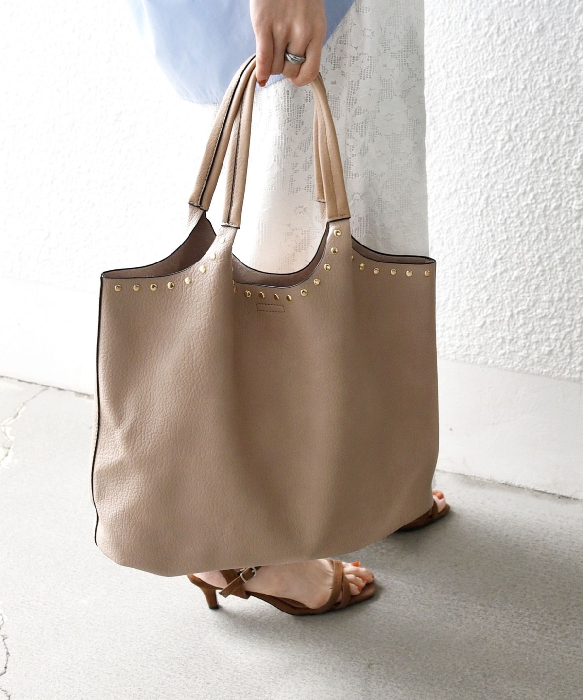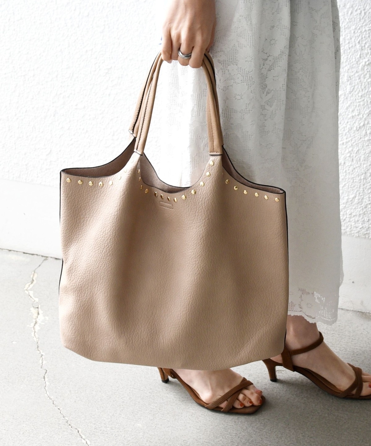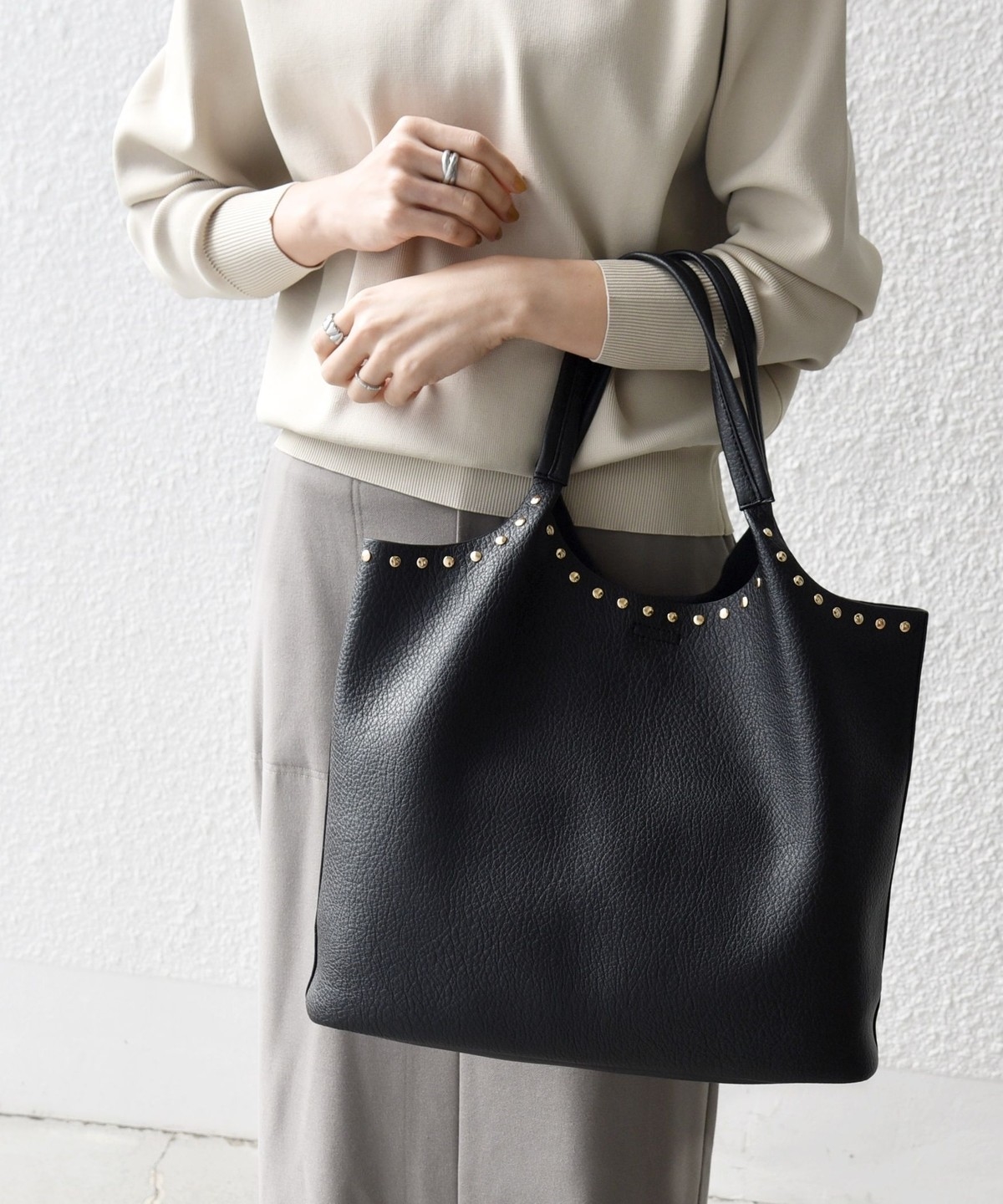 《一部追加予約》【WEB限定】SHIPS any: ポーチ付き スタッズ A4 トート バッグ