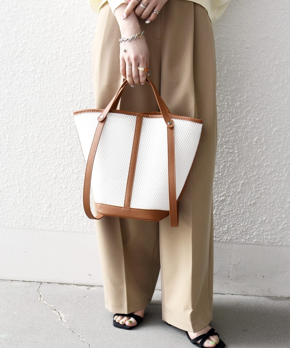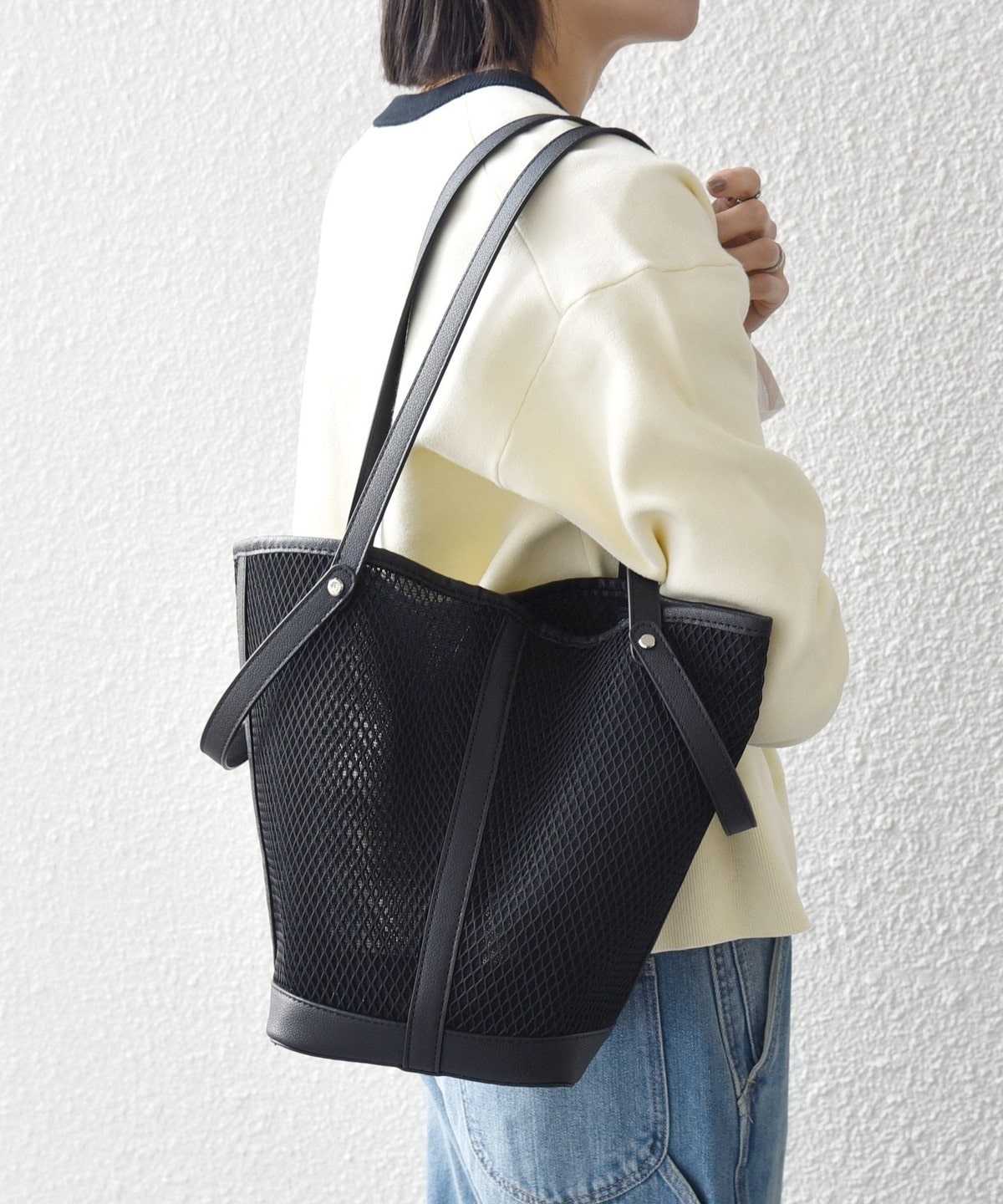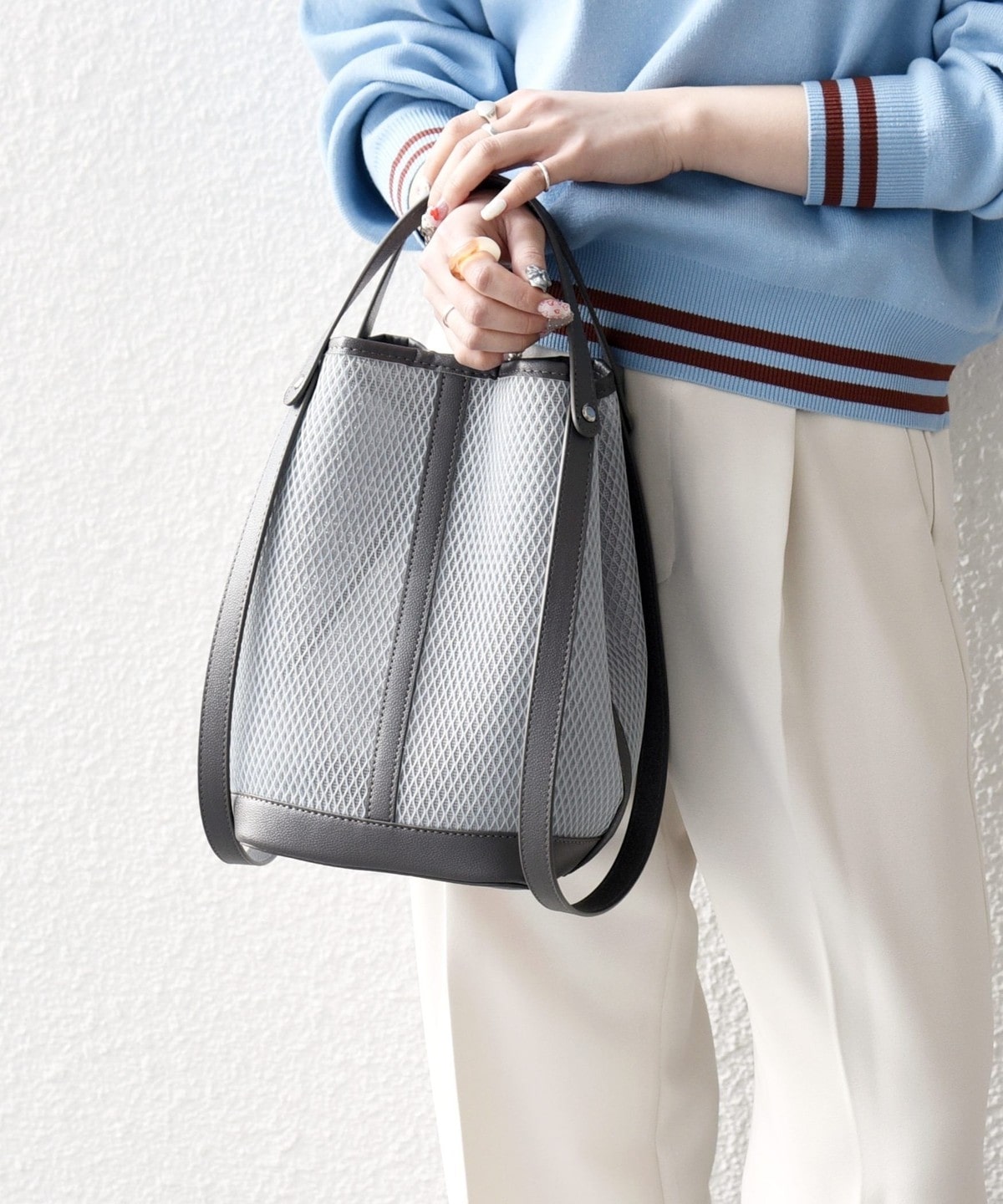 涼しげなシアー素材で仕上げた、軽やかな3WAYトートバッグ。