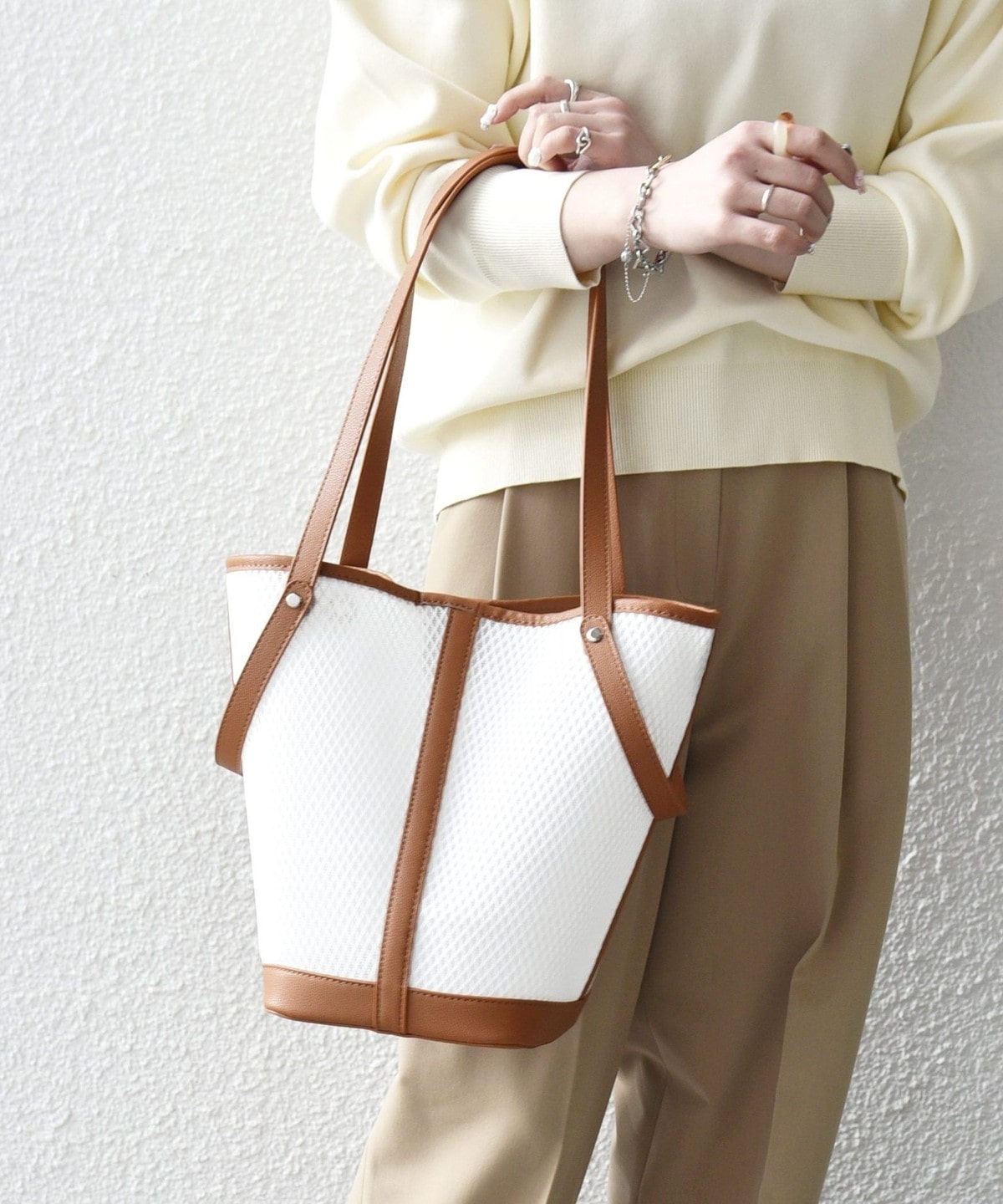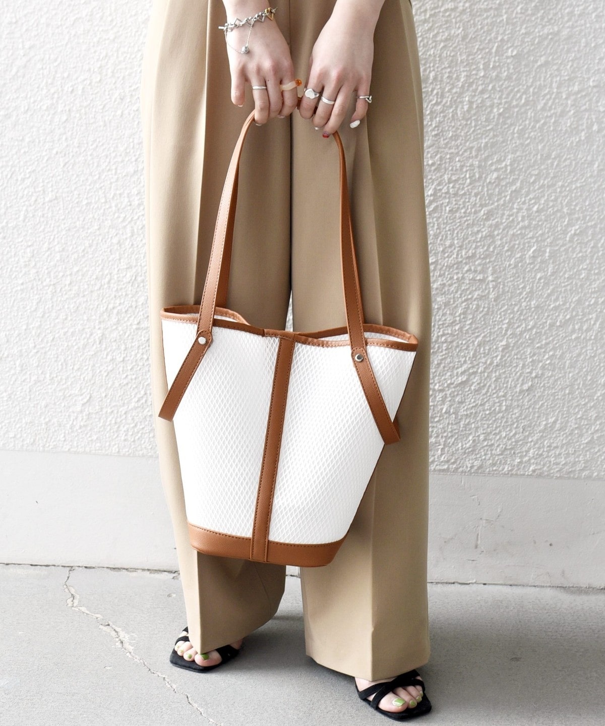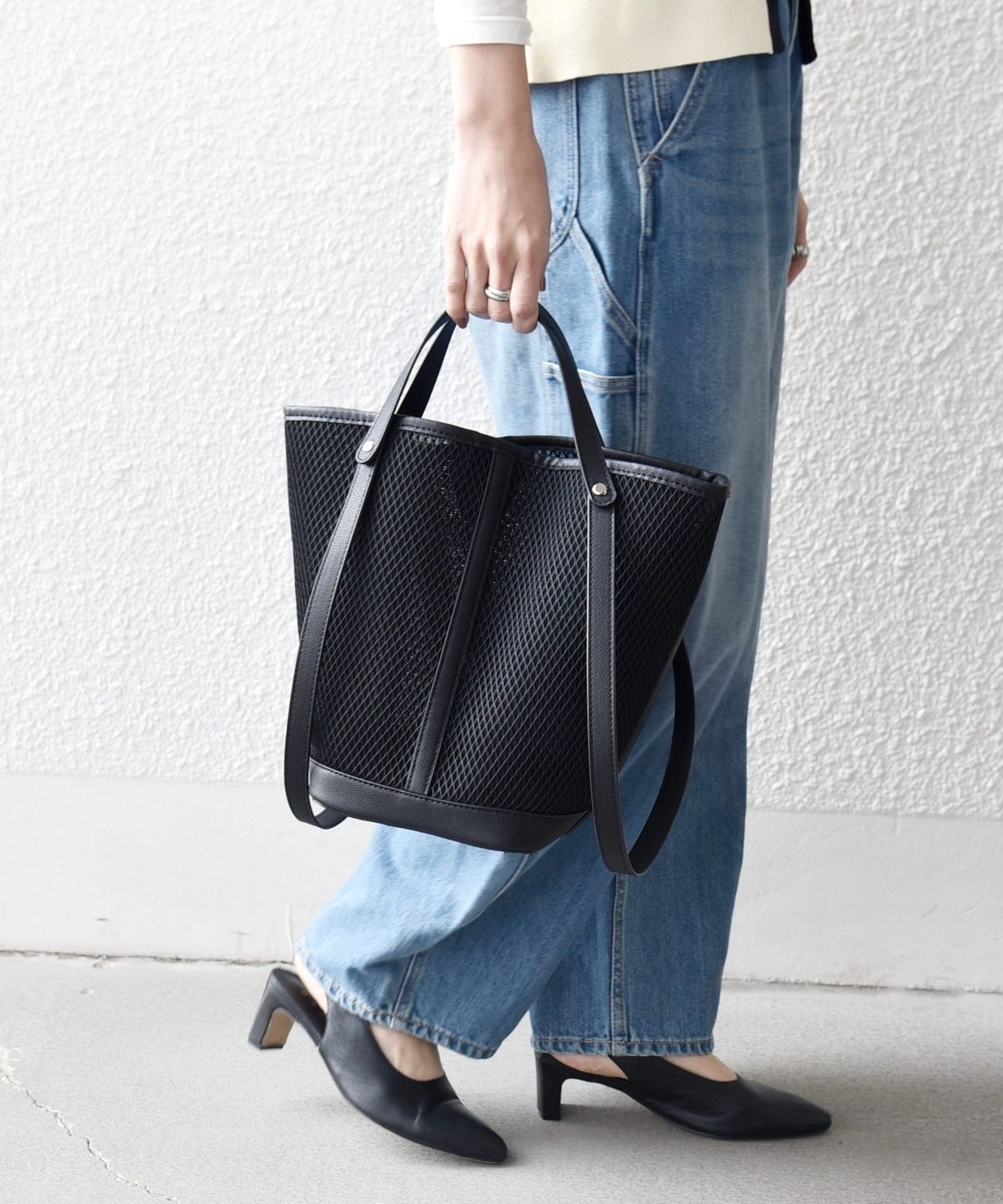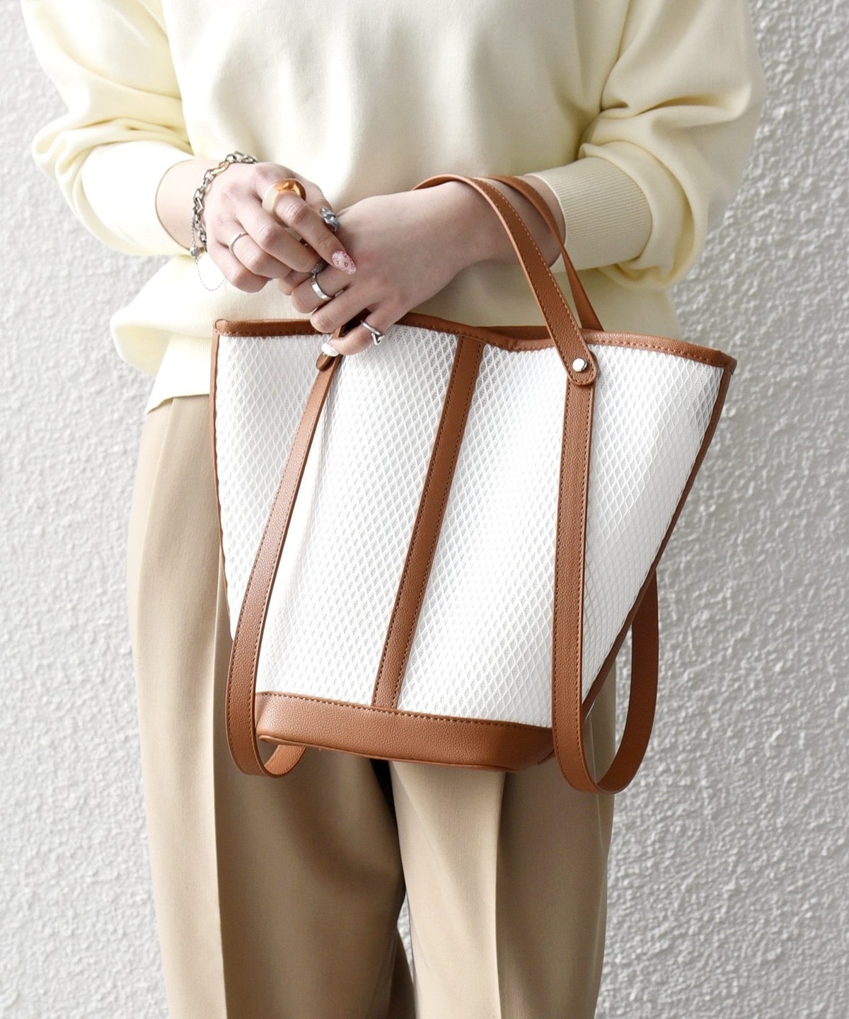 涼しげなシアー素材で仕上げた、軽やかな3WAYトートバッグ。