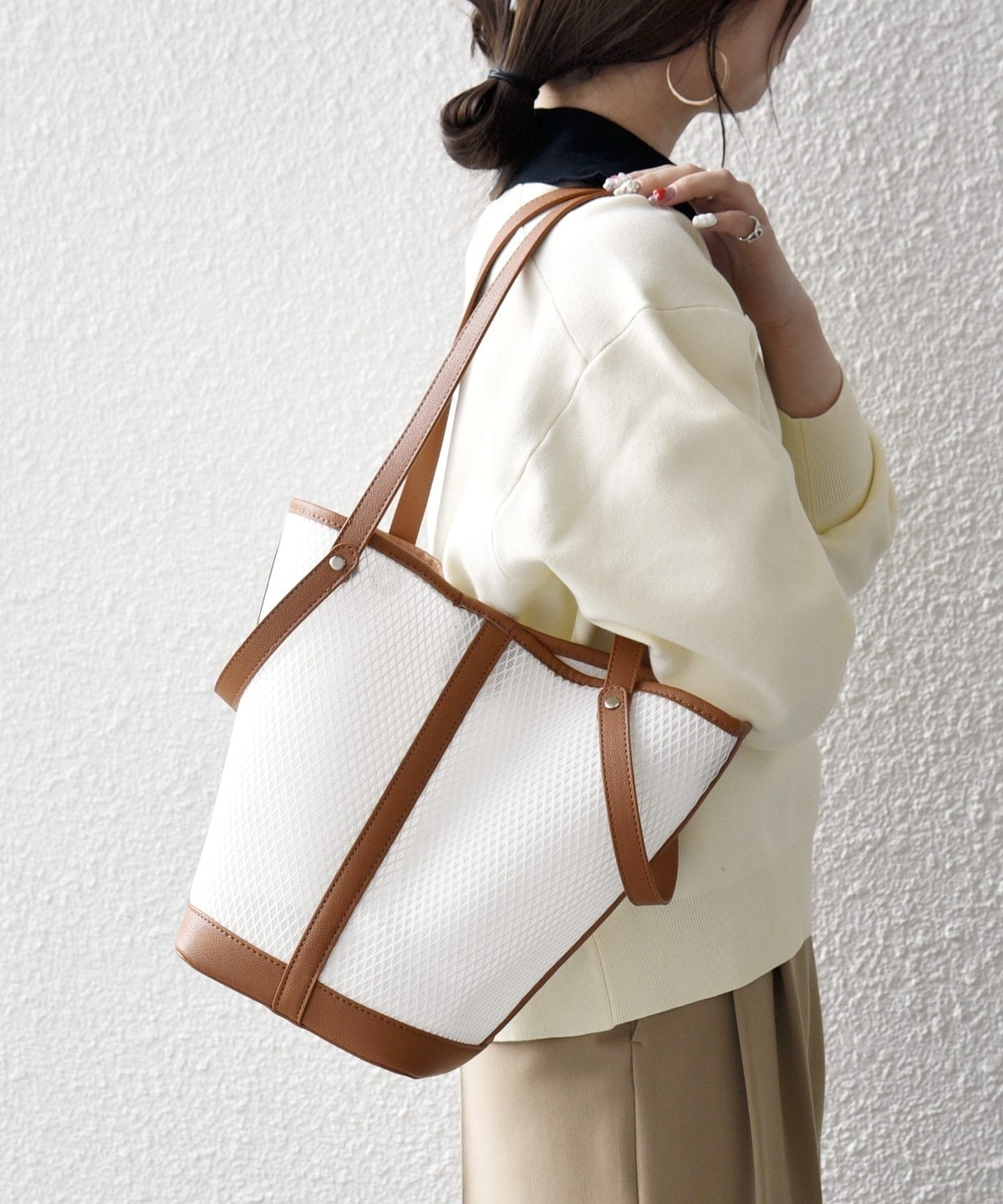 2種類の長さのハンドル付きで、肩掛けやハンドバッグとしても使えるのが嬉しいポイント。