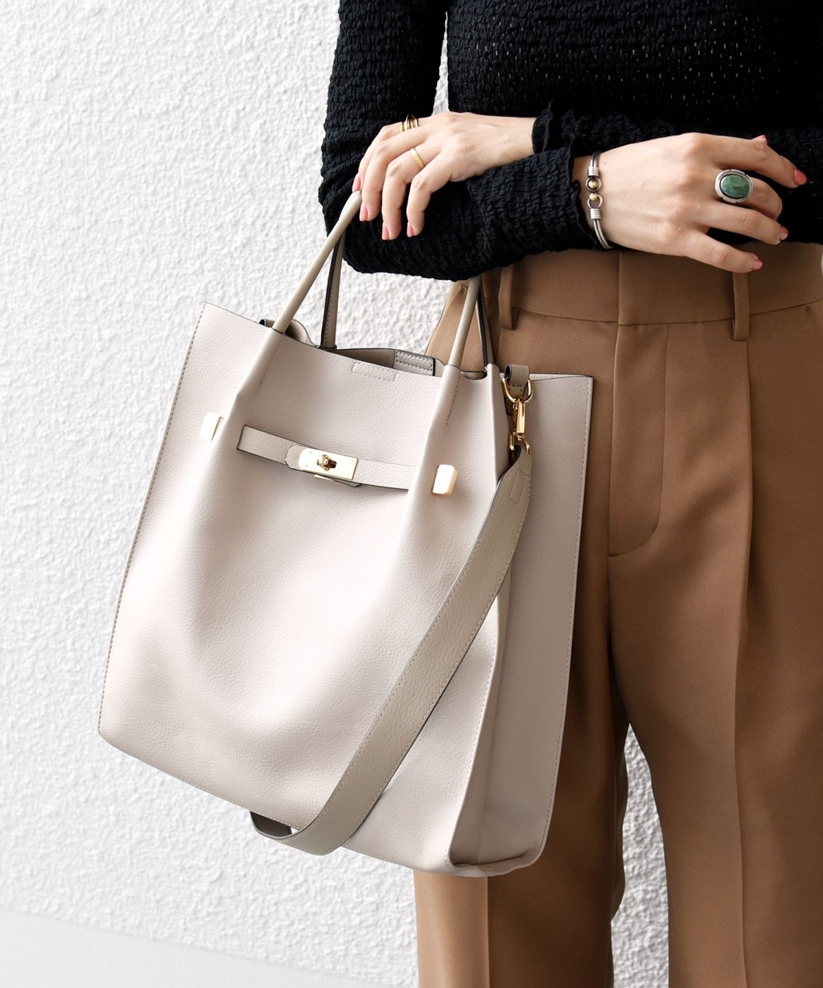 4. 《一部追加予約》SHIPS any: A4 メタル フィッティング トート バッグ ベージュ