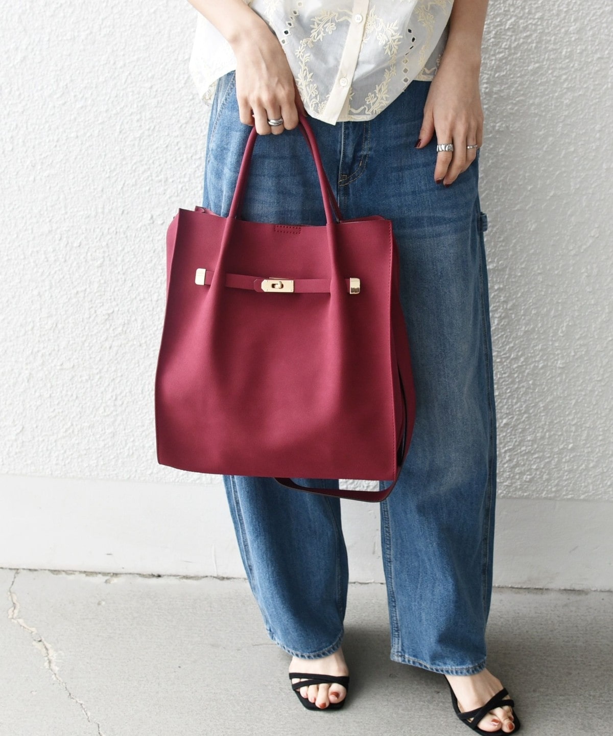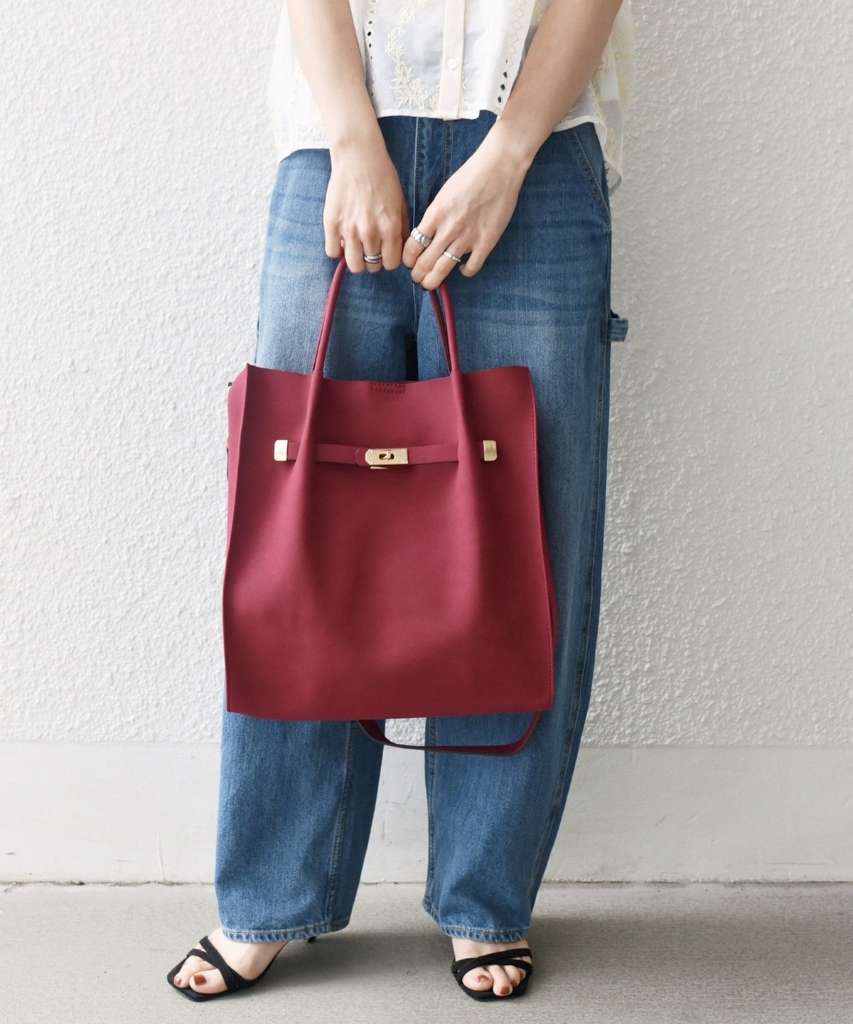 5. 《一部追加予約》SHIPS any: A4 メタル フィッティング トート バッグ ワイン