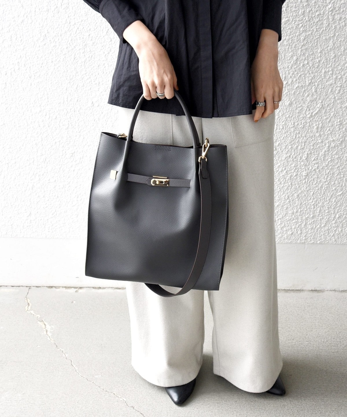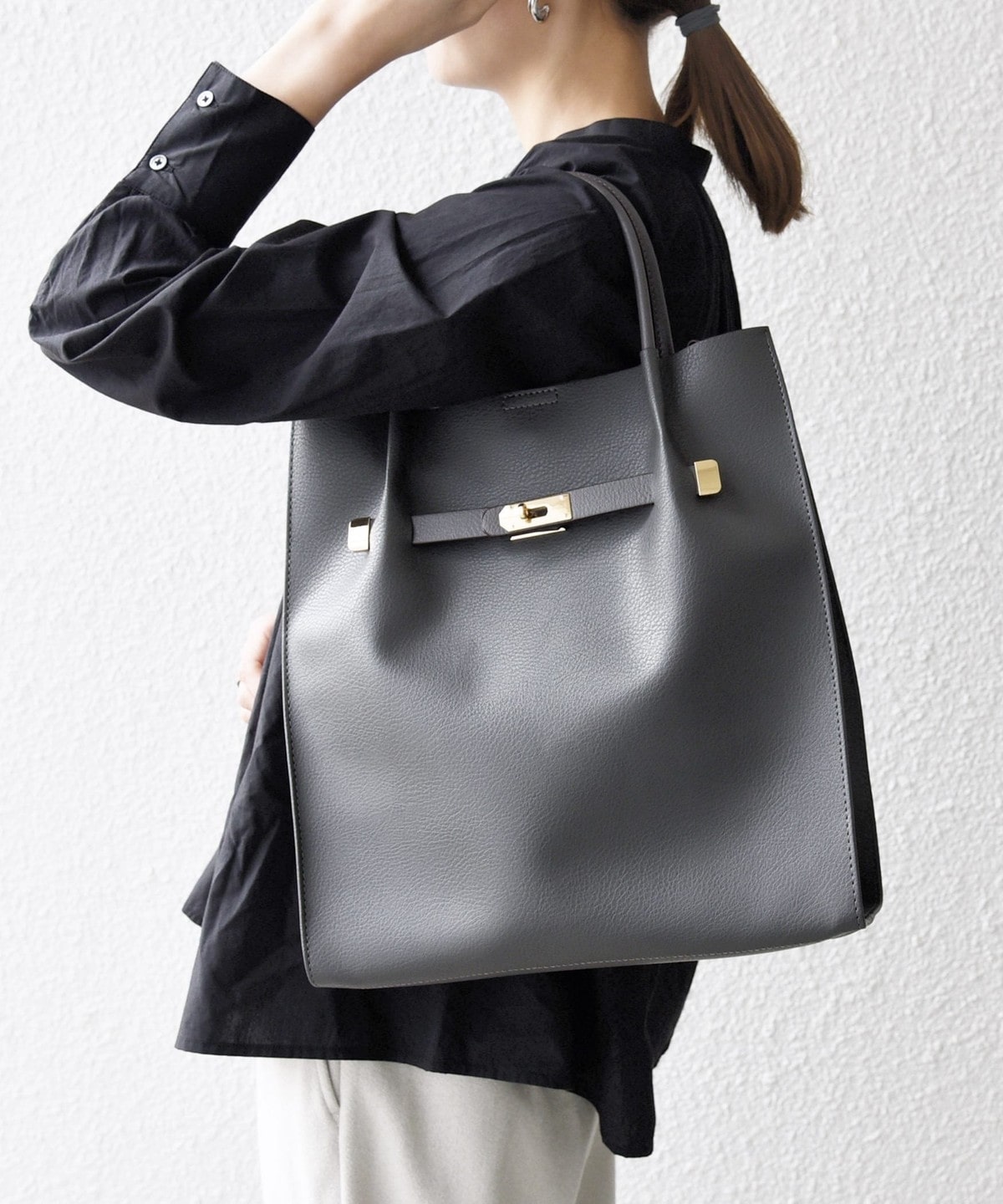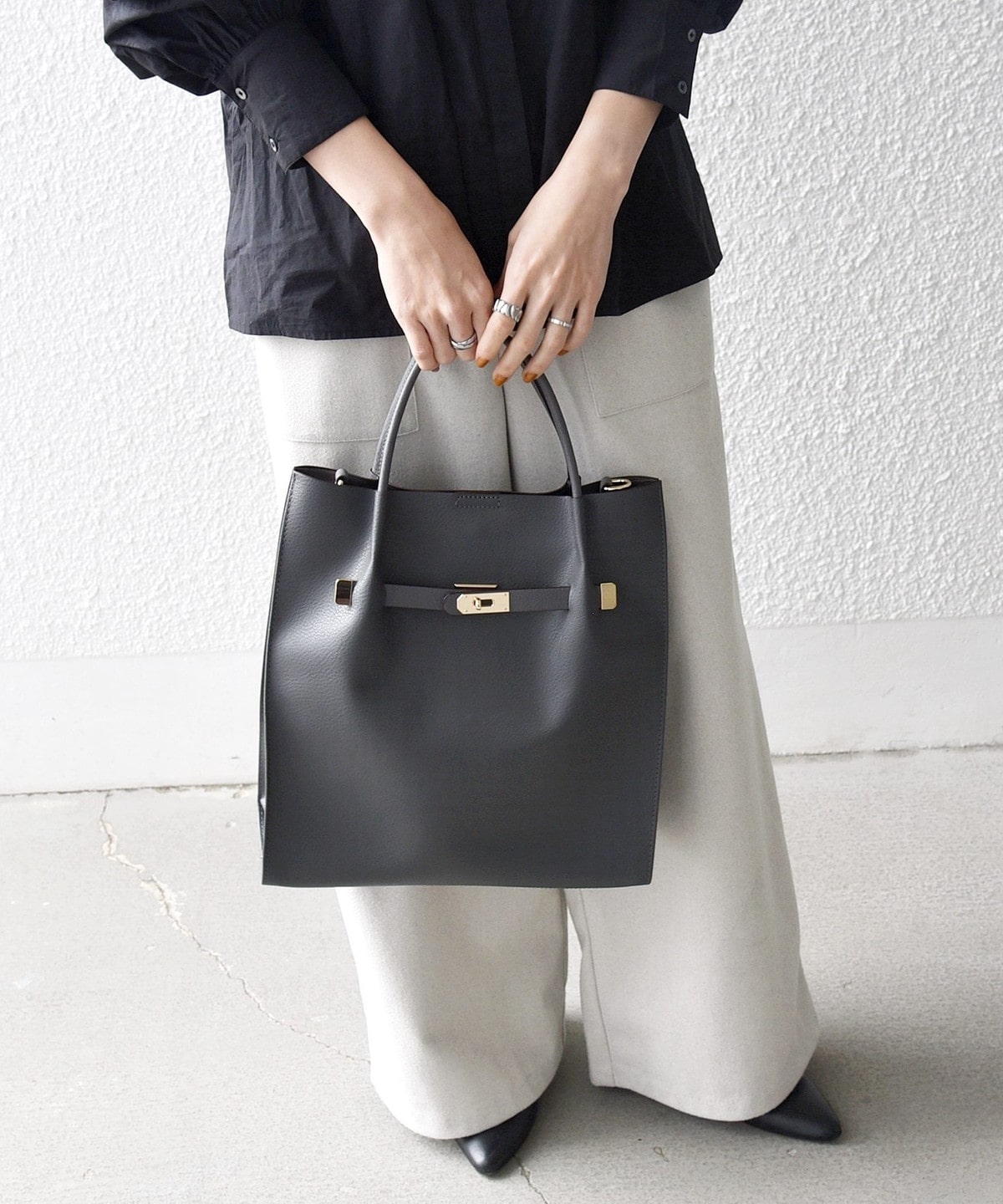 1. 《一部追加予約》SHIPS any: A4 メタル フィッティング トート バッグ チャコールグレー