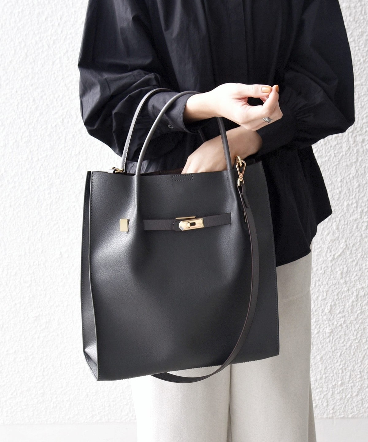 3. 《一部追加予約》SHIPS any: A4 メタル フィッティング トート バッグ ブラック
