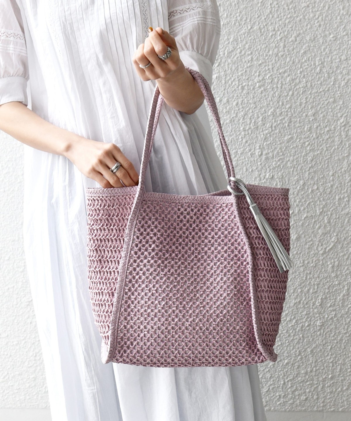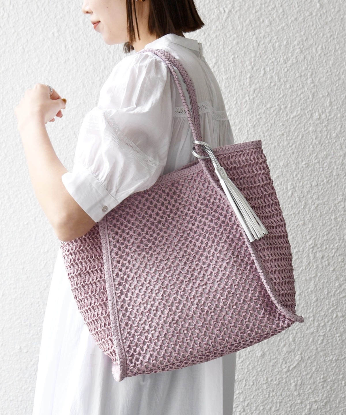 《一部追加予約》SHIPS any: タッセル 透かし編み ペーパー トート バッグ