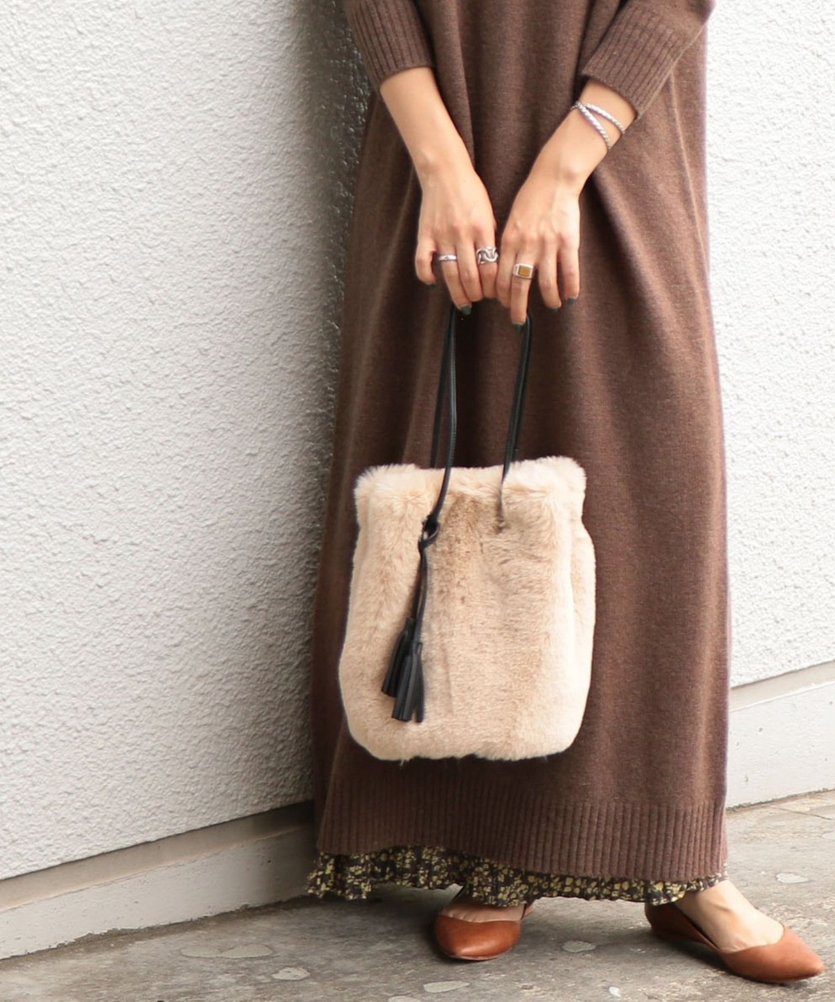 4. SHIPS any: ファー巾着バッグ