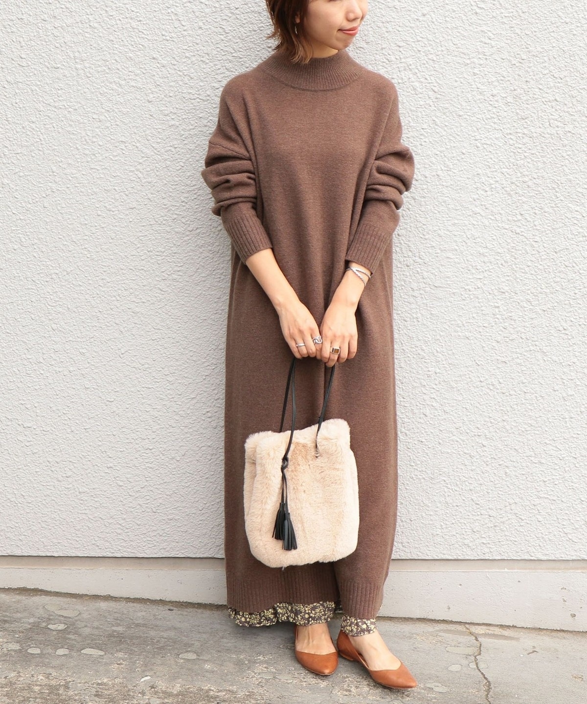 3. SHIPS any: ファー巾着バッグ ブラウン
