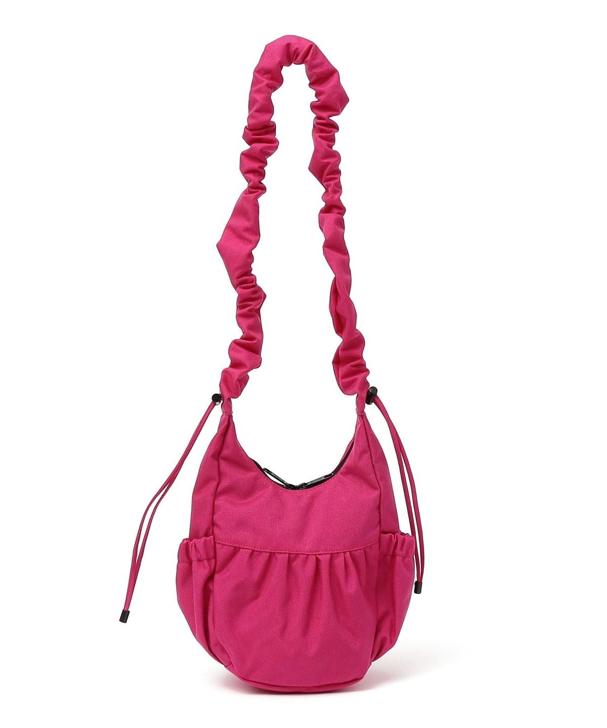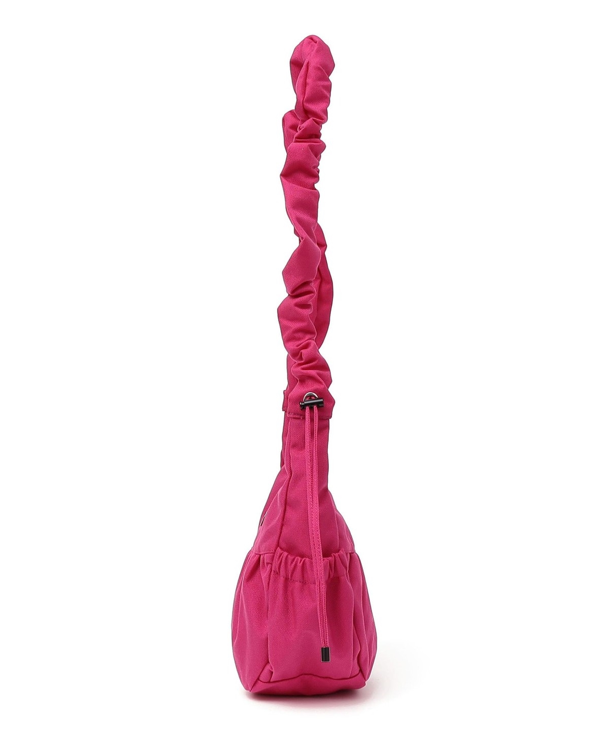 ギャザーの効いたショルダーストラップは、サイドのドロストを調節すれば長さの変更が可能。