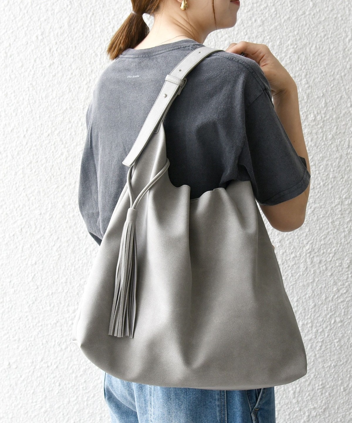 1. 《追加予約》SHIPS any: A4 タッセル ワンショルダー バッグ グレー系その他