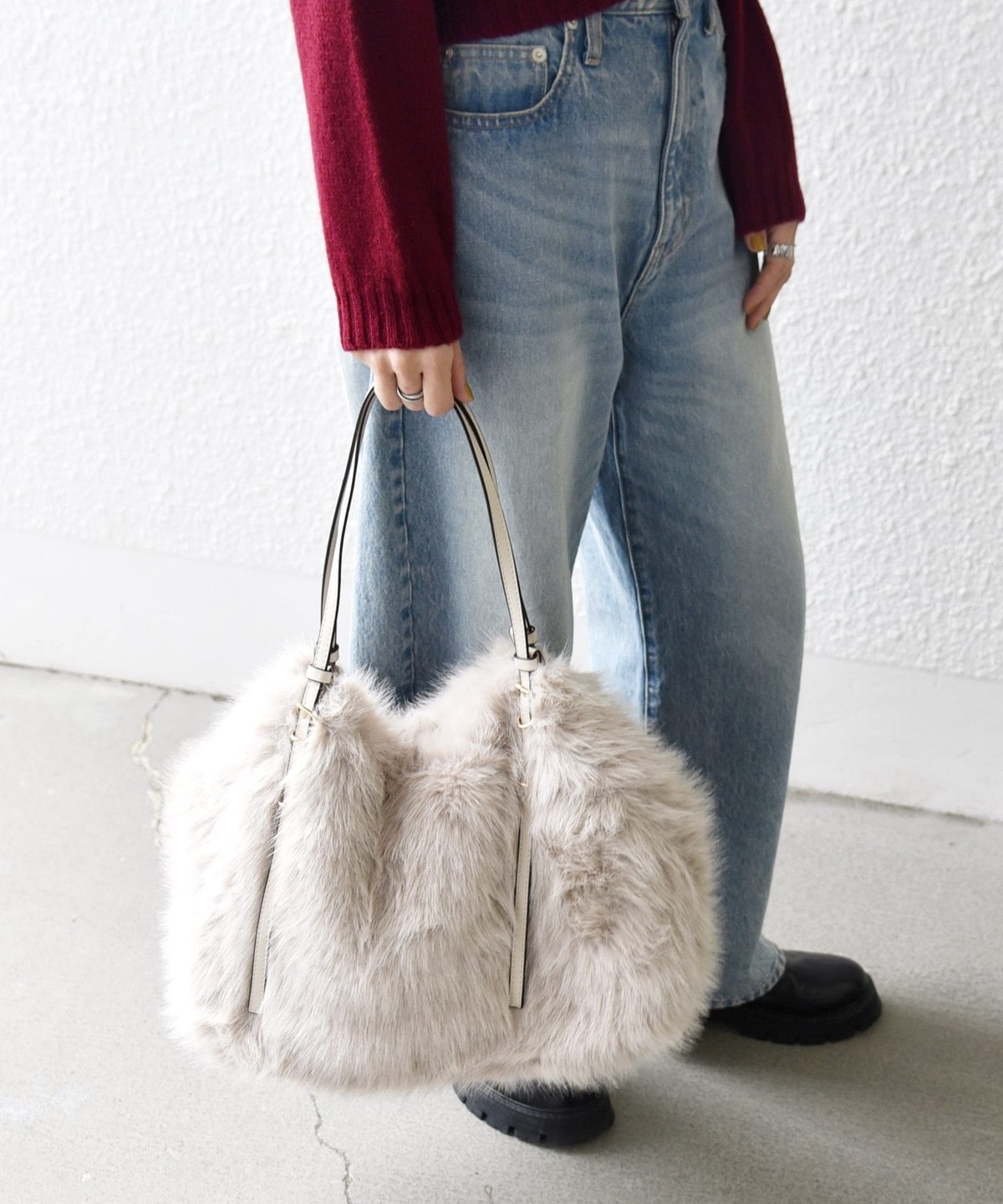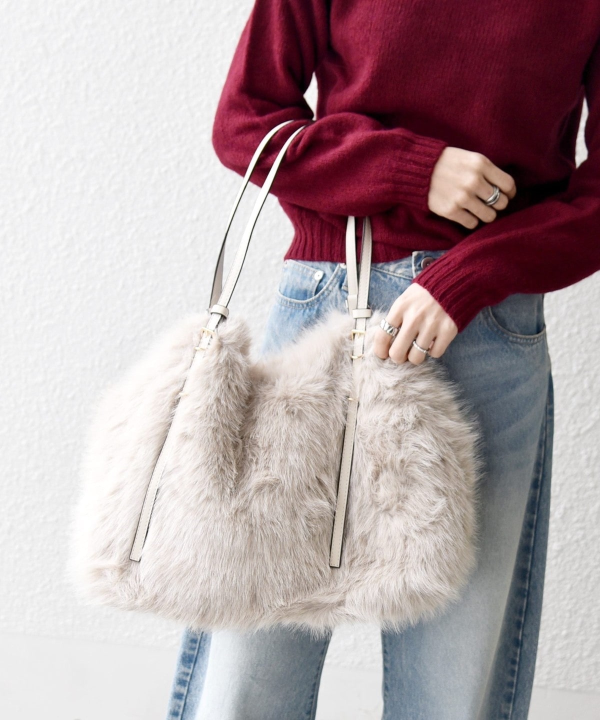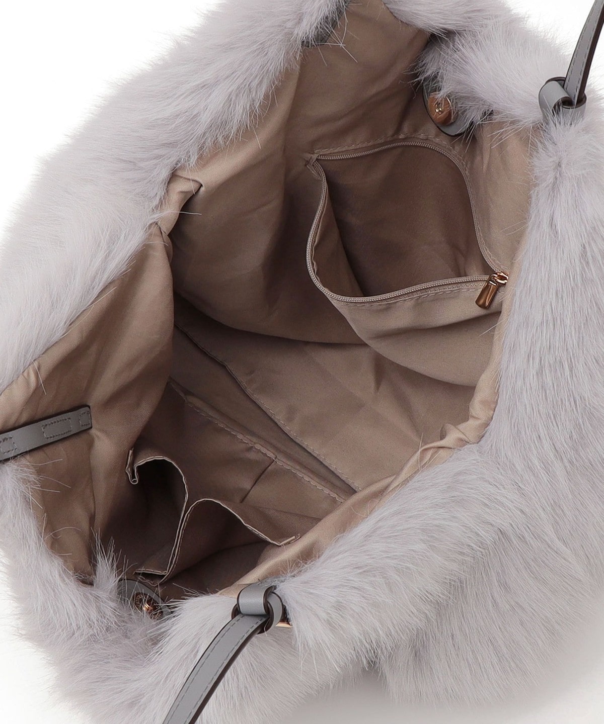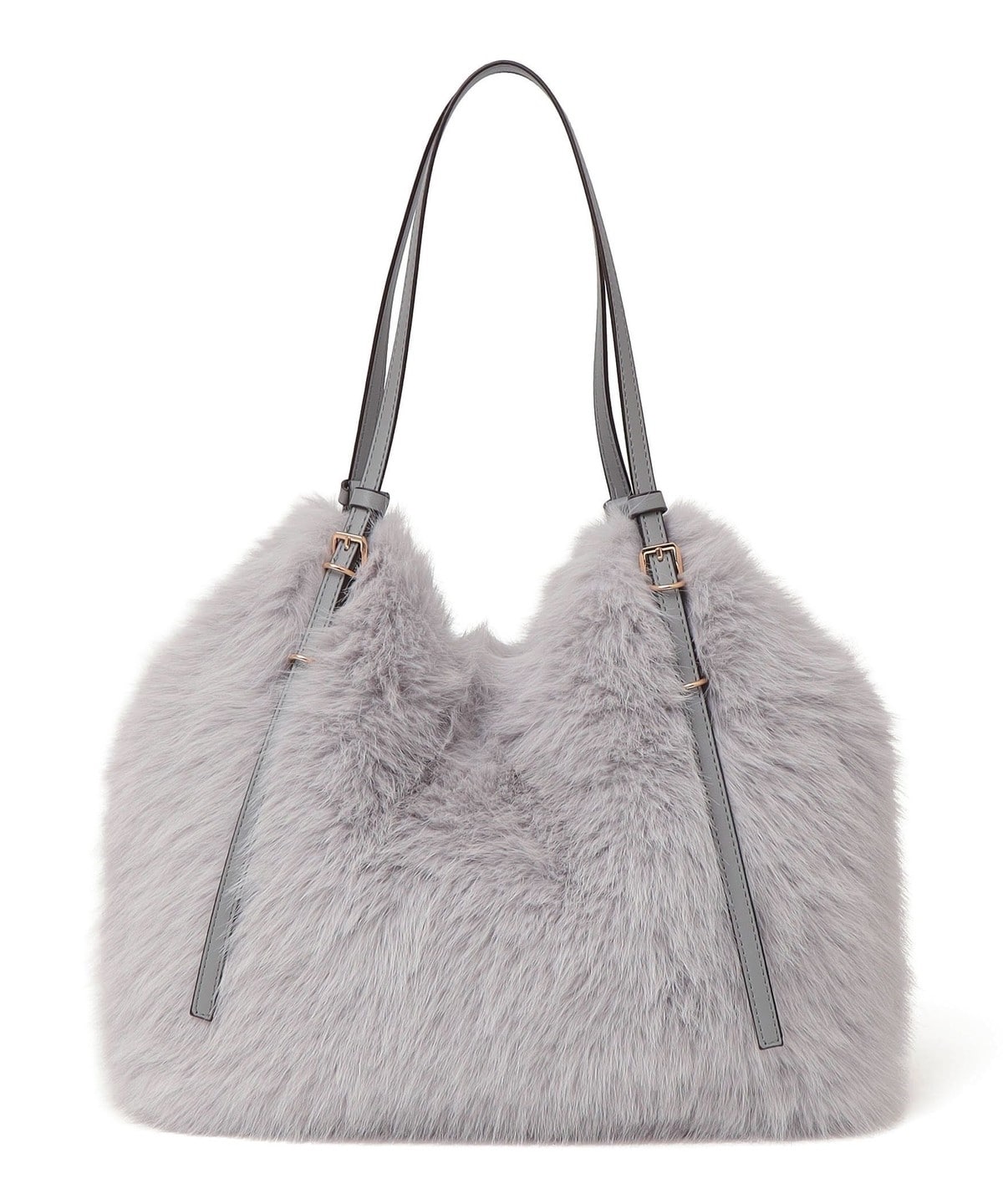 1. SHIPS any: A4 ベルト フェイクファー トート バッグ ライトグレー