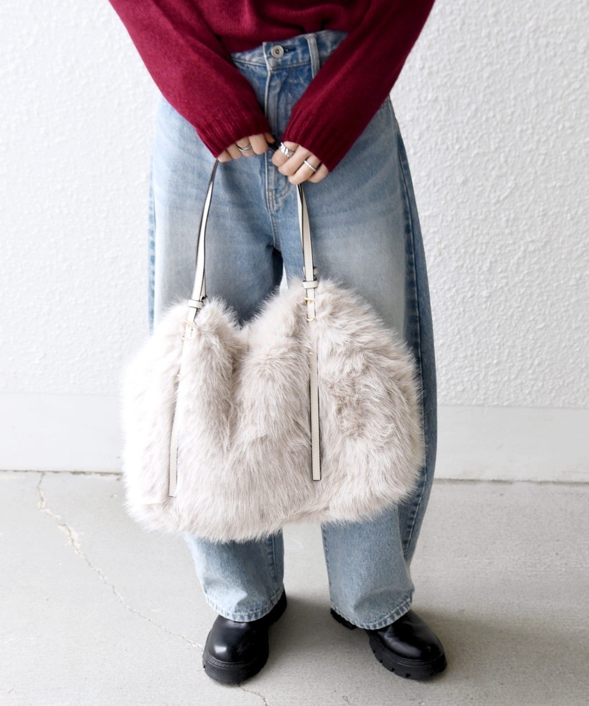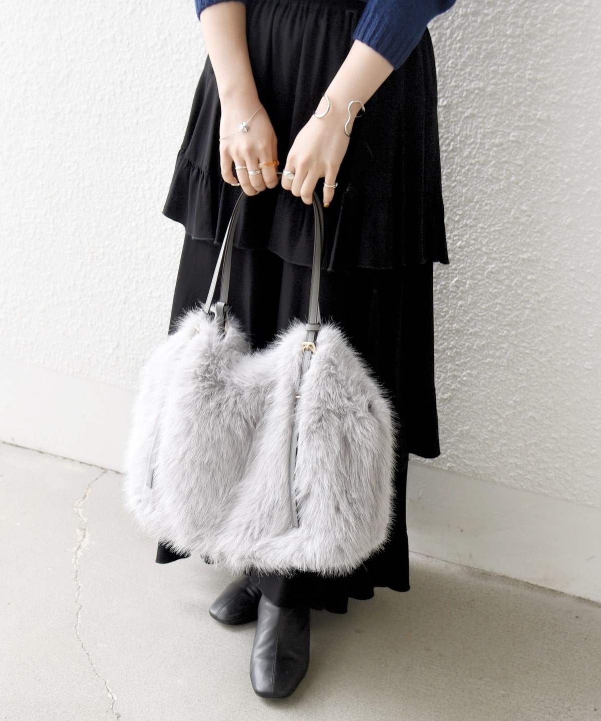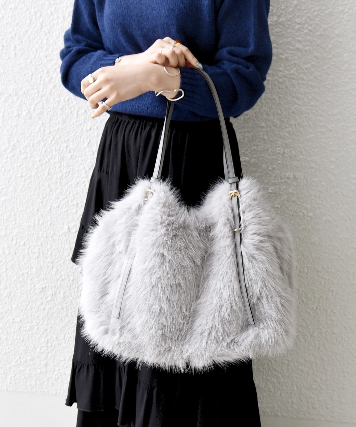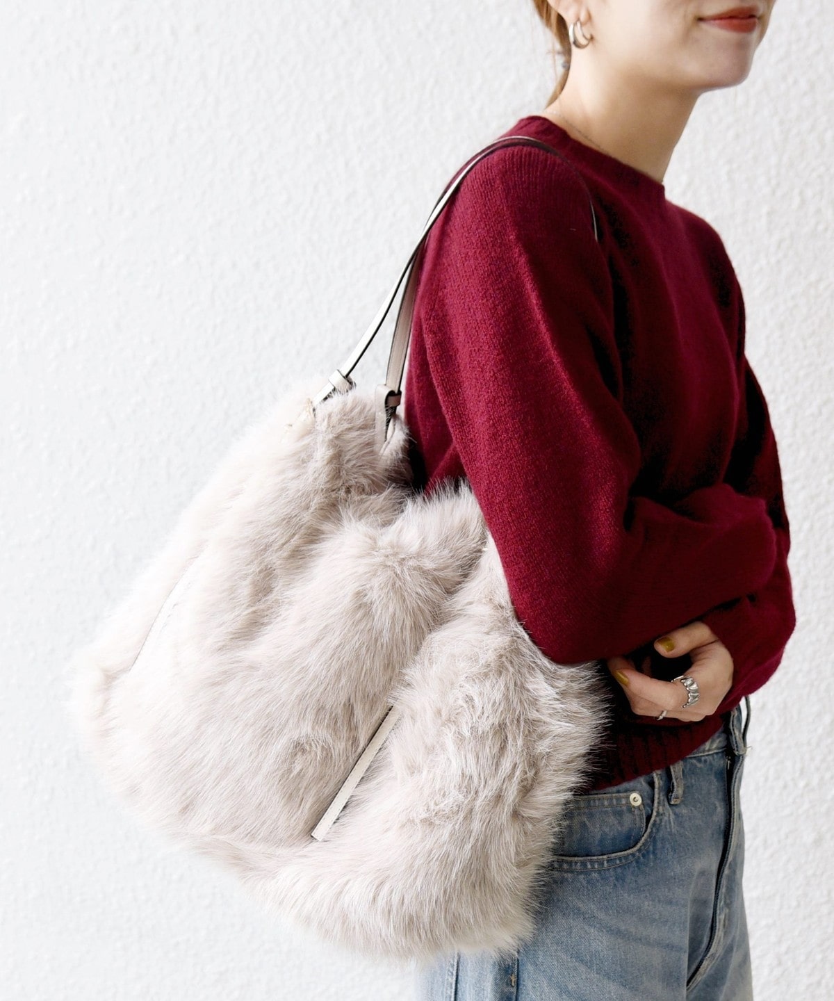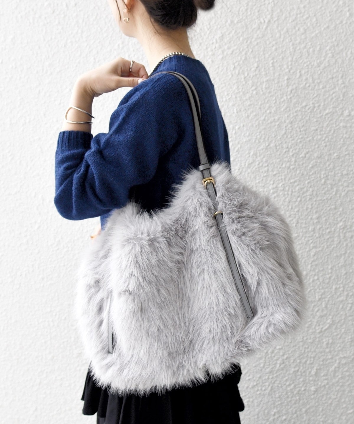 1. SHIPS any: A4 ベルト フェイクファー トート バッグ ライトグレー