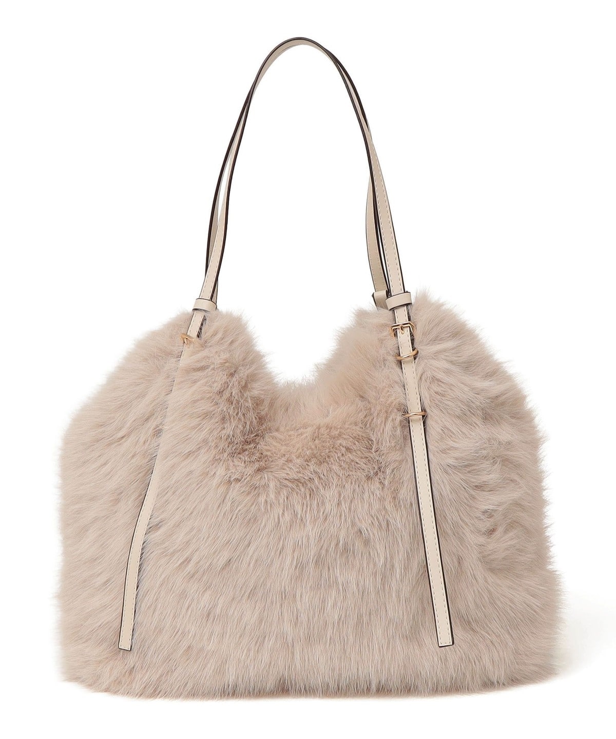 2. SHIPS any: A4 ベルト フェイクファー トート バッグ ベージュ
