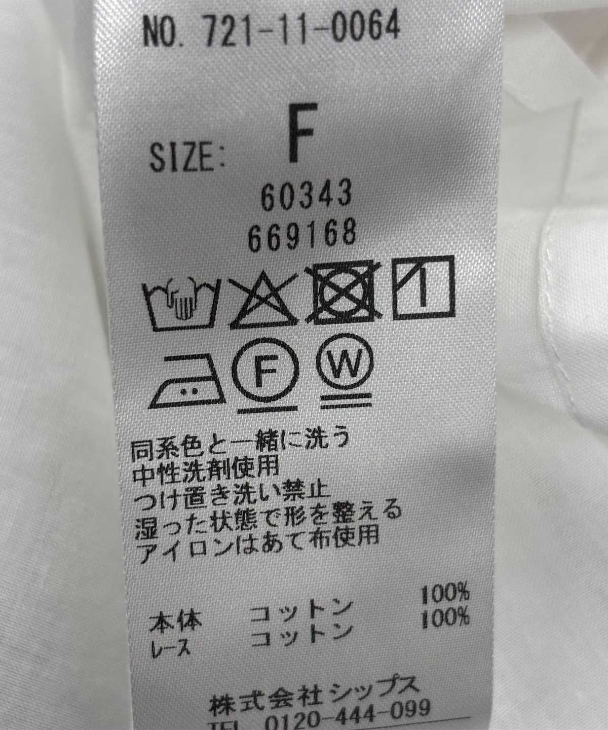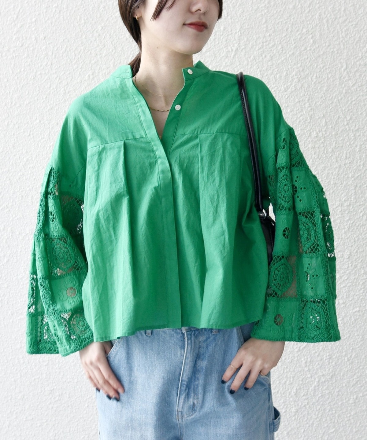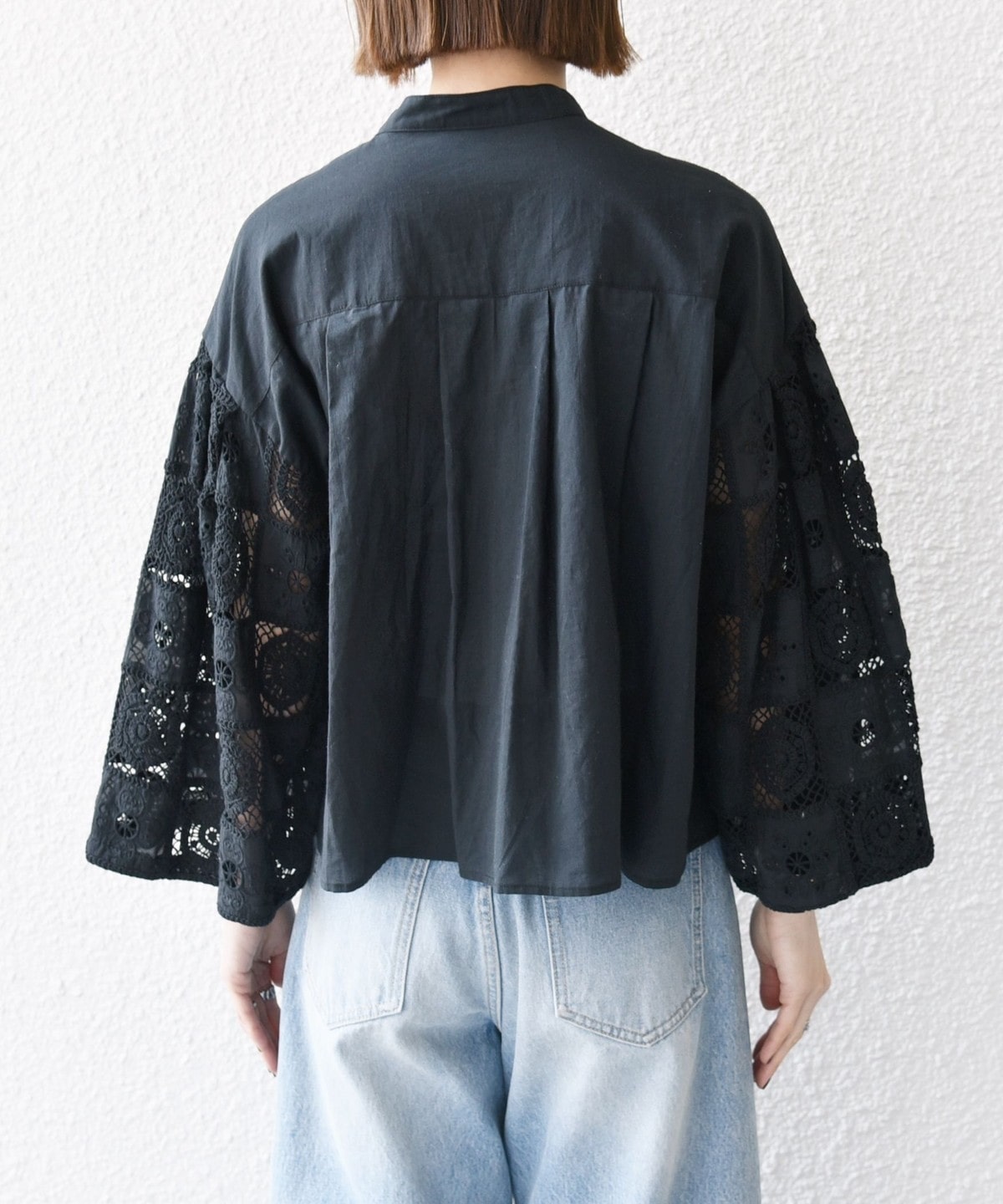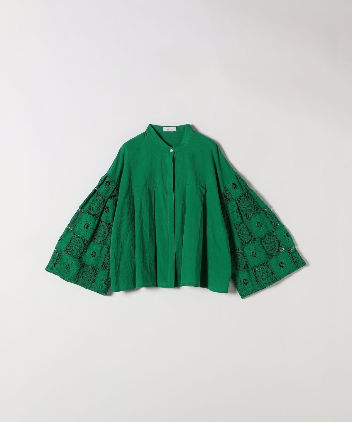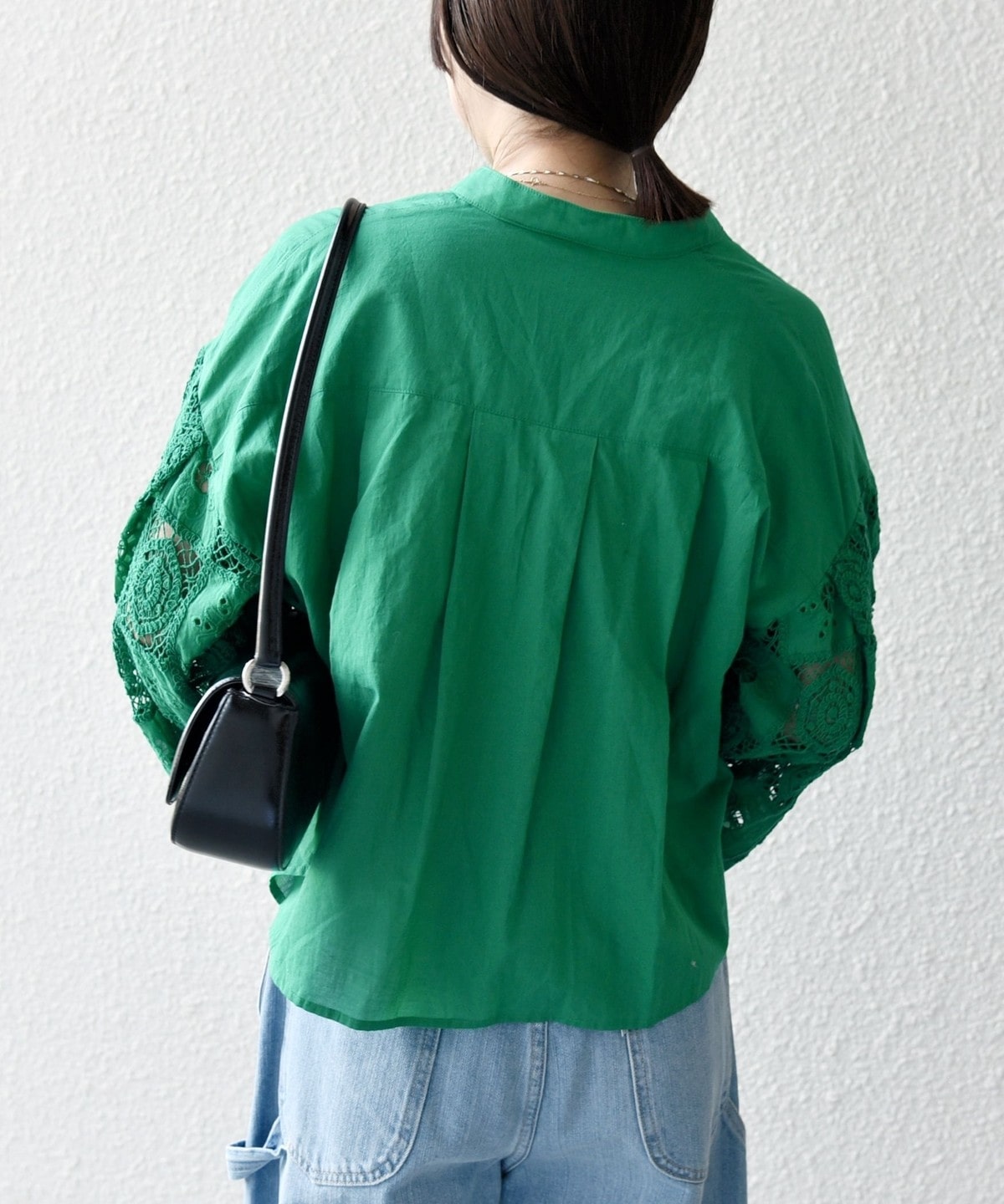 SHIPS any:〈手洗い可能〉パッチワーク レース スリーブ バンドカラー シャツ