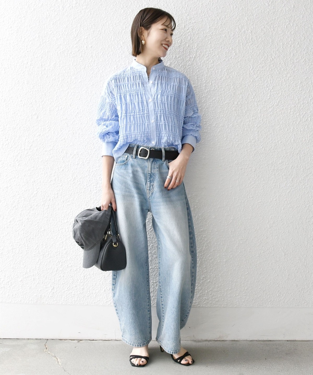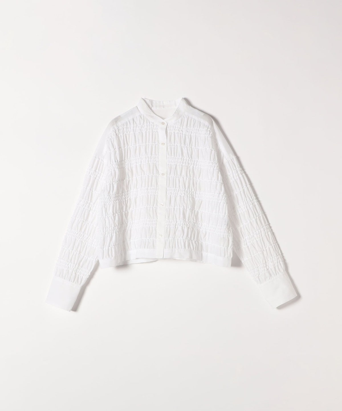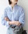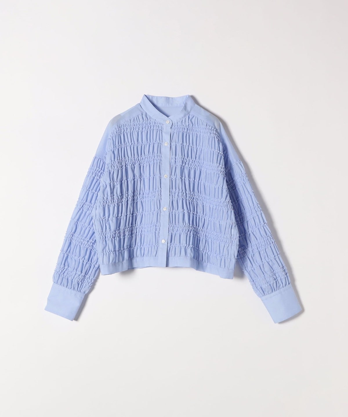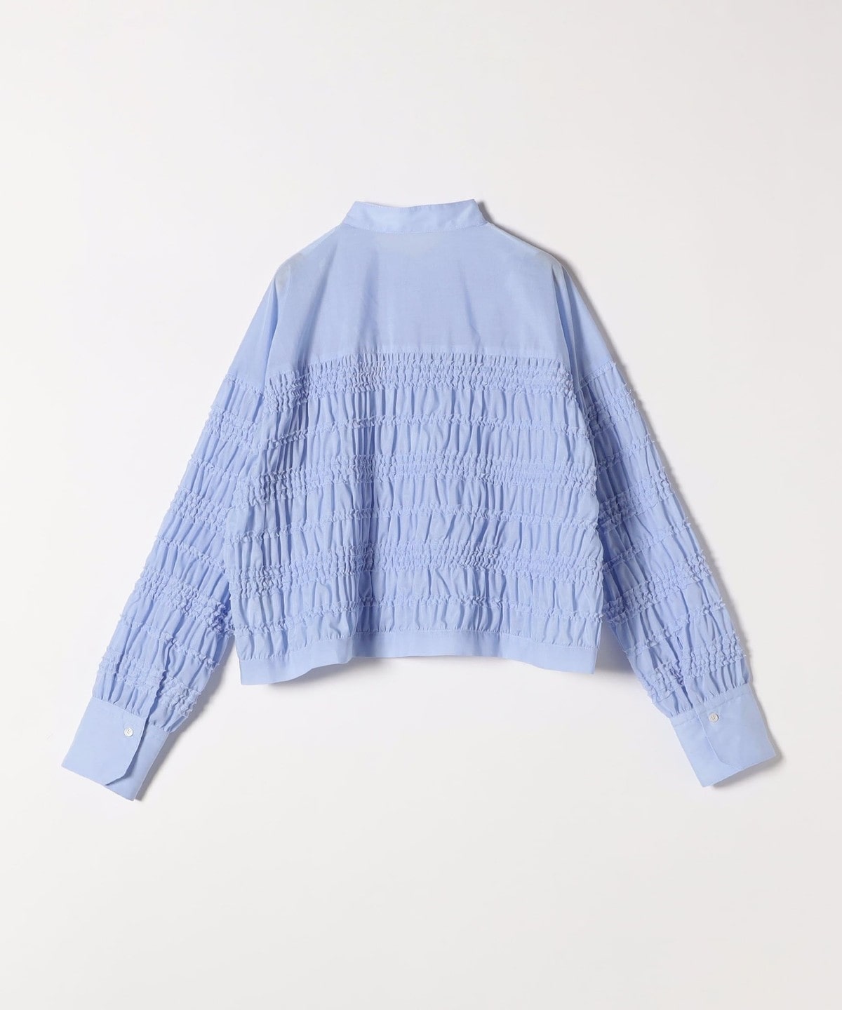 SHIPS any:〈手洗い可能〉シアー フリル バンドカラー パフ シャツ ブラウス