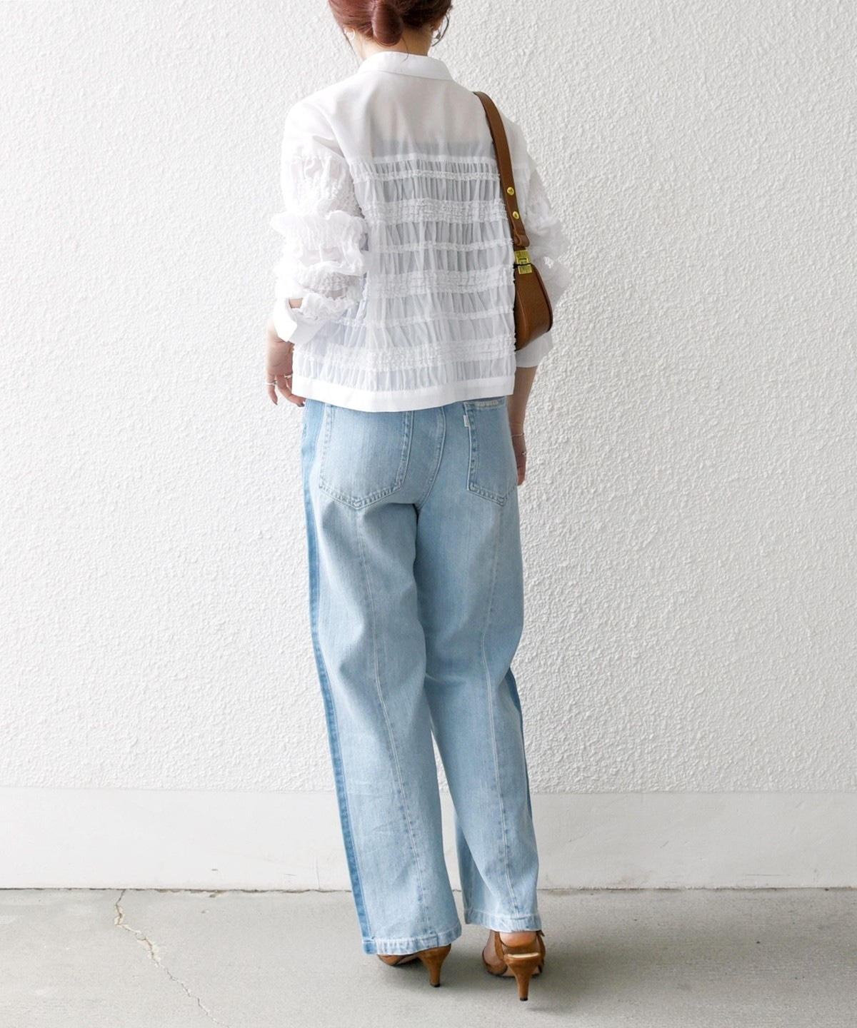SHIPS any:〈洗濯機可能〉シアー シャーリング プチフリル ペプラム ブラウス