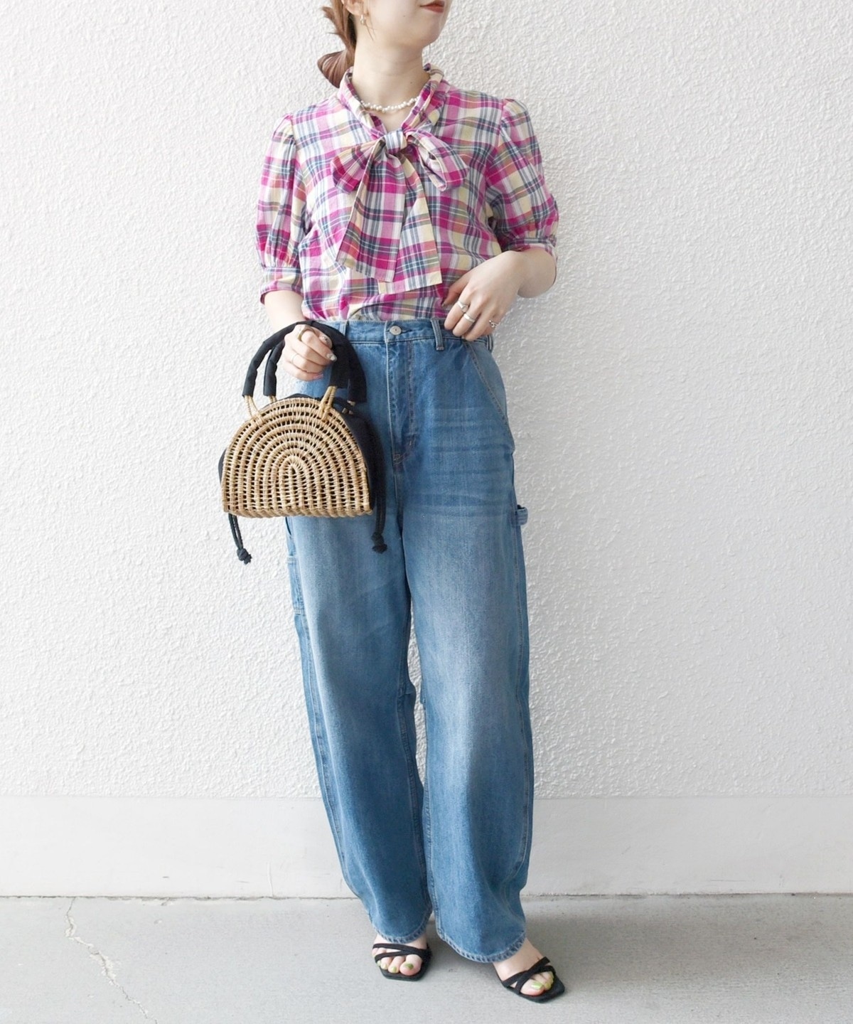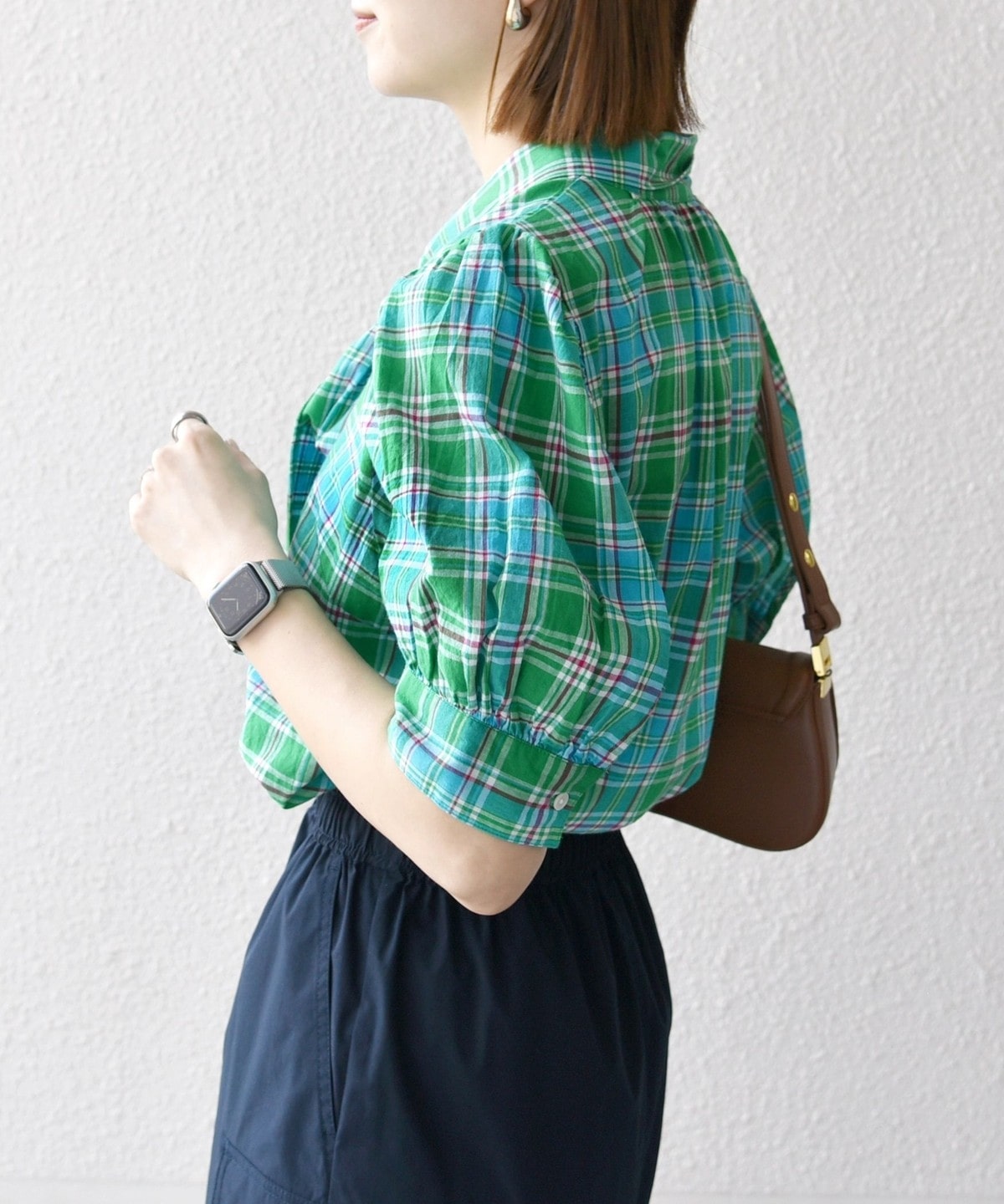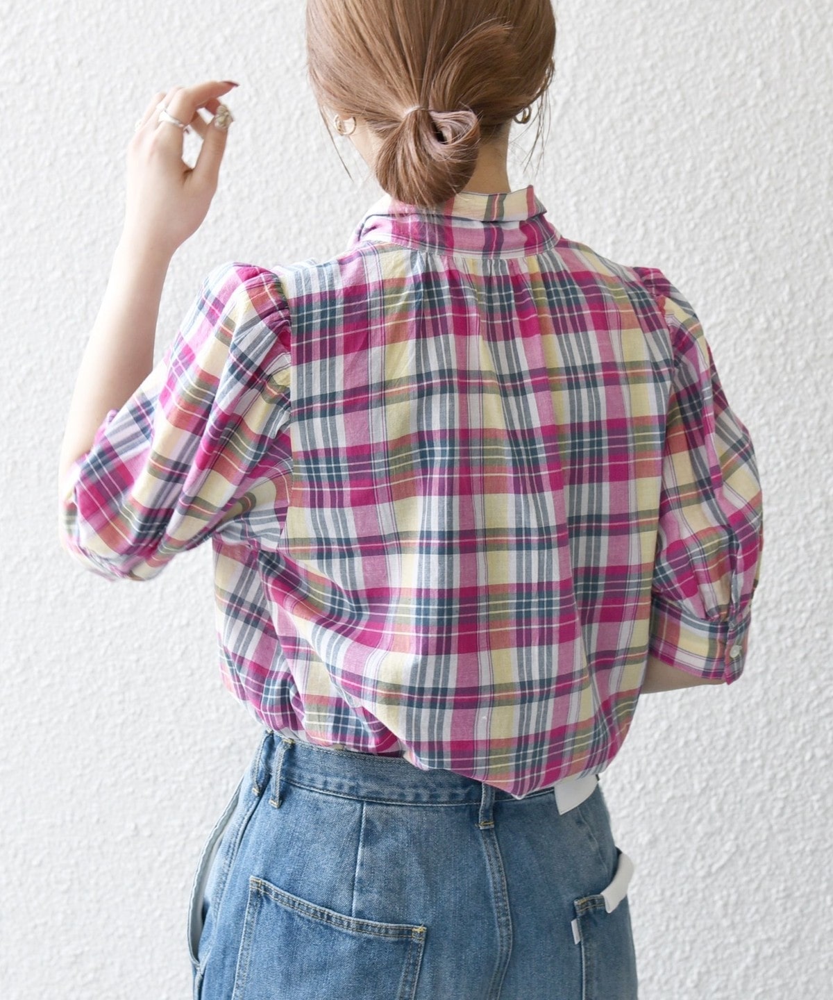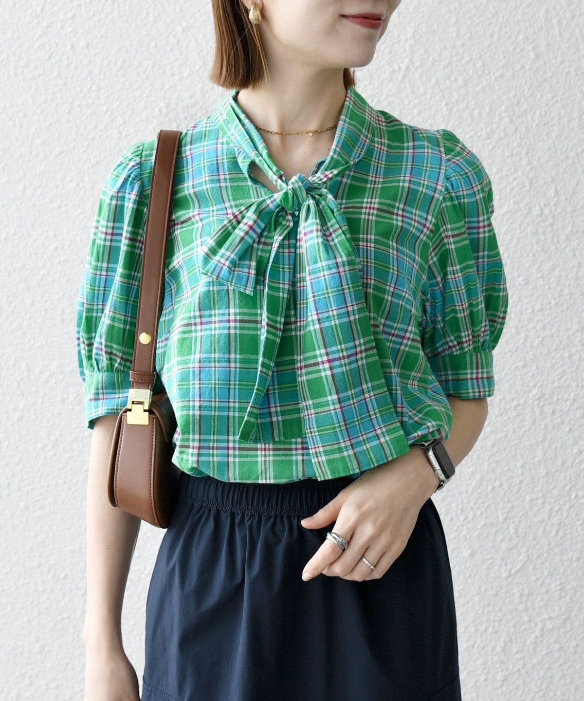 アメリカントラッドの定番、マドラスチェックを使用したクラシックなボウブラウス。