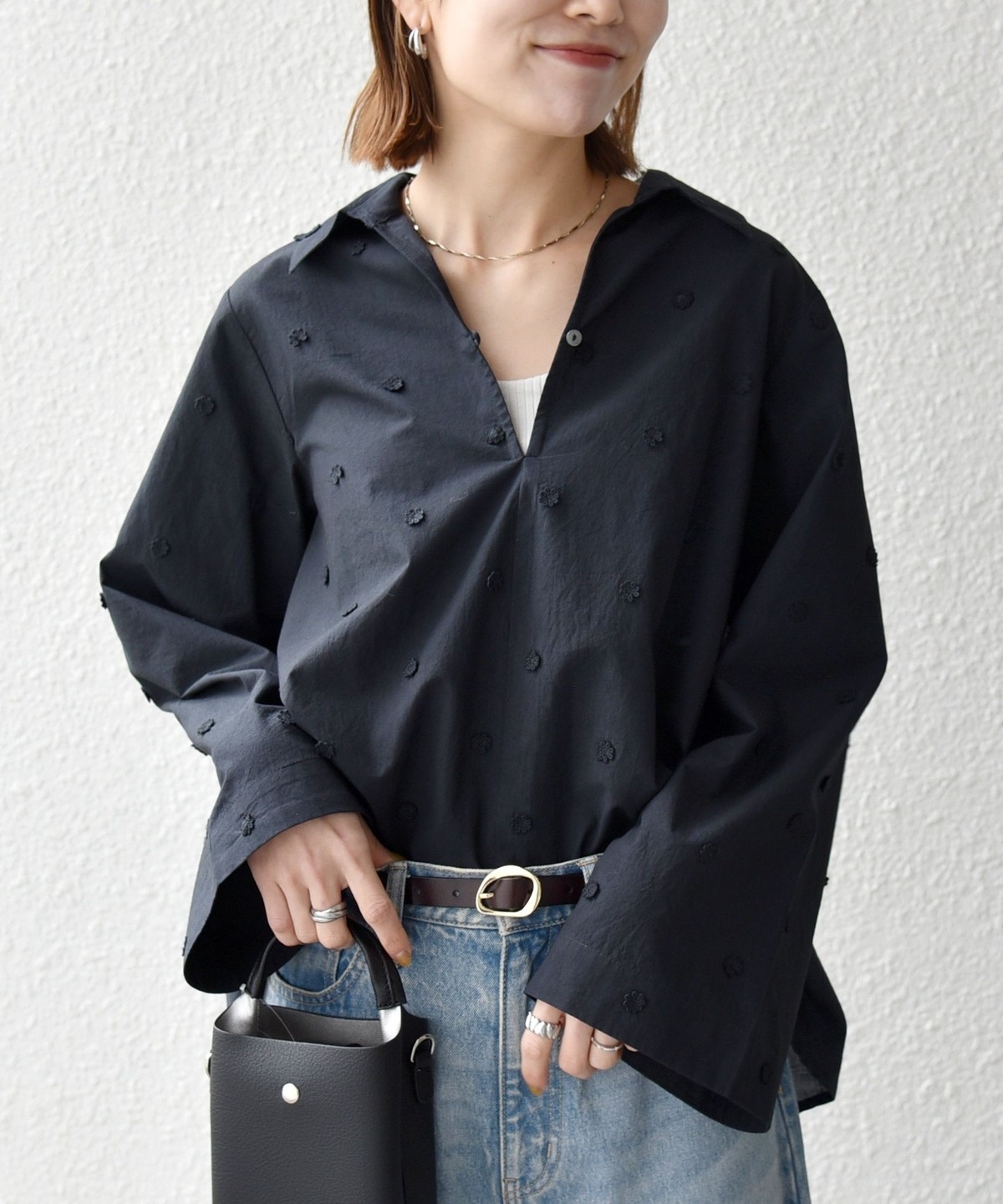 《予約》SHIPS any:〈洗濯機可能〉フラワー モチーフ Aライン スキッパー シャツ ブラウス