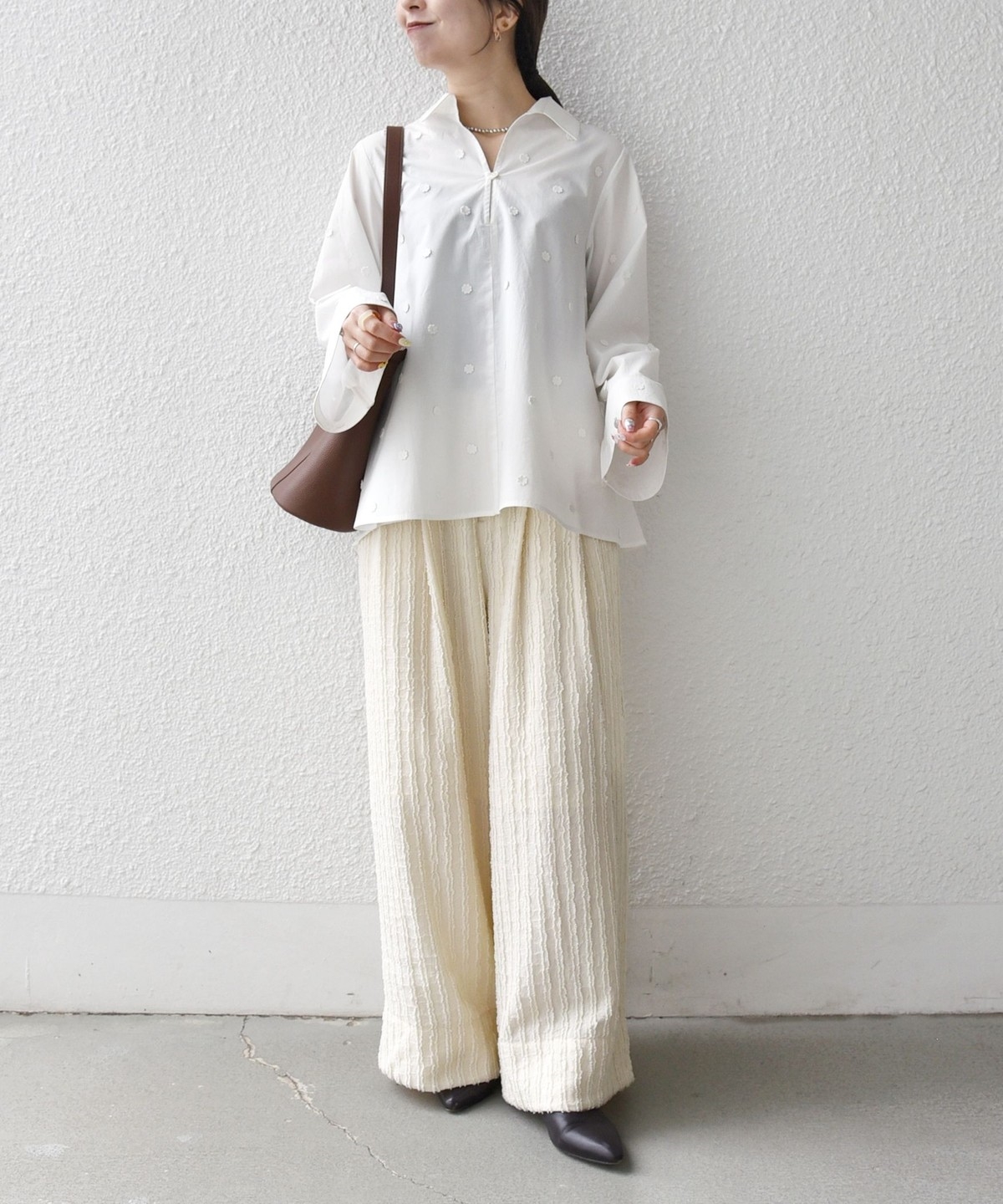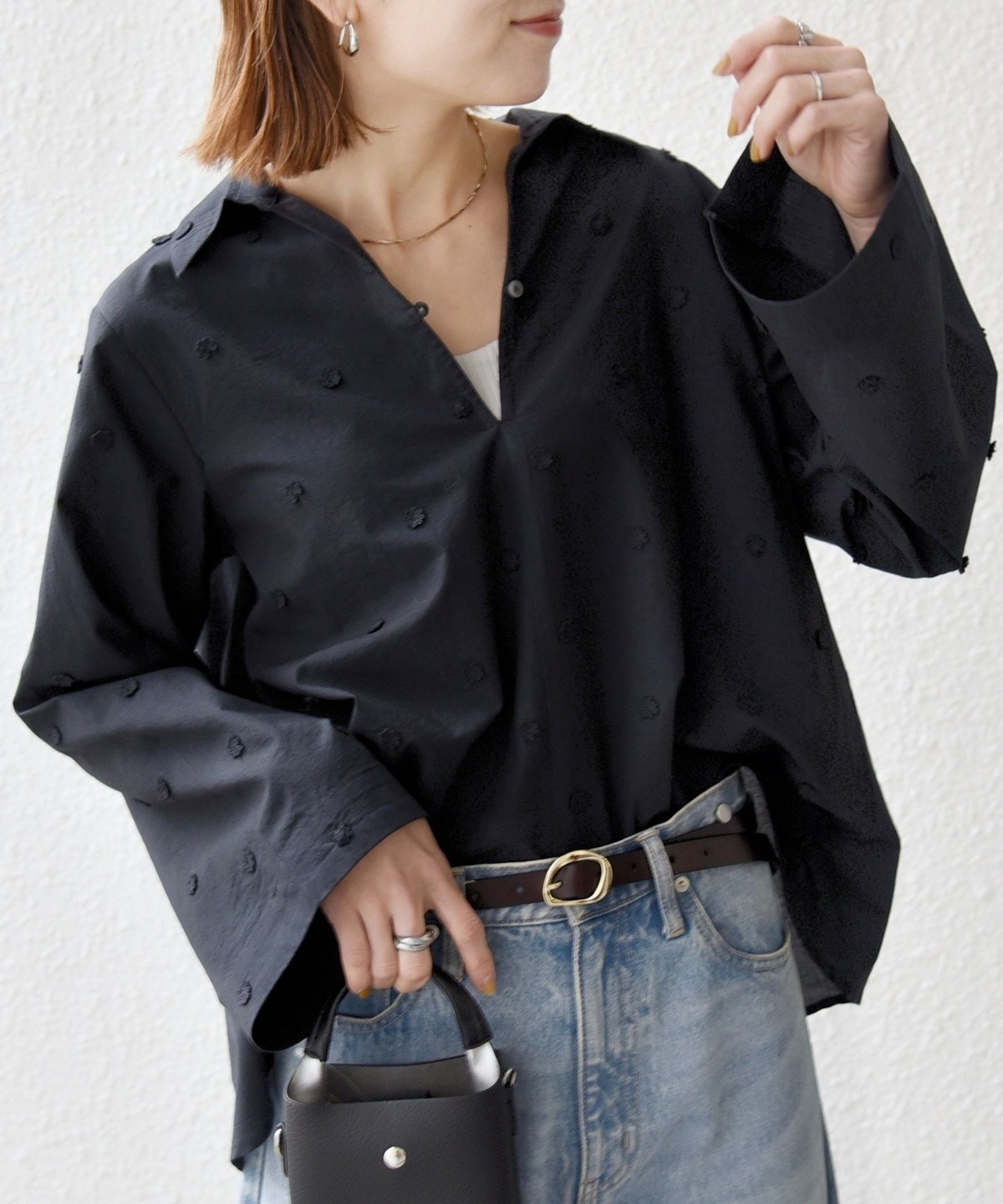 ハンサムなスキッパーデザインで甘くなりすぎず、大人の女性にピッタリの一枚です。