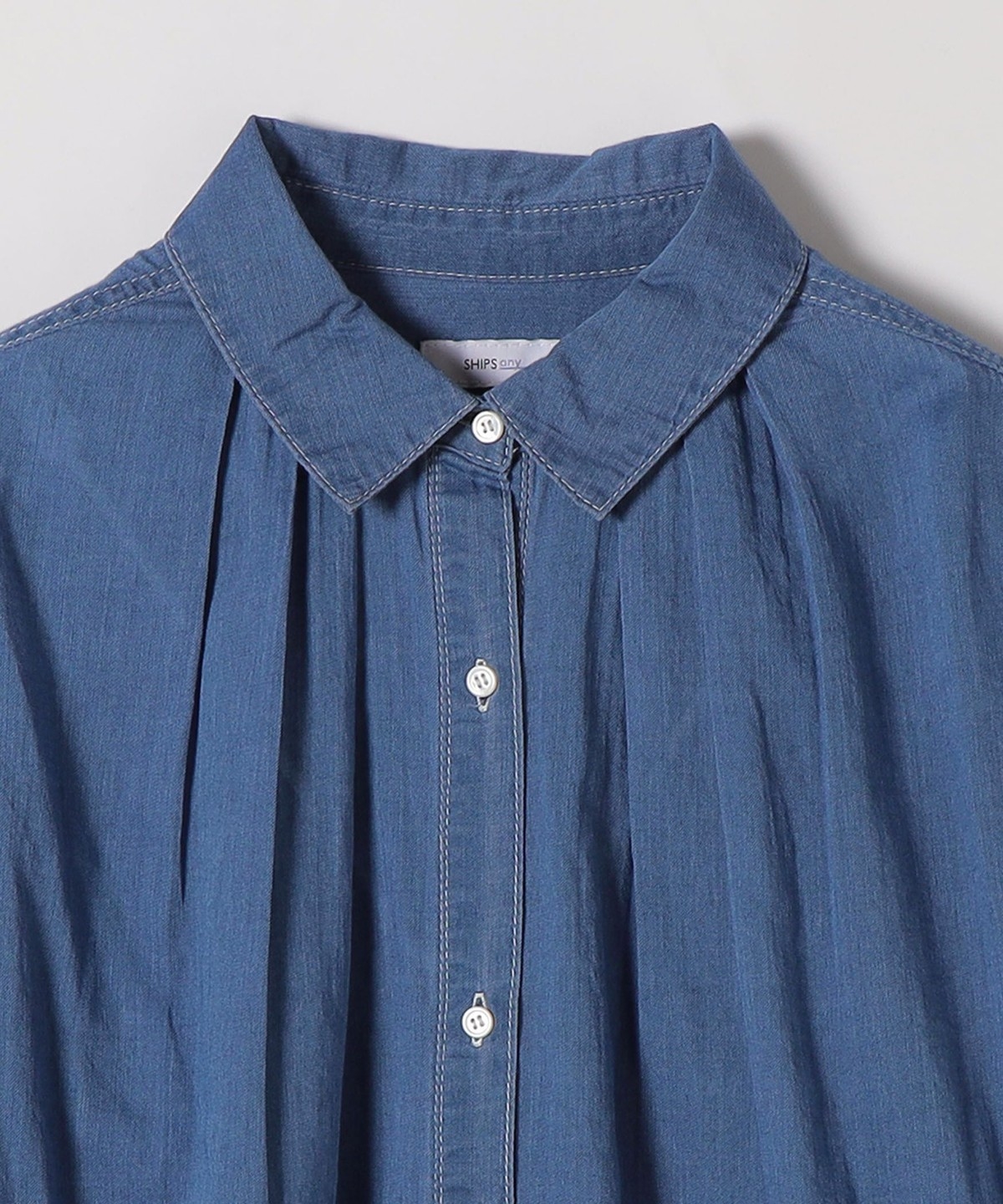 10. 《予約》SHIPS any:〈手洗い可能〉シアー デニム フラワー エンブロ タック シャツ