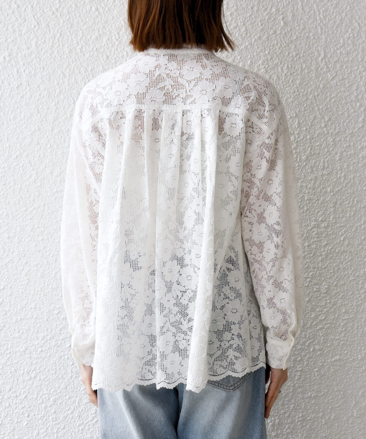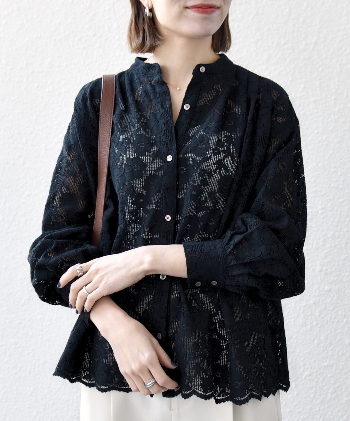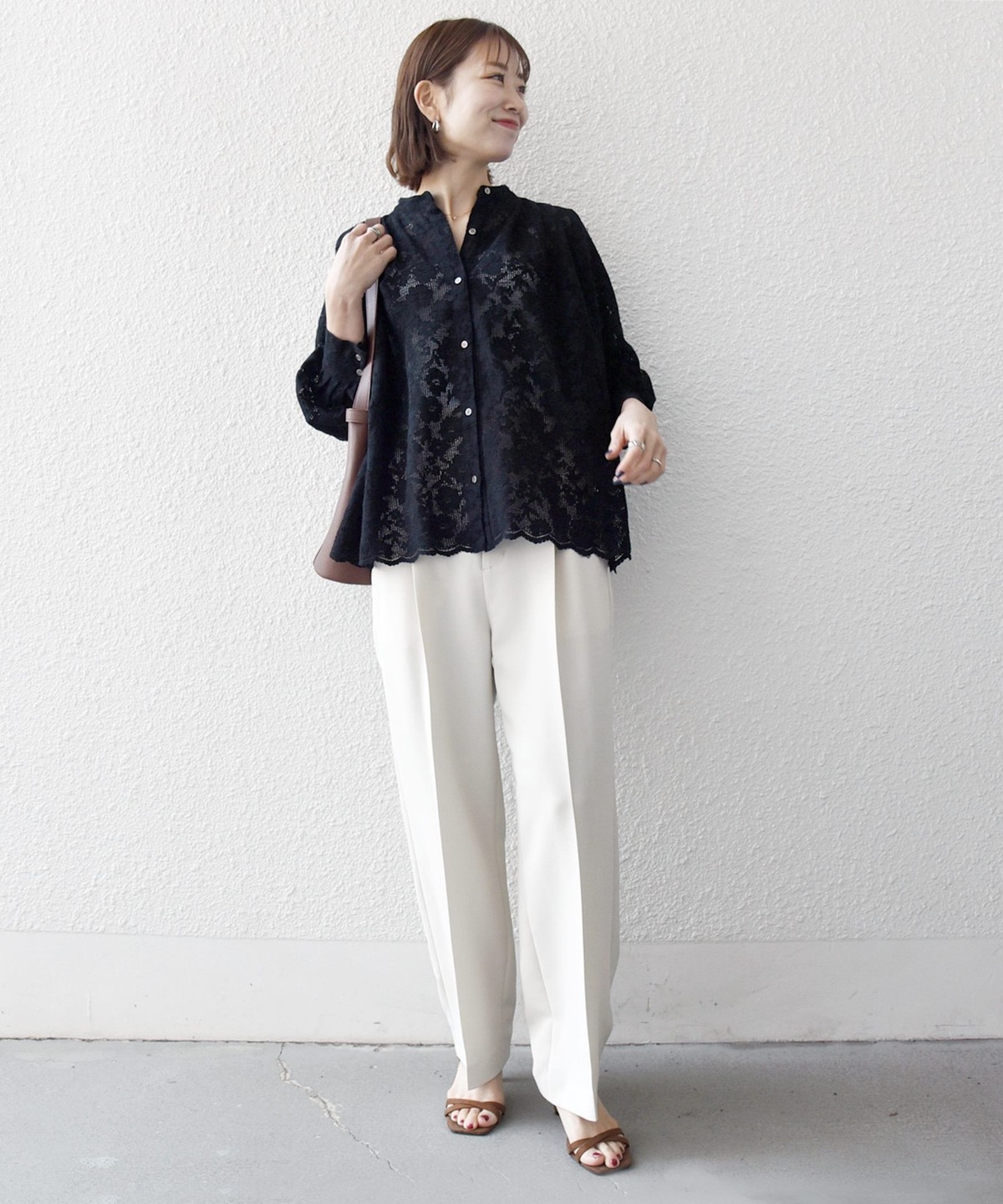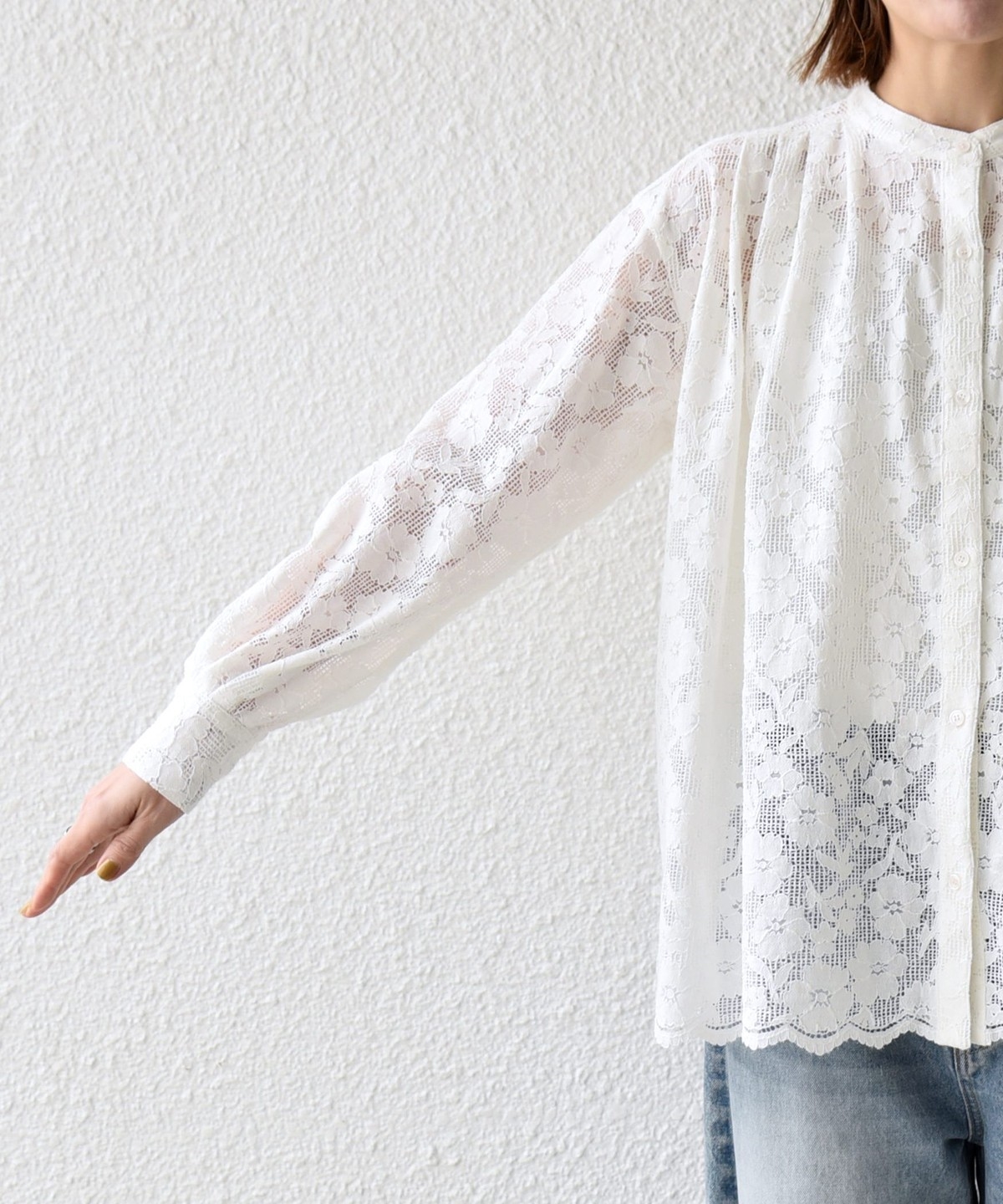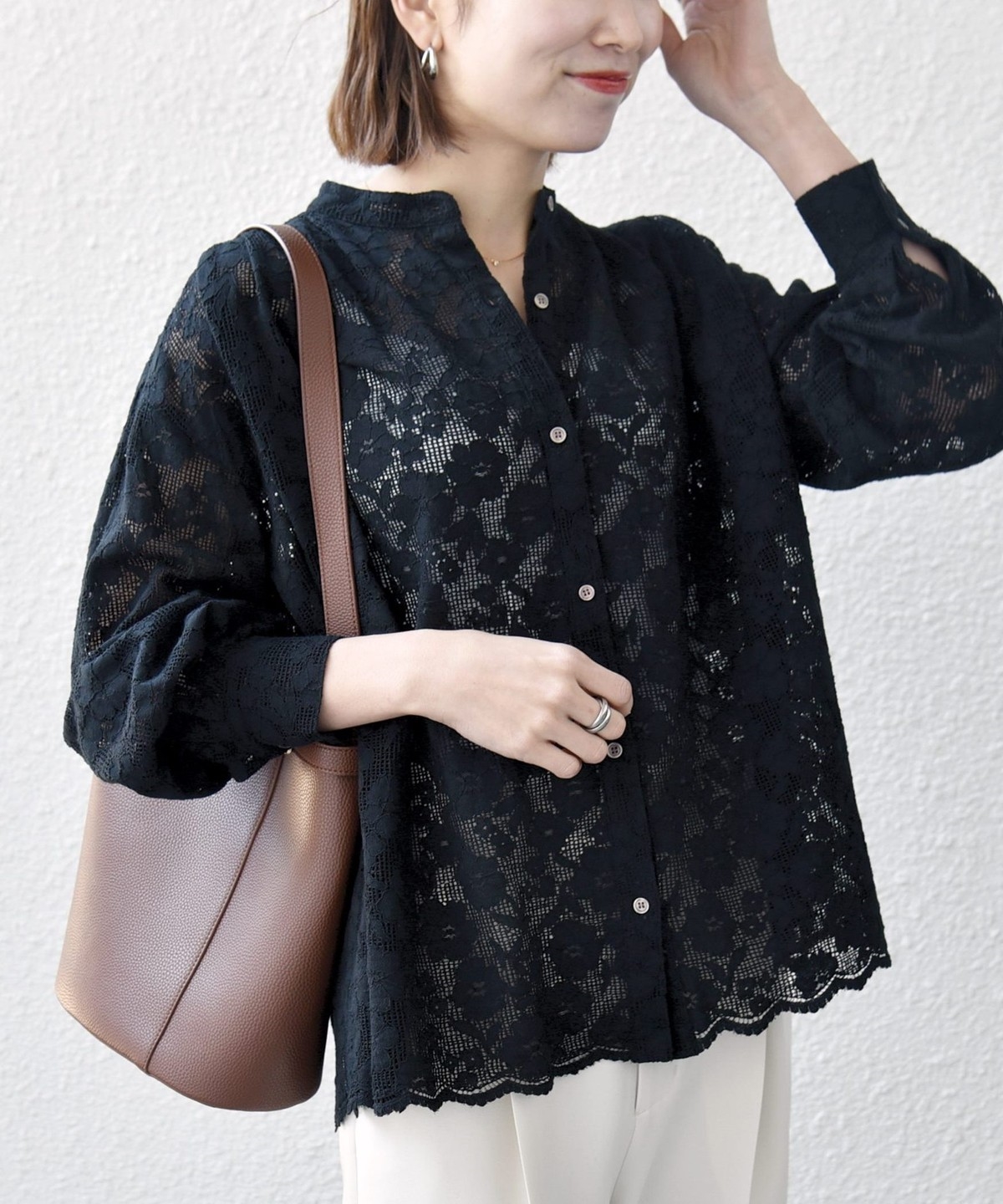 レースならではの透け感とフラワーモチーフの華やかさが魅力のシャツブラウス。