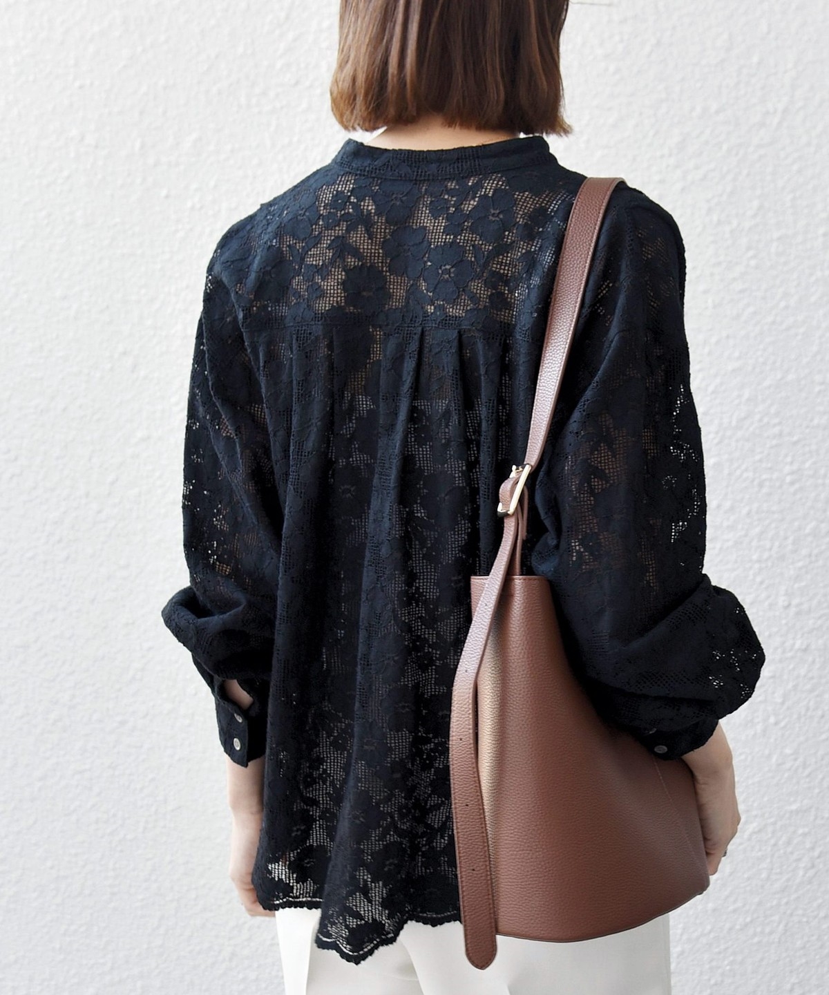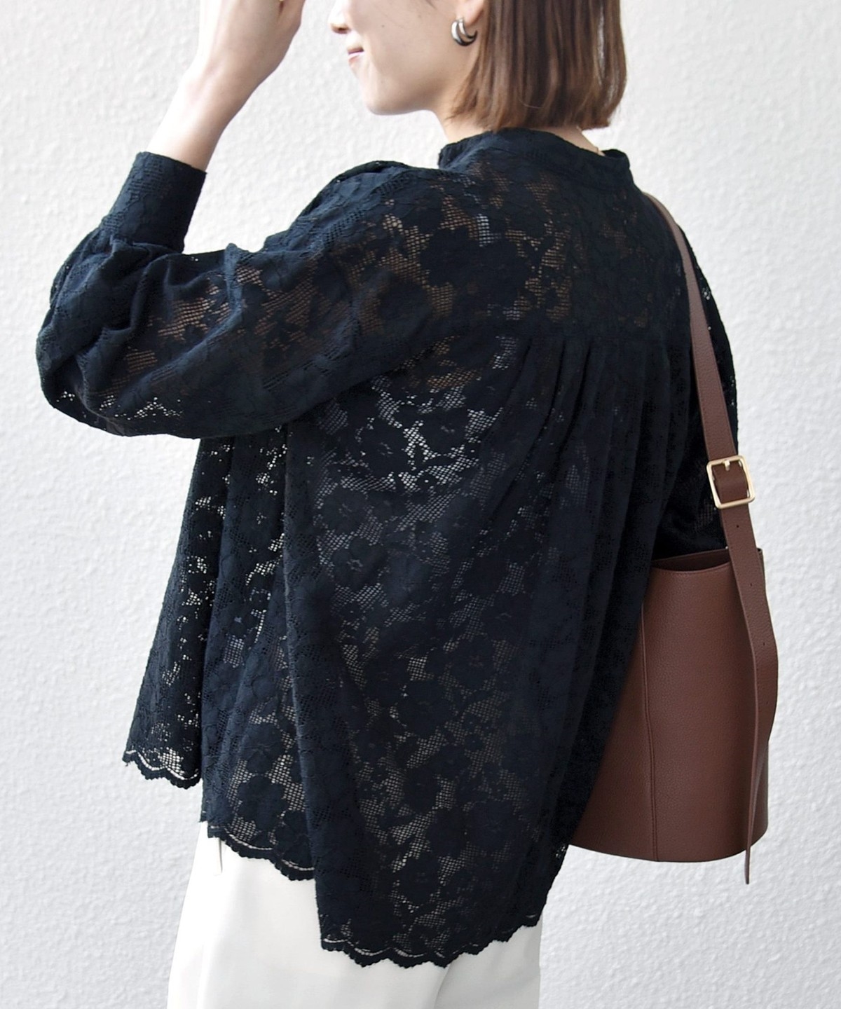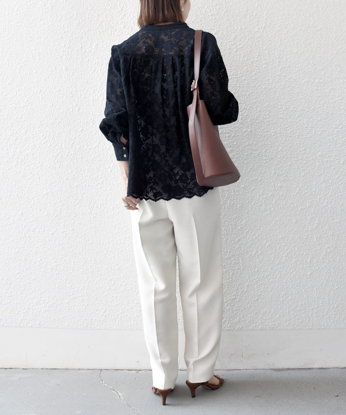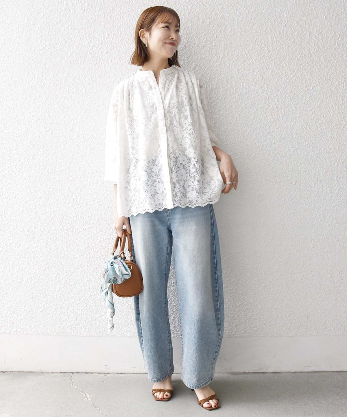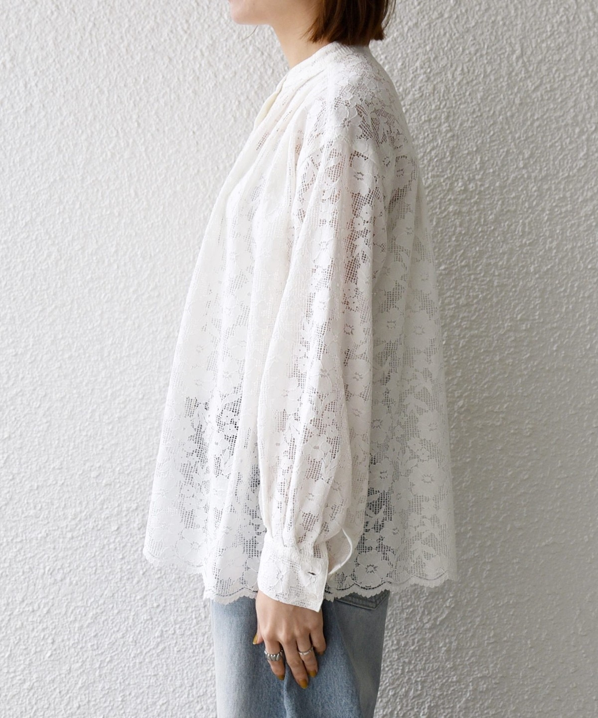 レースならではの透け感とフラワーモチーフの華やかさが魅力のシャツブラウス。