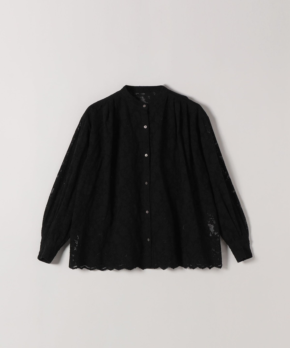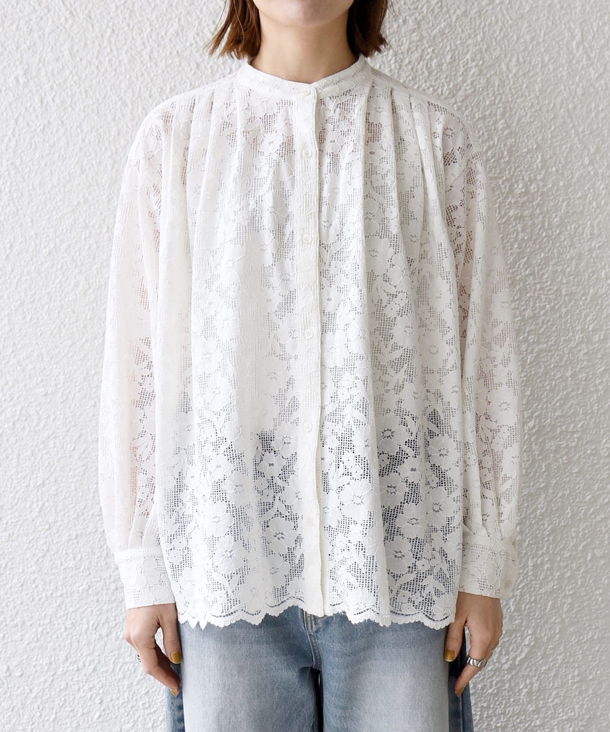 《予約》SHIPS any:〈手洗い可能〉フラワー メッシュ レース バンドカラー タック シャツ