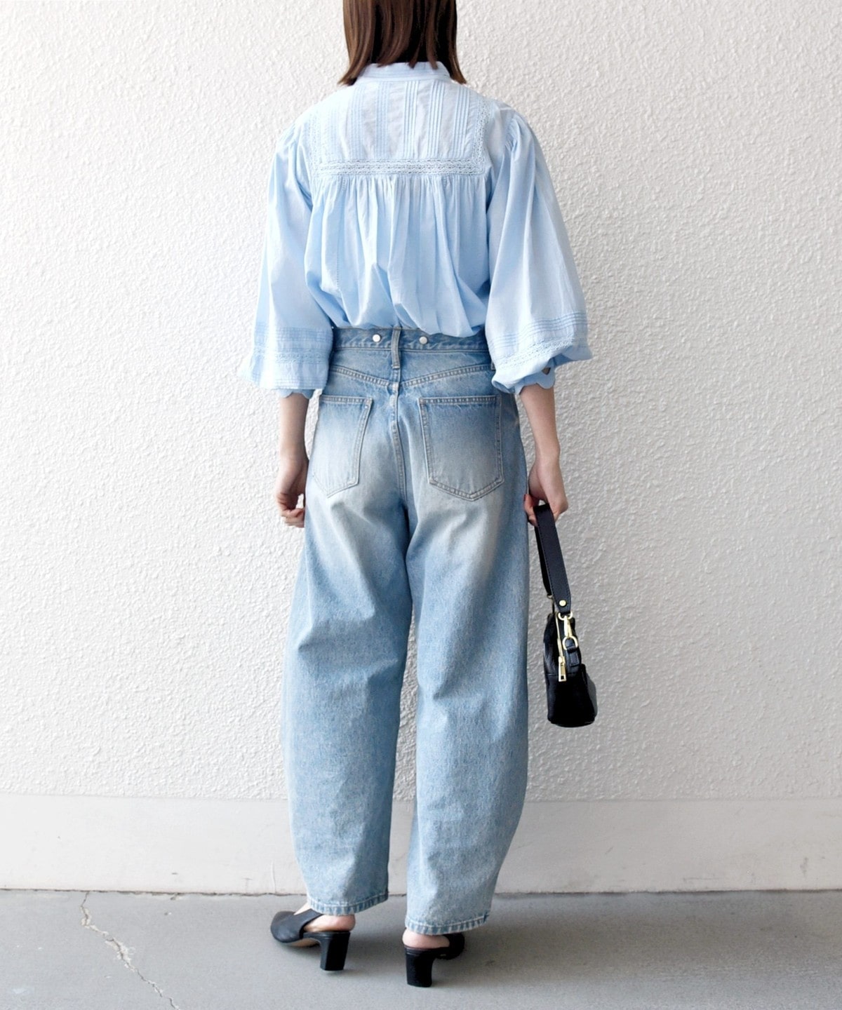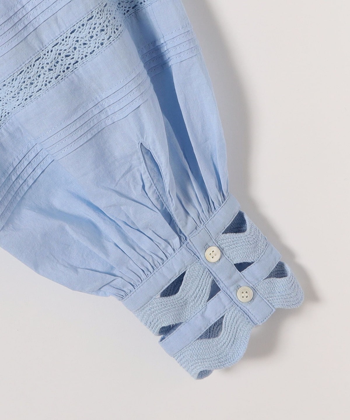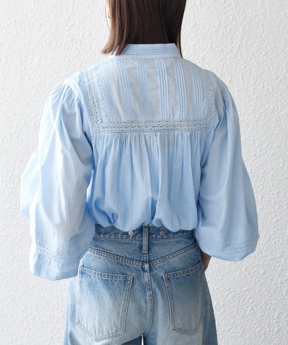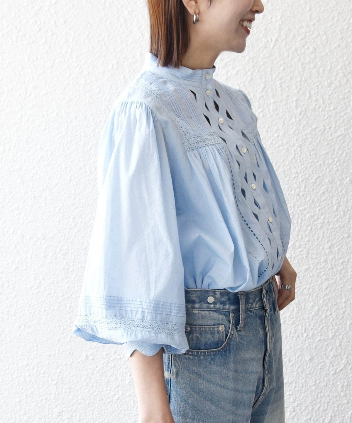 2. 《予約》SHIPS any:〈洗濯機可能〉キャンブリック スタンドカラー レース シャツ ブラウス ライトブルー