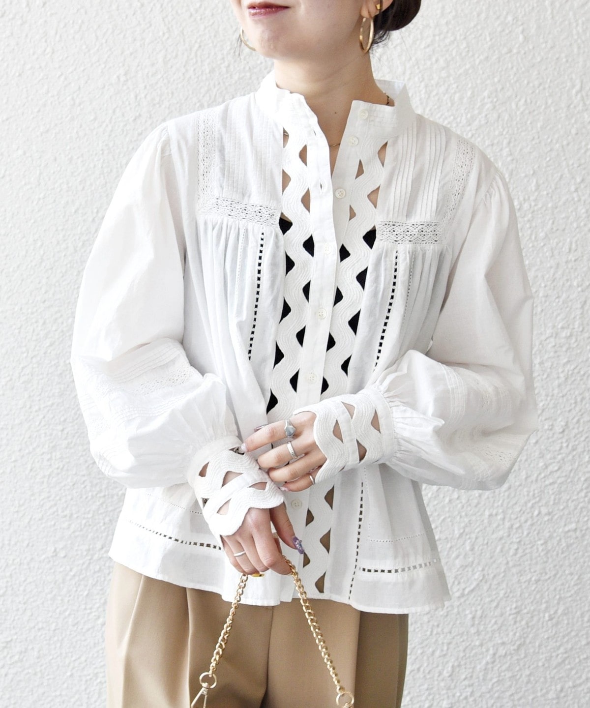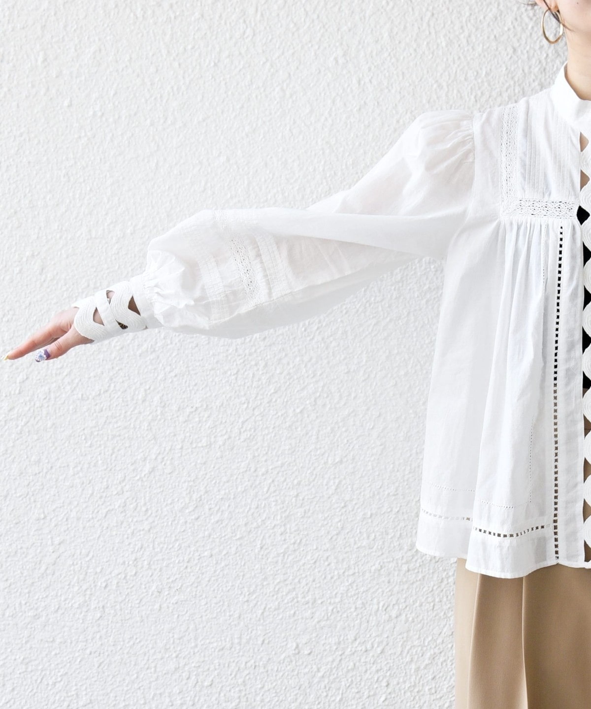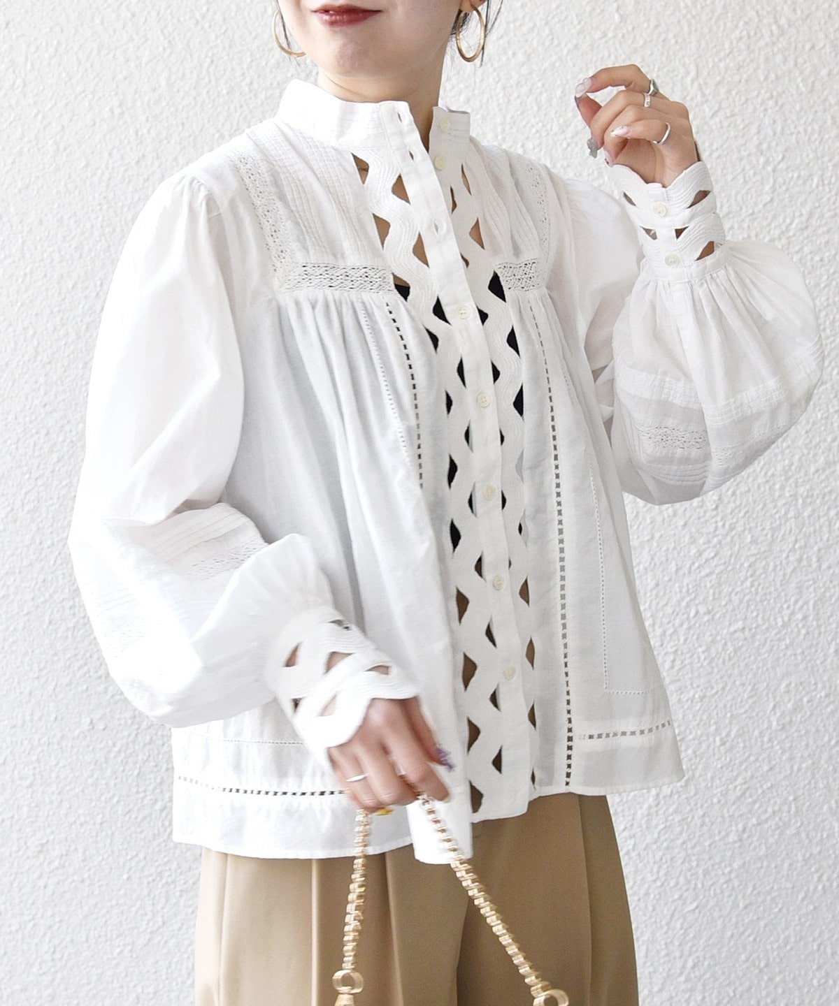 > > >  > 《予約》SHIPS any:〈洗濯機可能〉キャンブリック スタンドカラー レース シャツ ブラウス