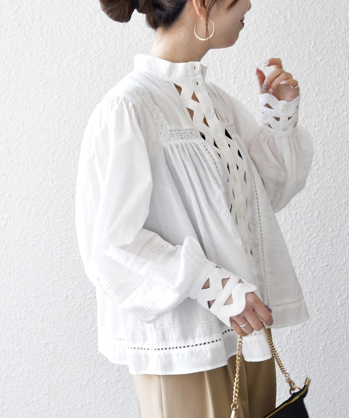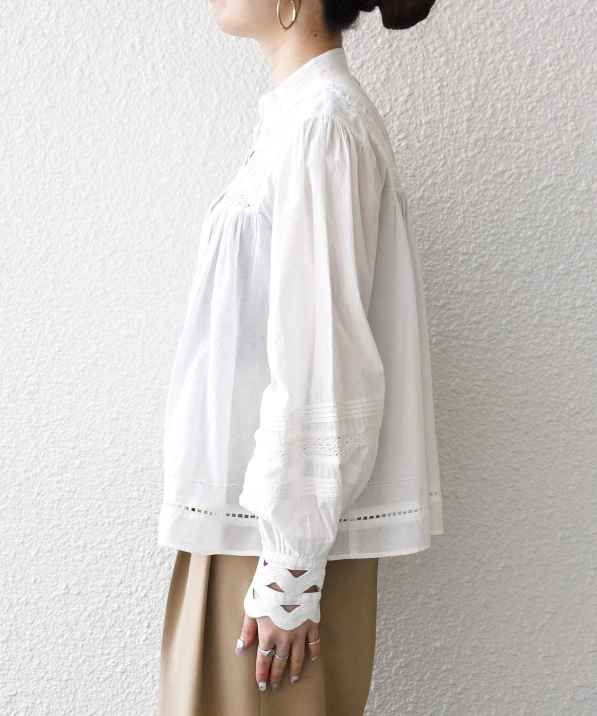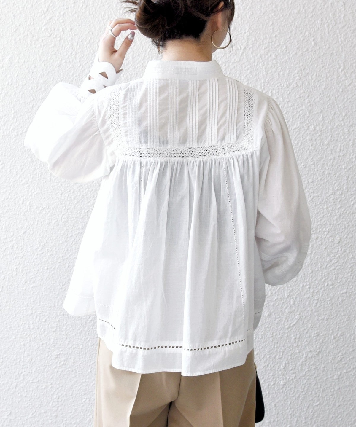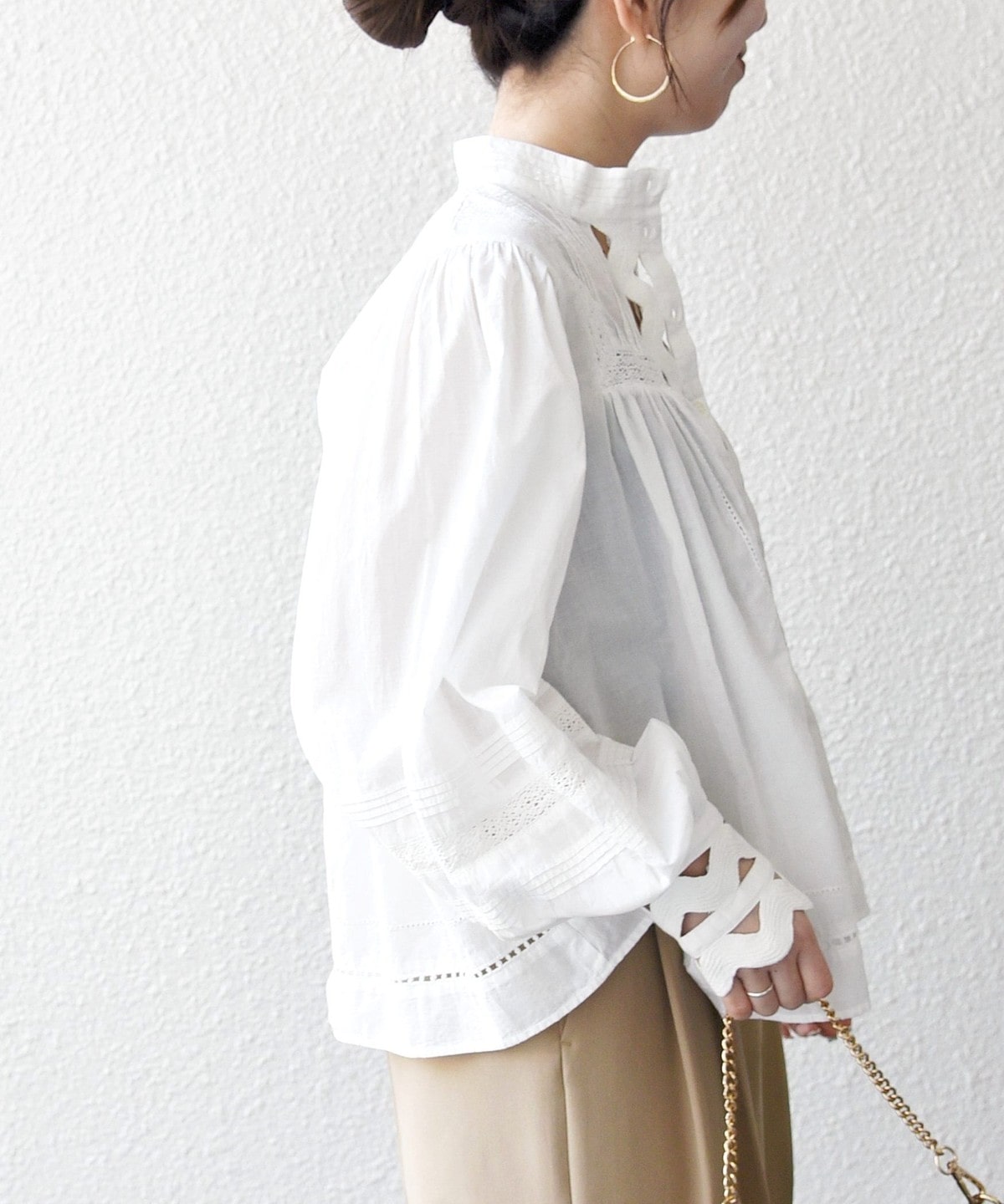 > > >  > 《予約》SHIPS any:〈洗濯機可能〉キャンブリック スタンドカラー レース シャツ ブラウス
