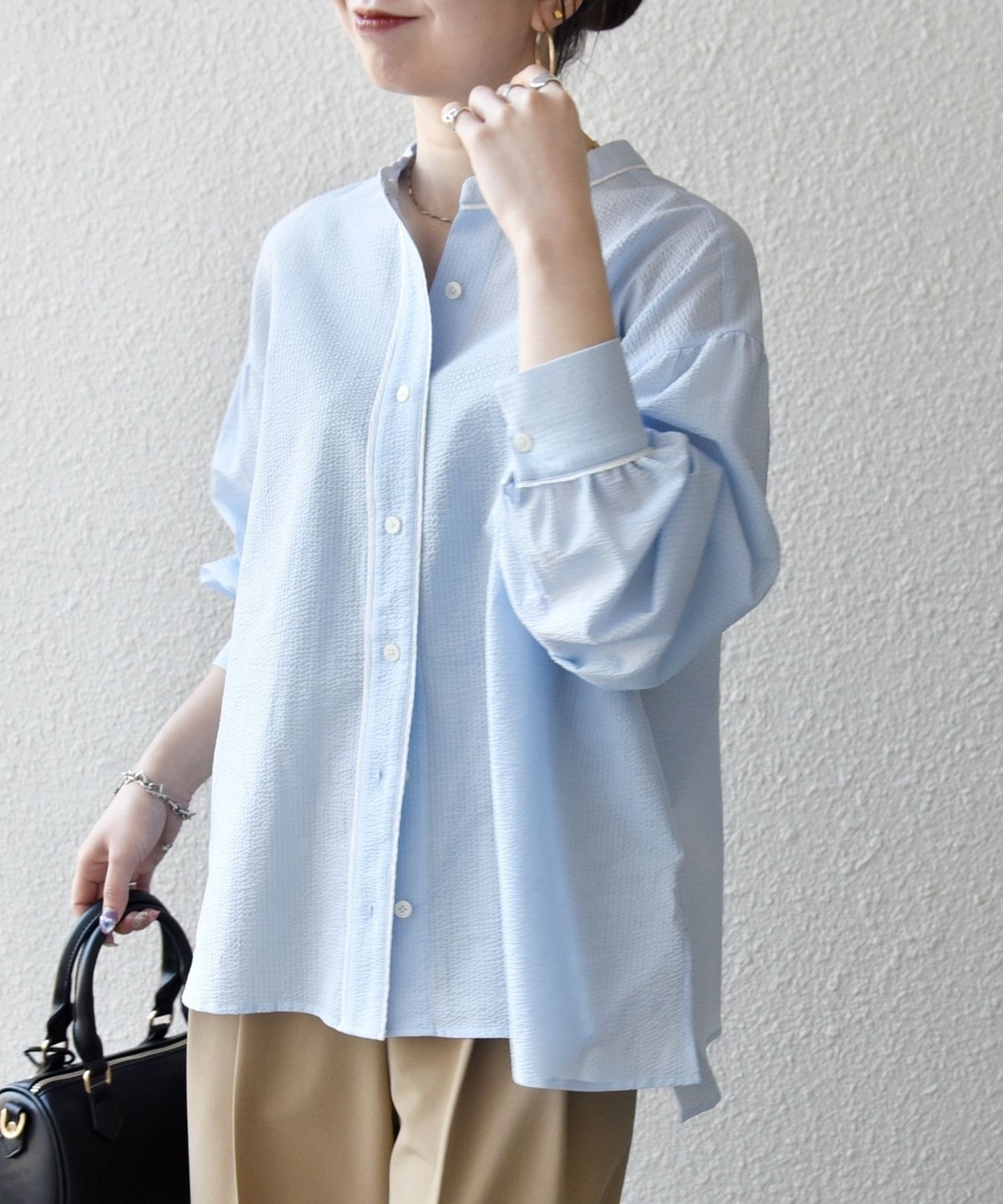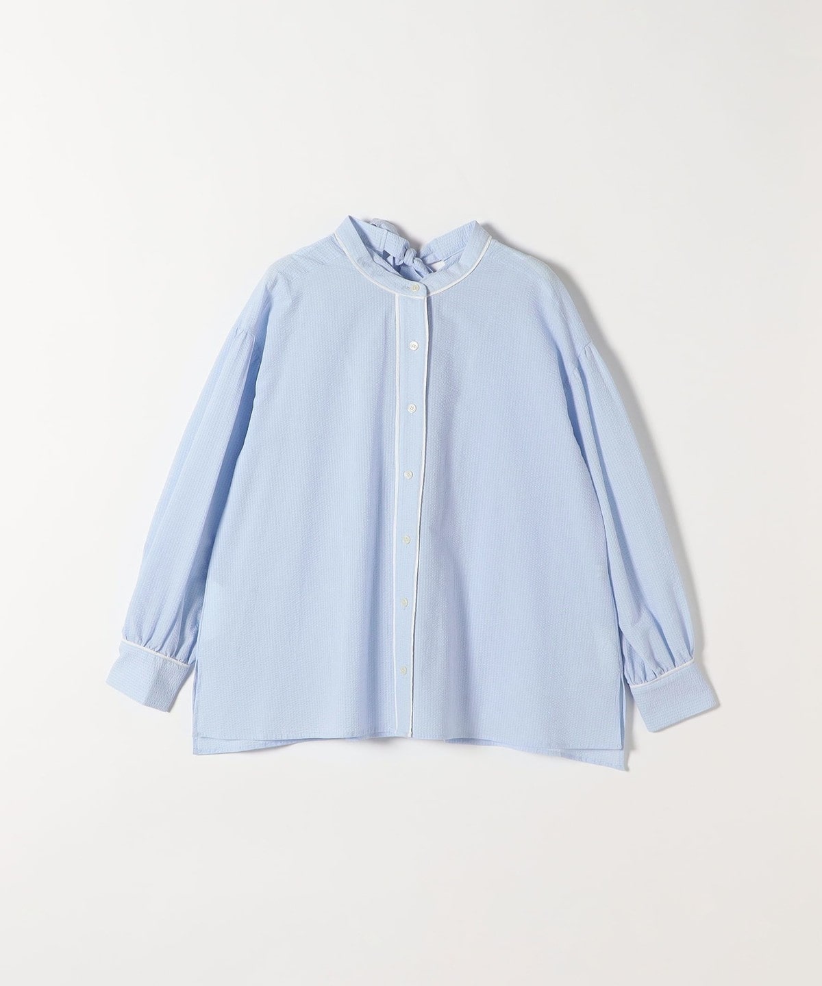 3. 《予約》SHIPS any:〈洗濯機可能〉サッカー バック リボン 配色 シャツ ブラウス ライトブルー