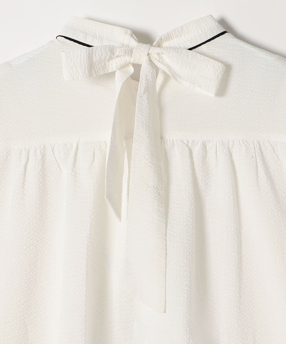 2. 《予約》SHIPS any:〈洗濯機可能〉サッカー バック リボン 配色 シャツ ブラウス オフホワイト