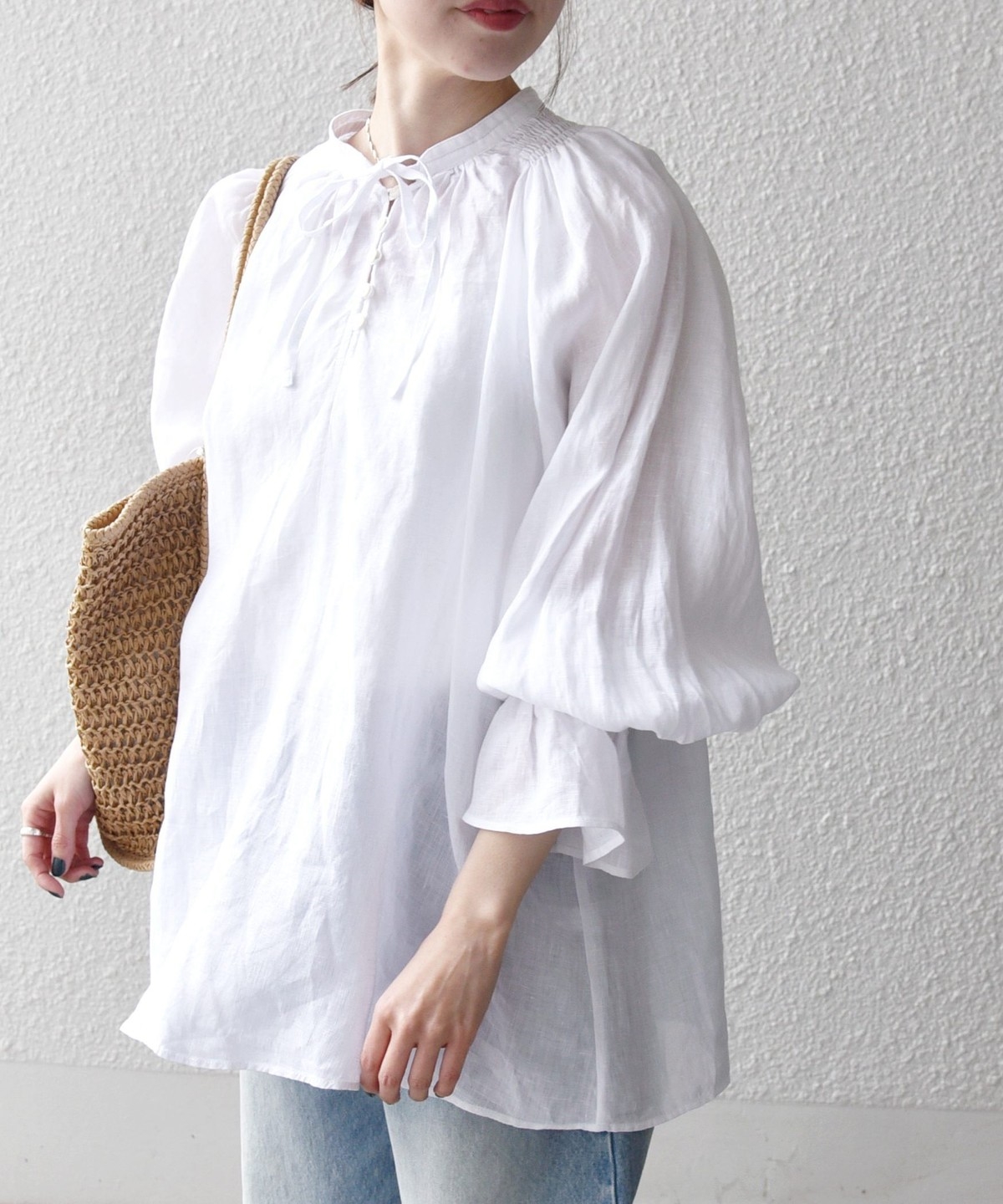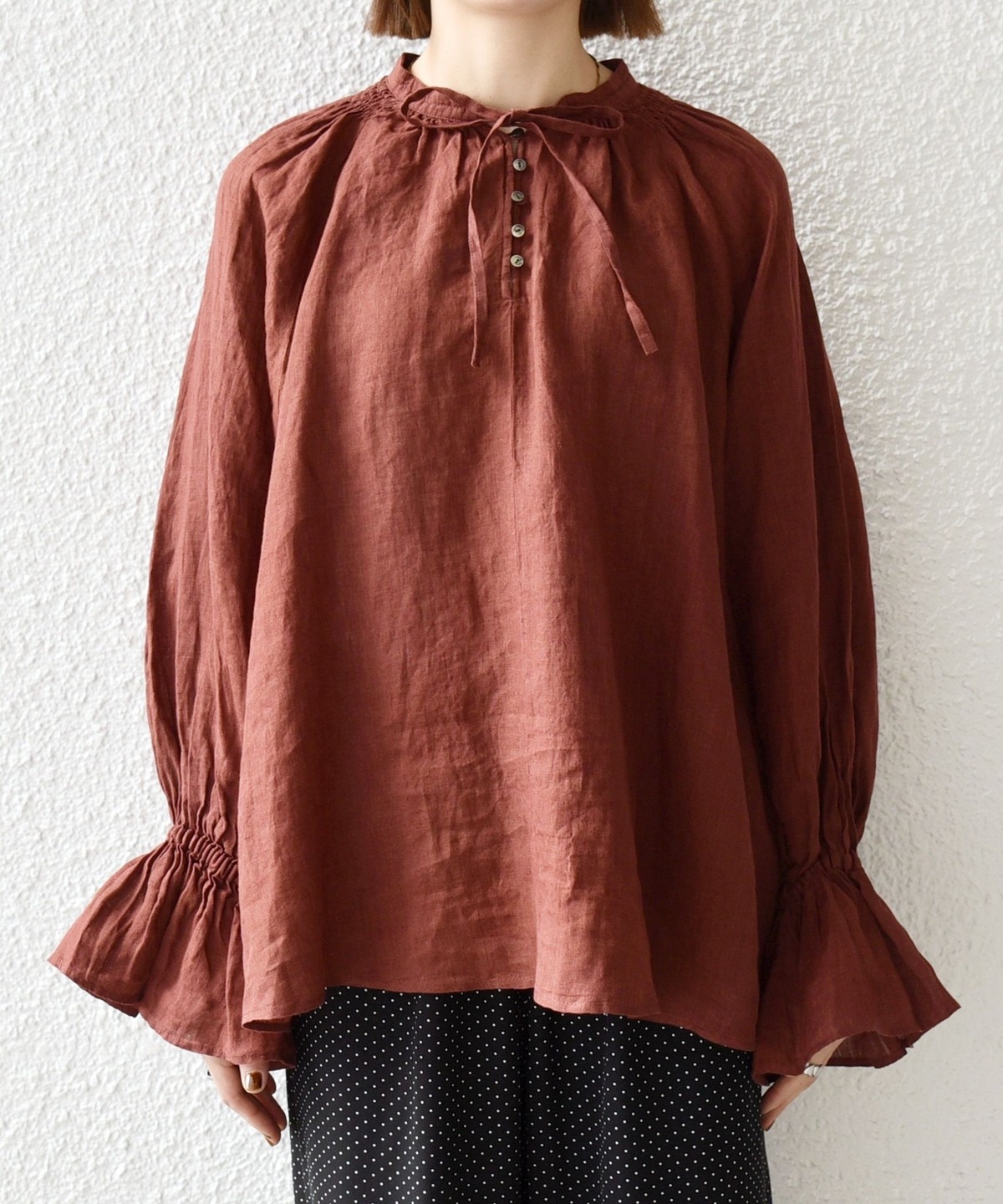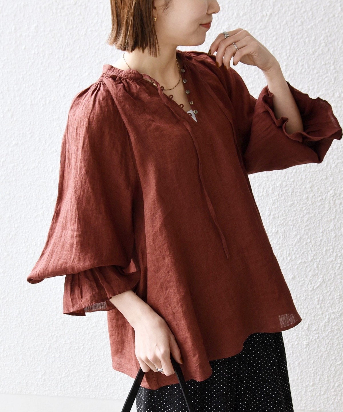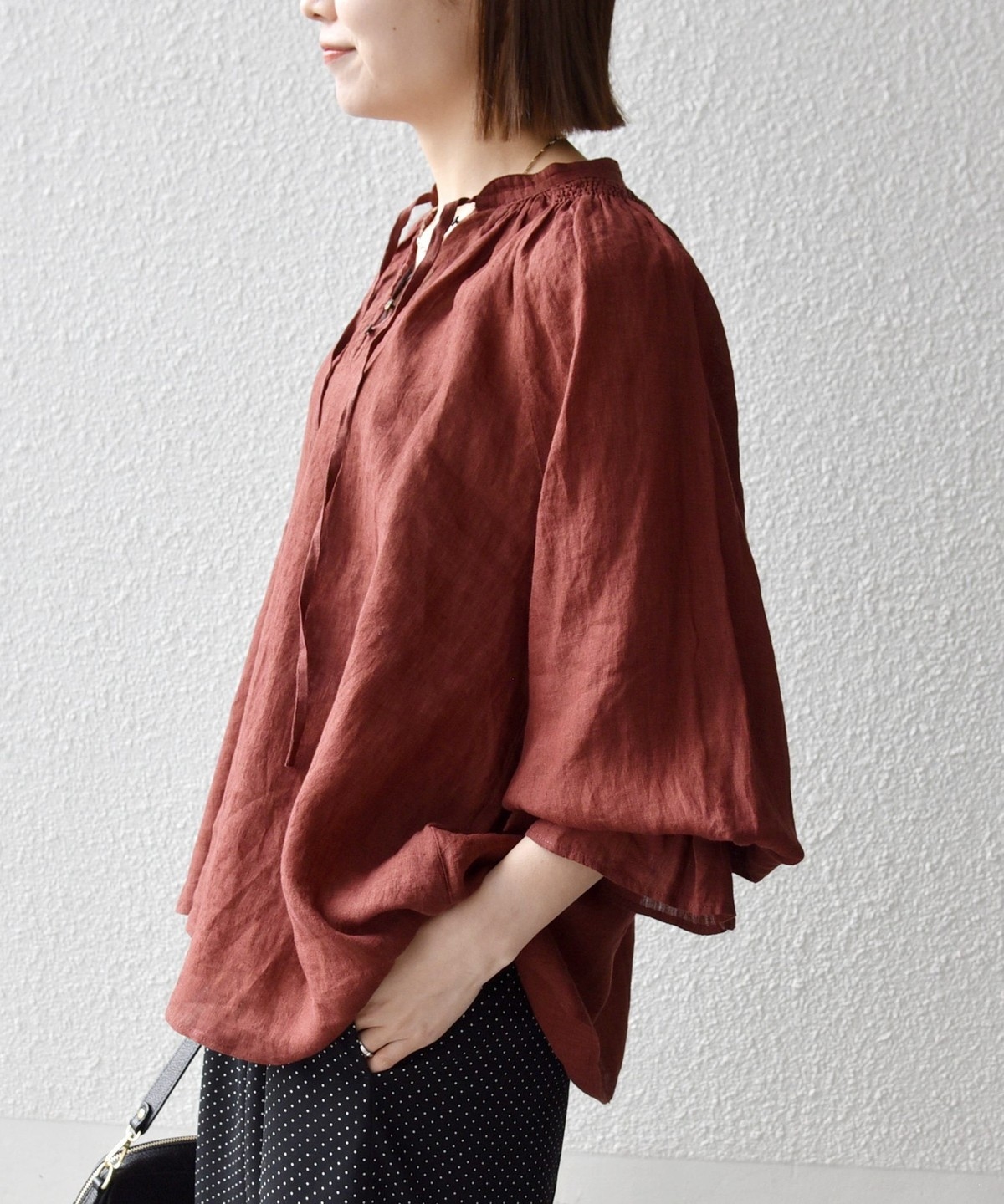 軽やかなリネンの風合いが魅力のブラウス。