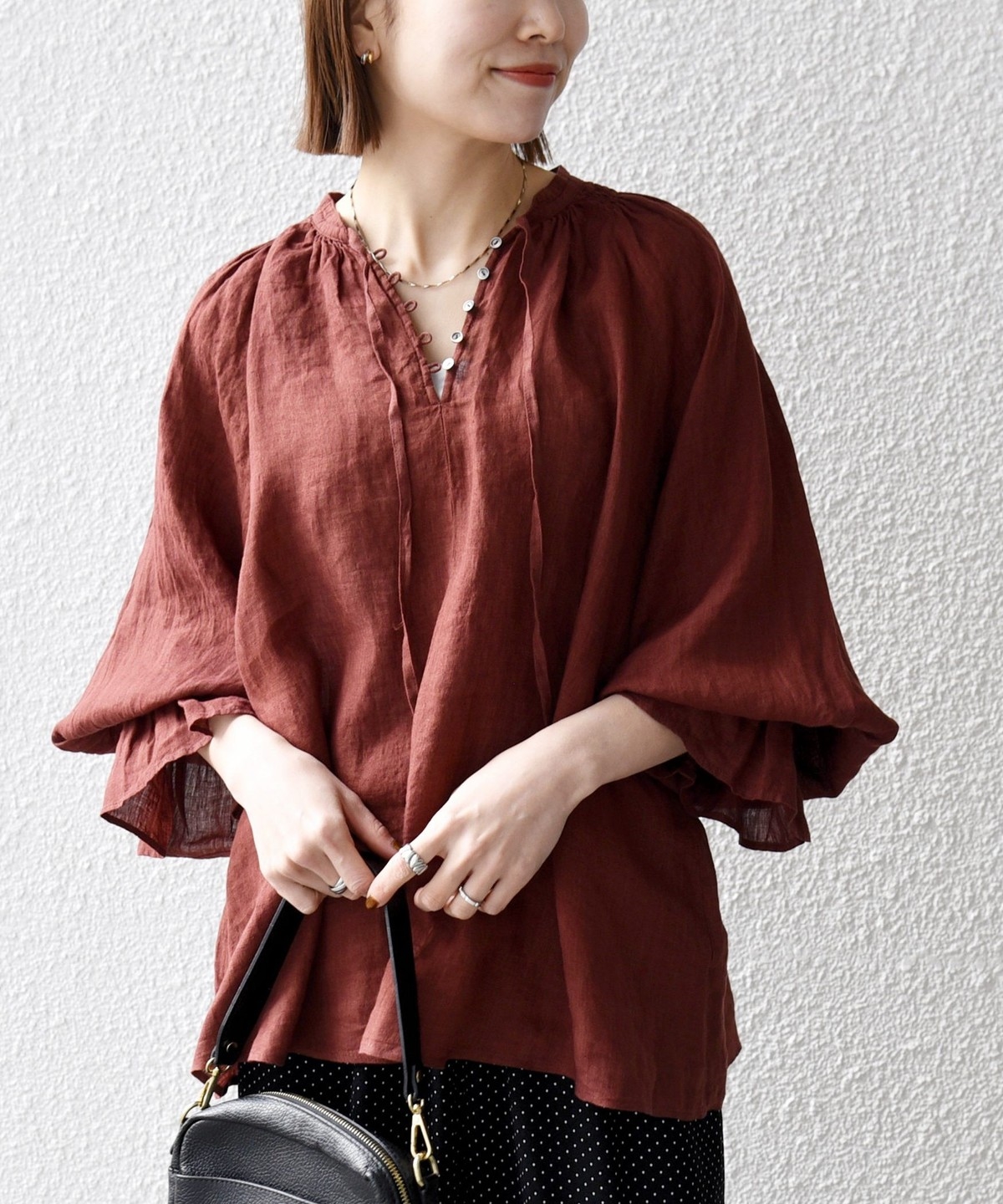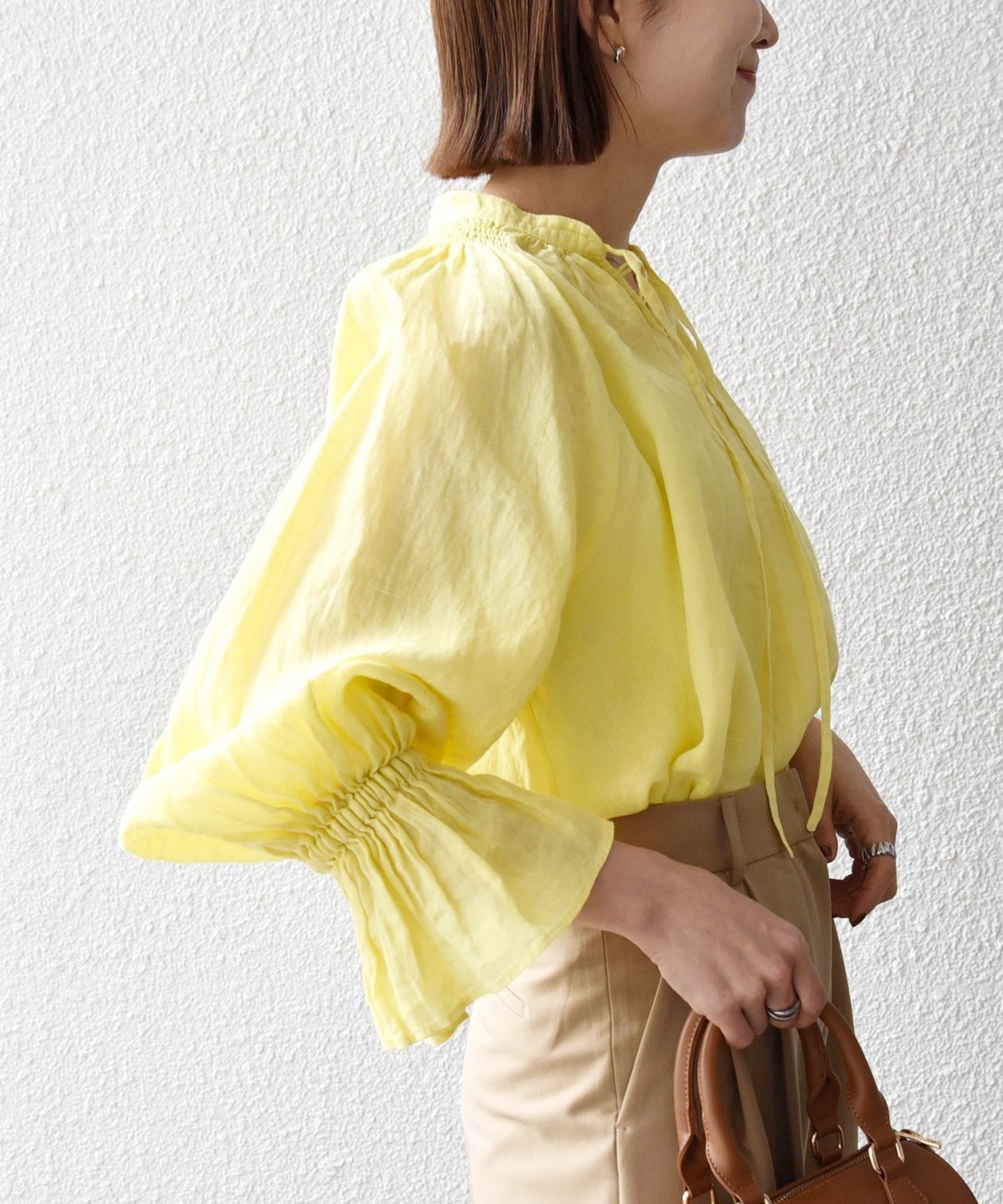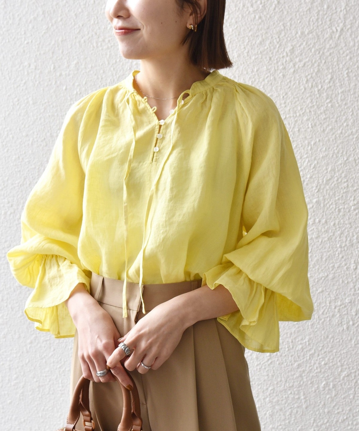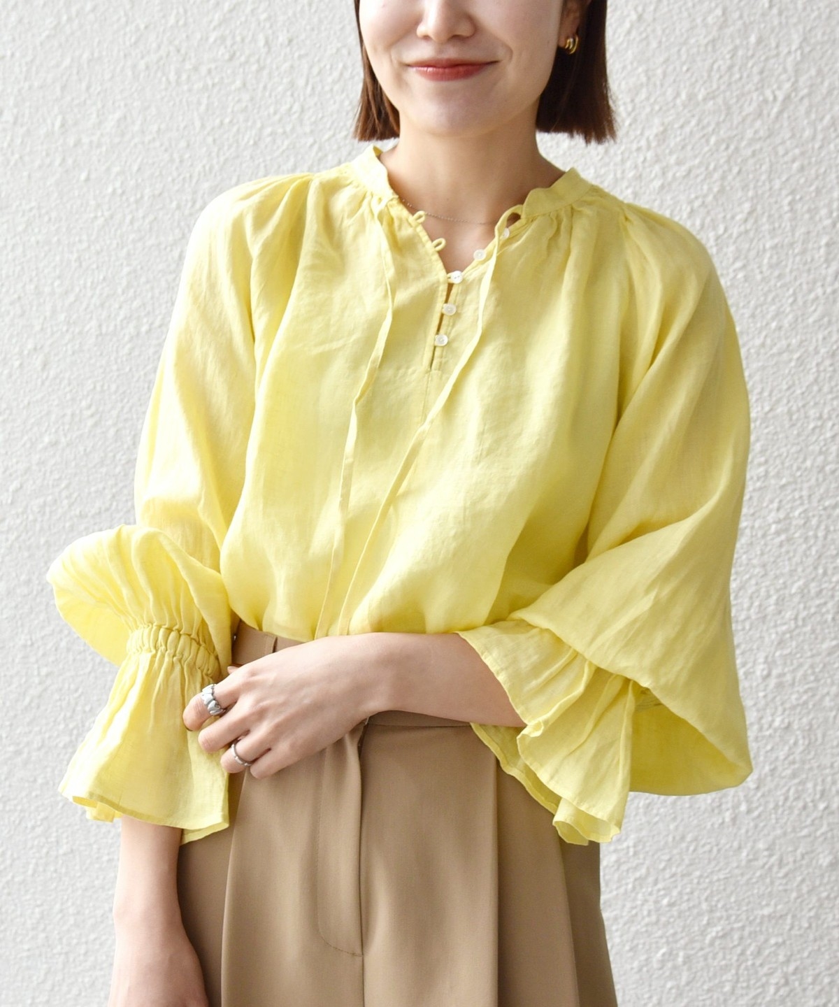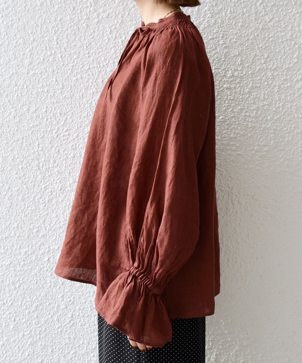 軽やかなリネンの風合いが魅力のブラウス。