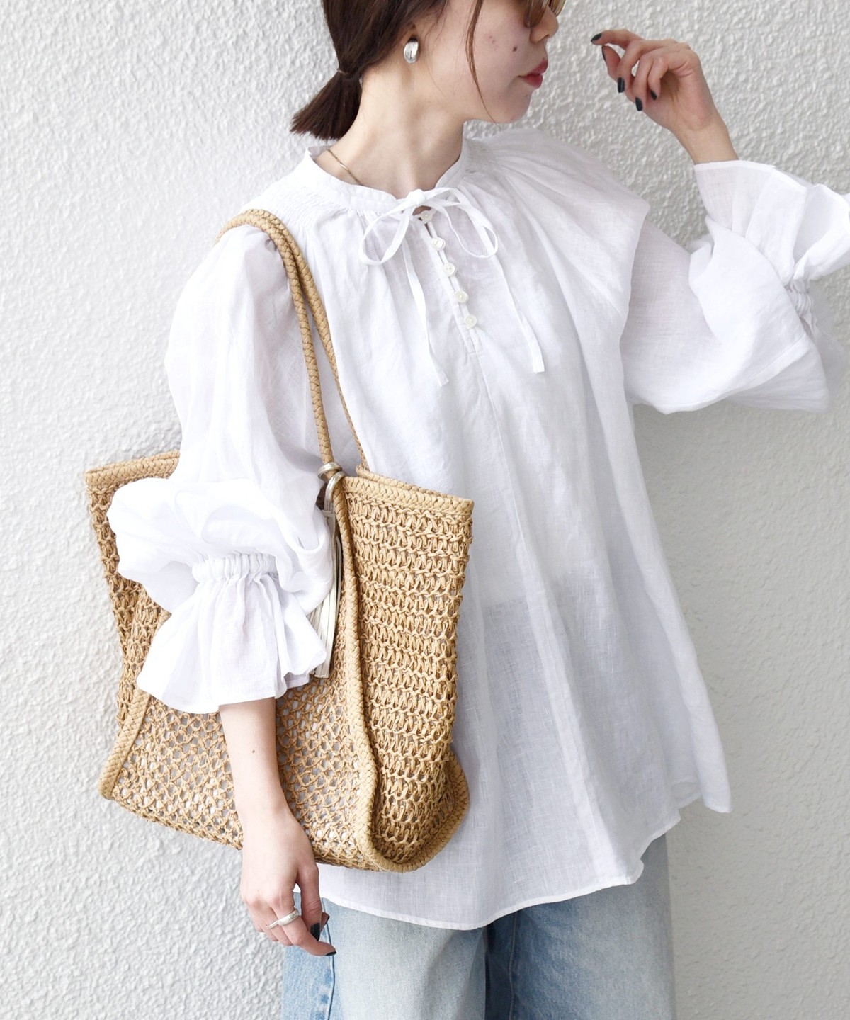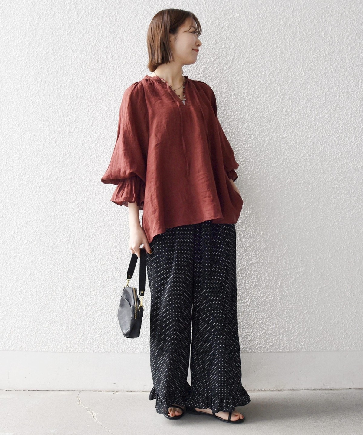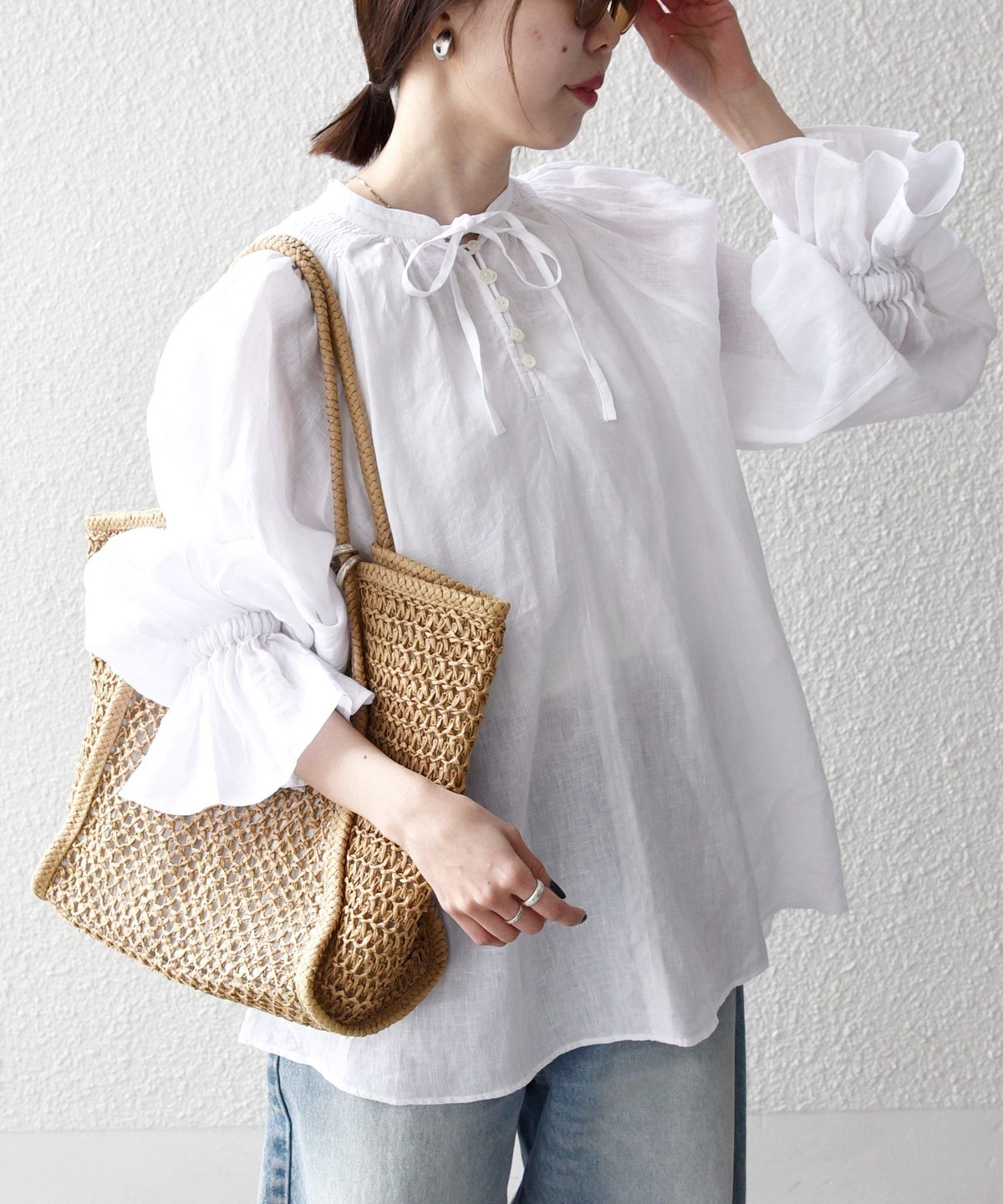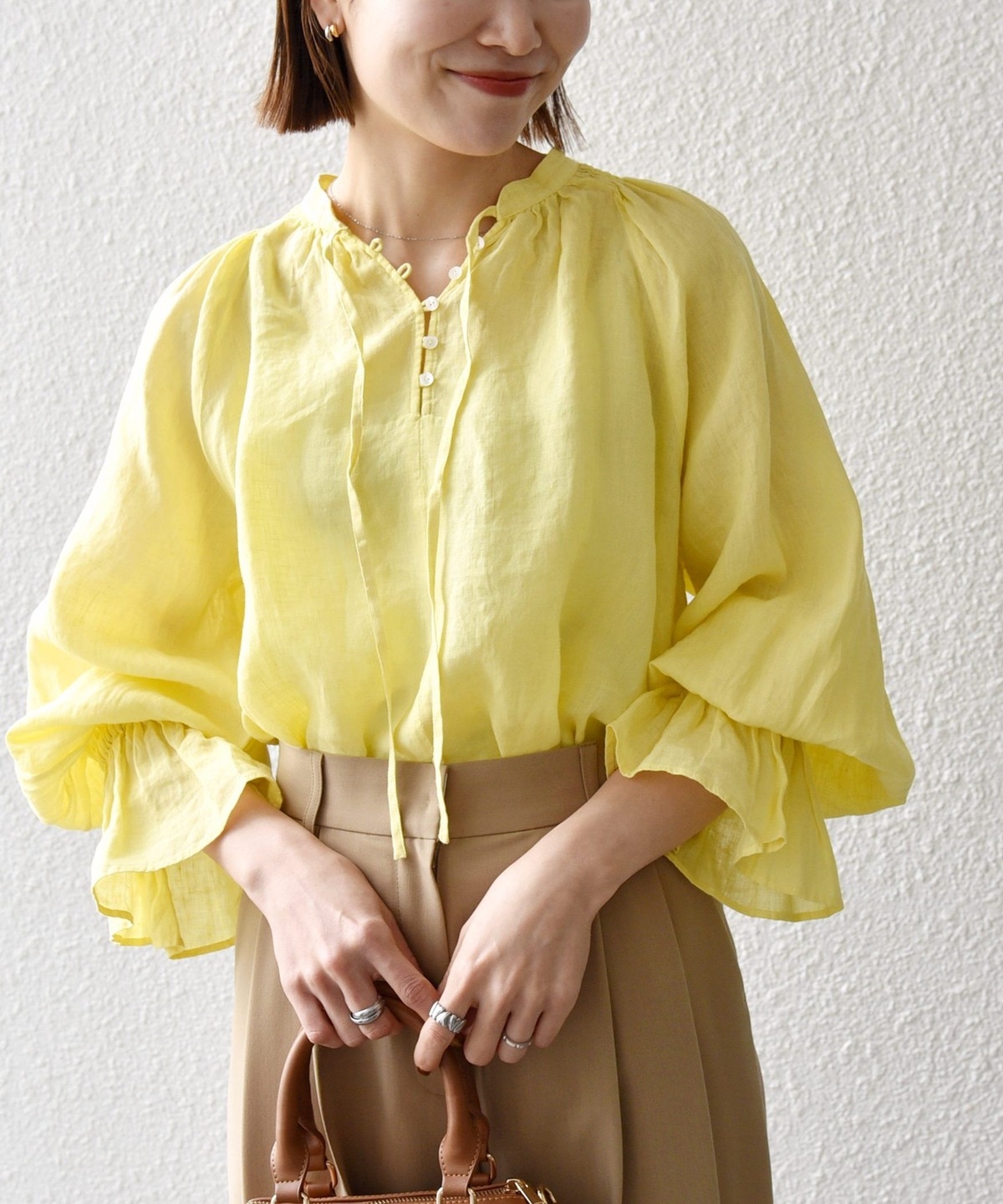 軽やかなリネンの風合いが魅力のブラウス。