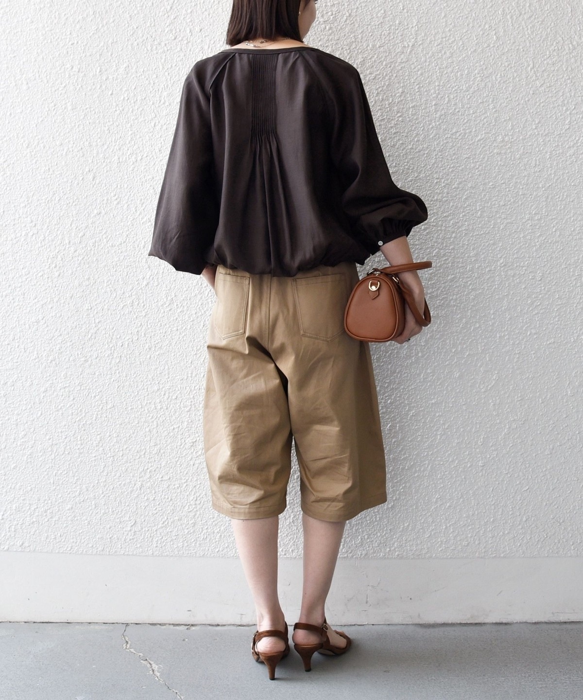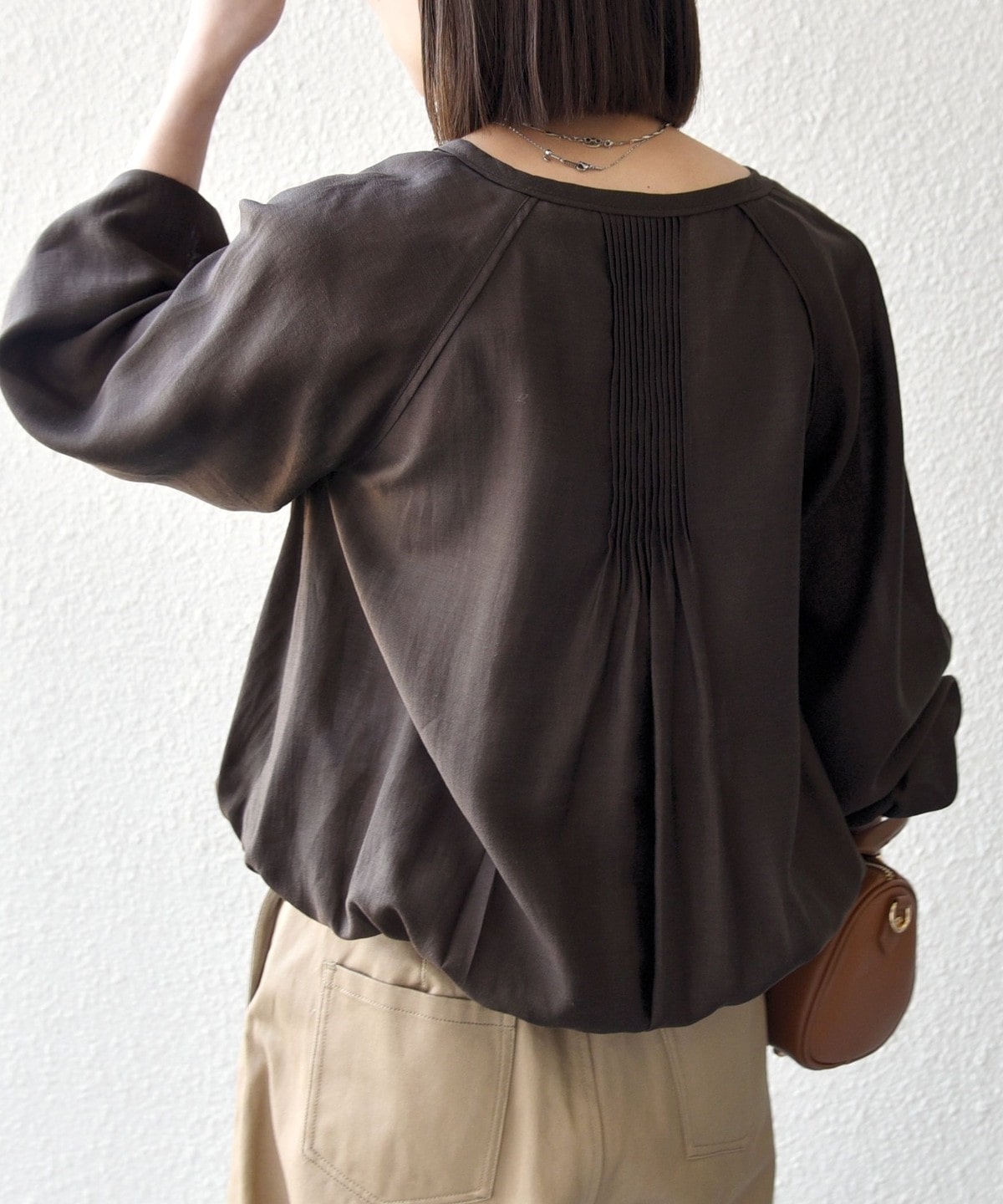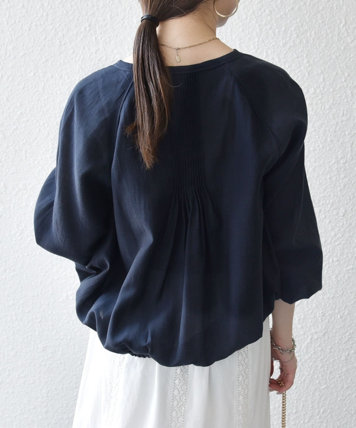 ギャザー入りの袖と裾と背中のタックが、ふんわり立体的なシルエットのアクセントに。