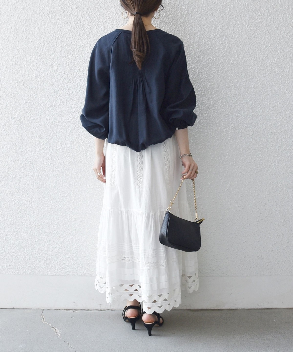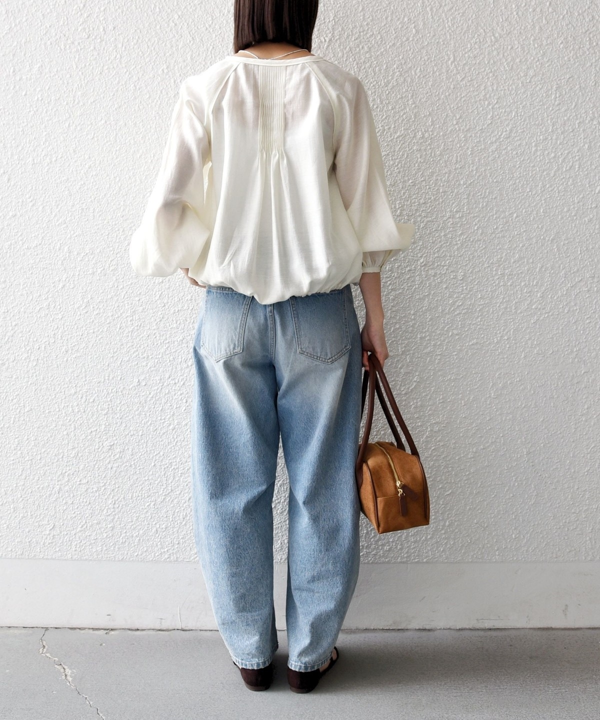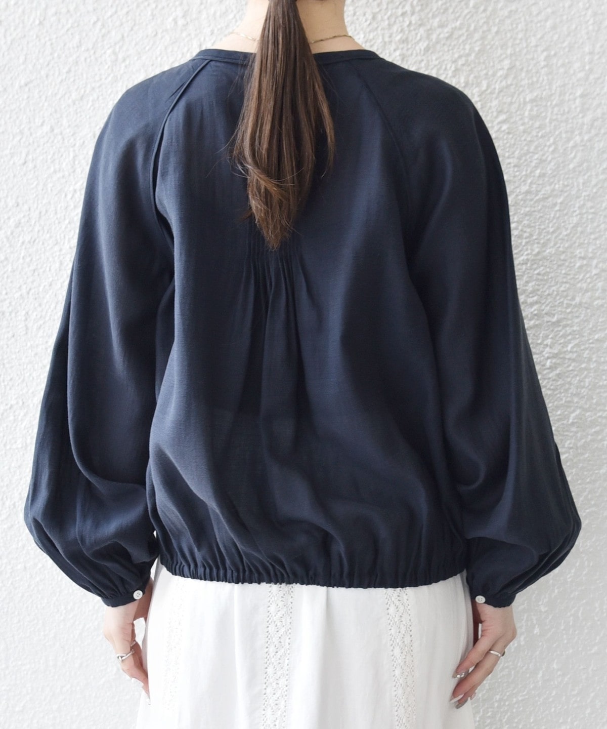 ギャザー入りの袖と裾と背中のタックが、ふんわり立体的なシルエットのアクセントに。