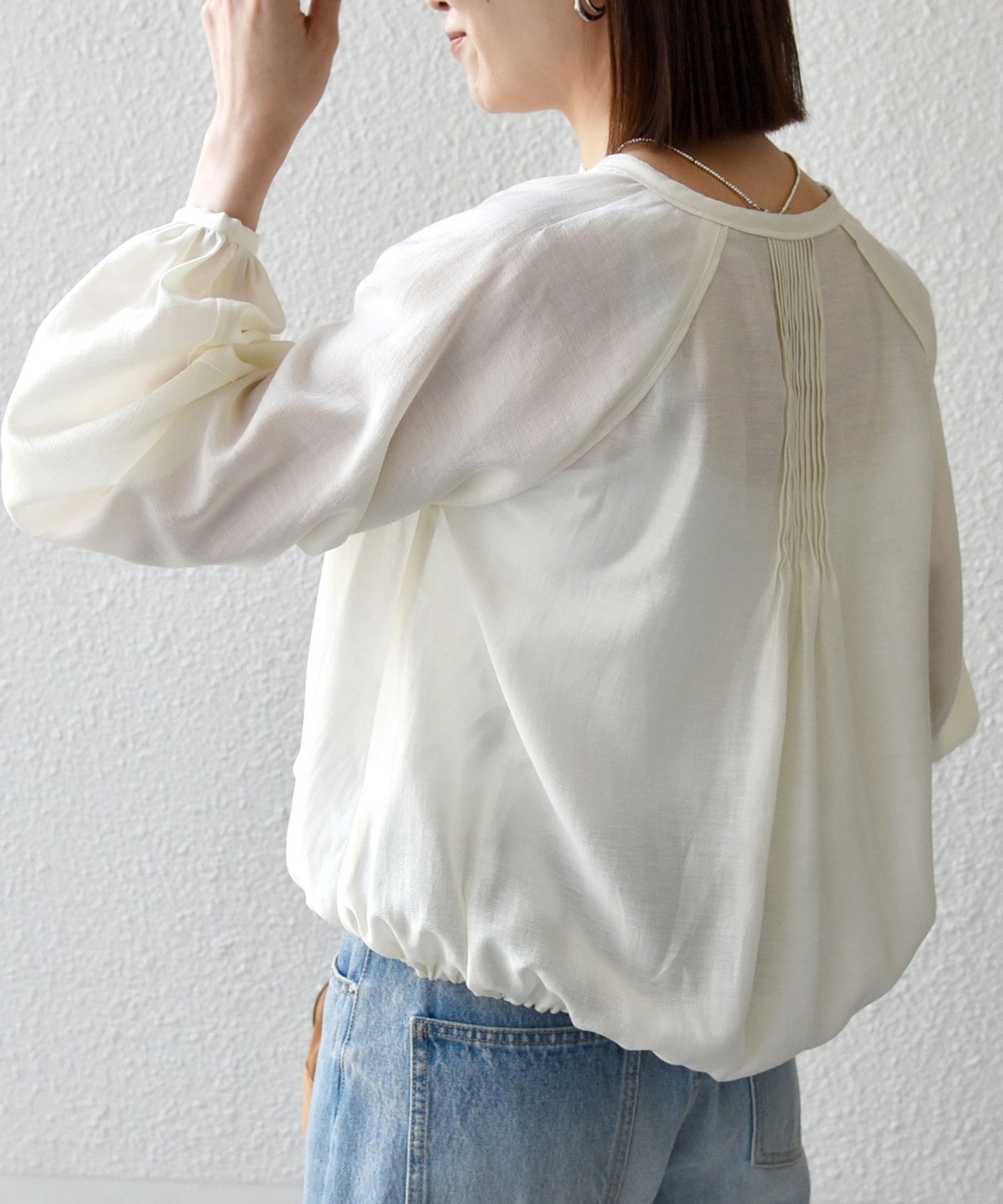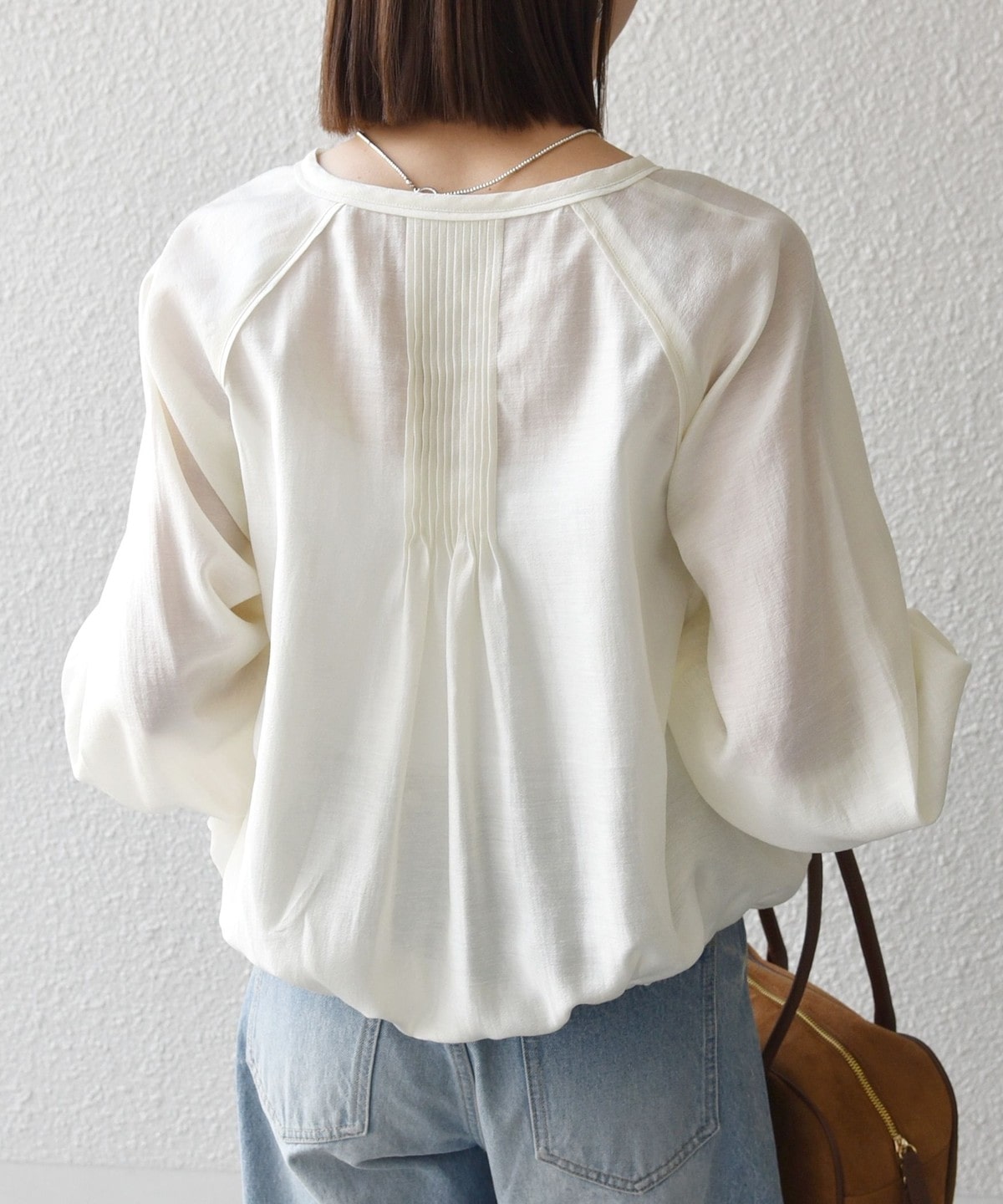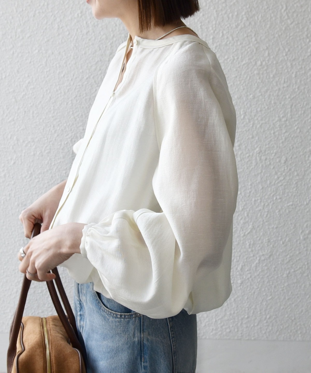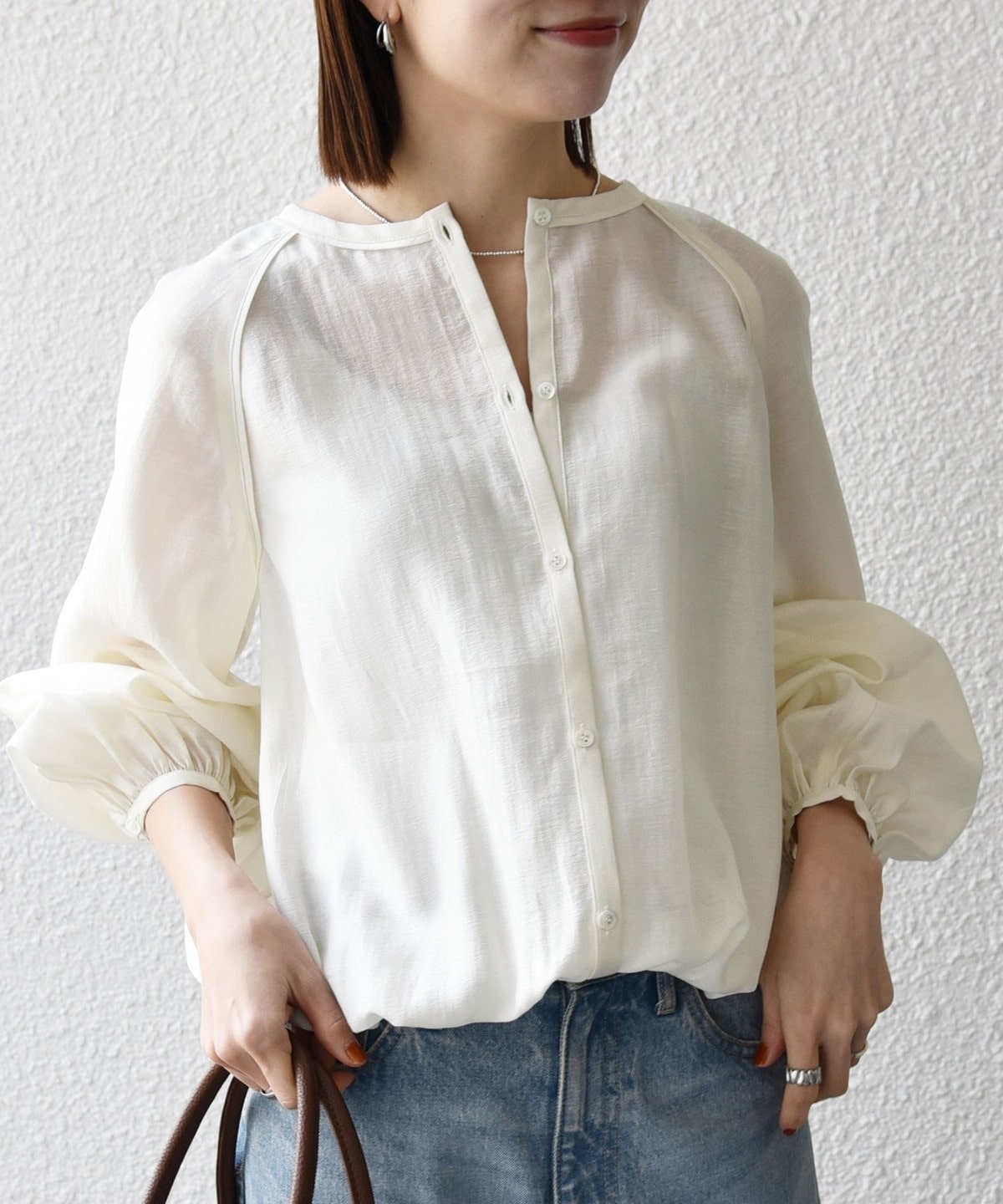 《予約》SHIPS any:〈洗濯機可能〉シアー クルーネック ボリューム スリーブ ブラウス