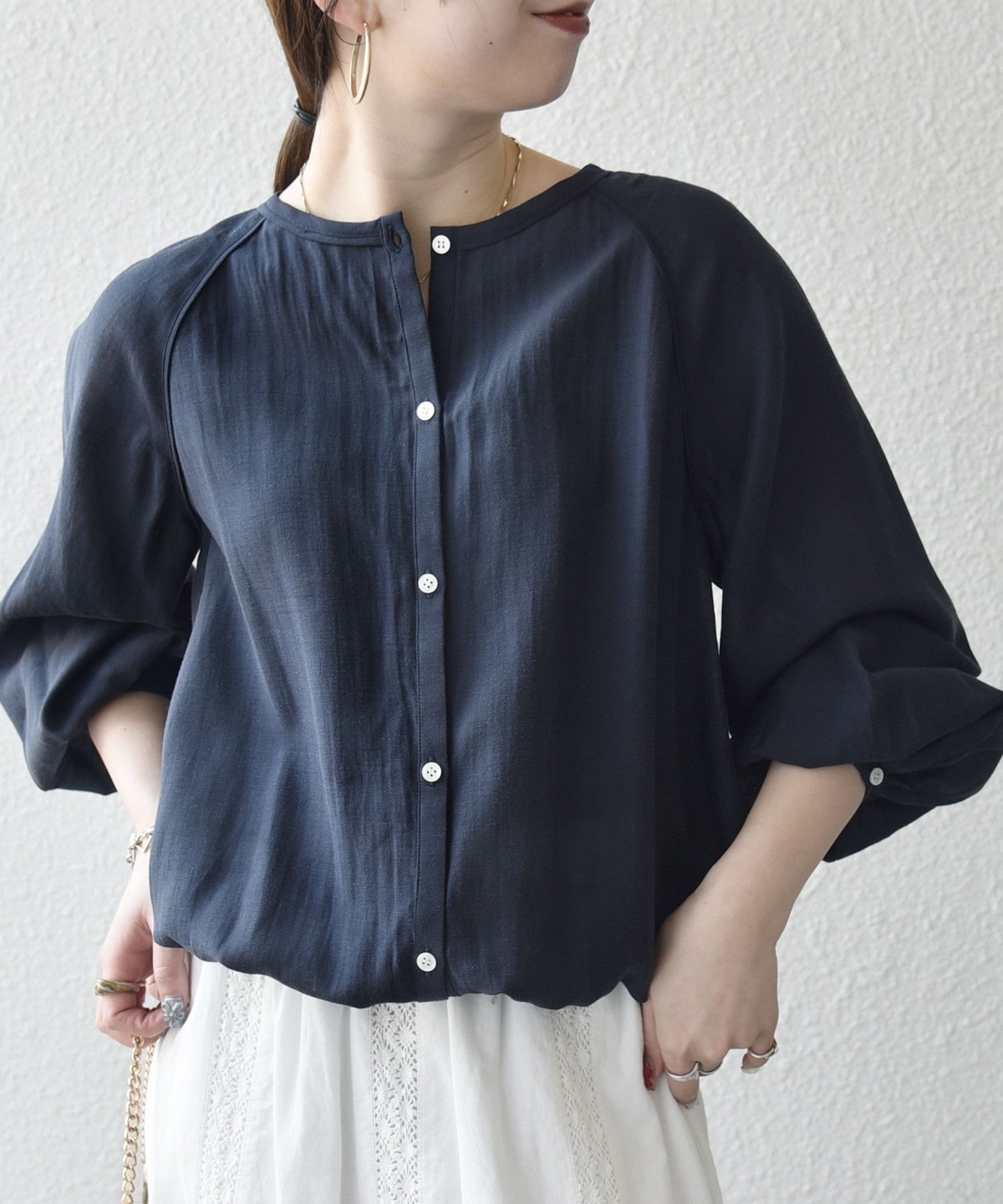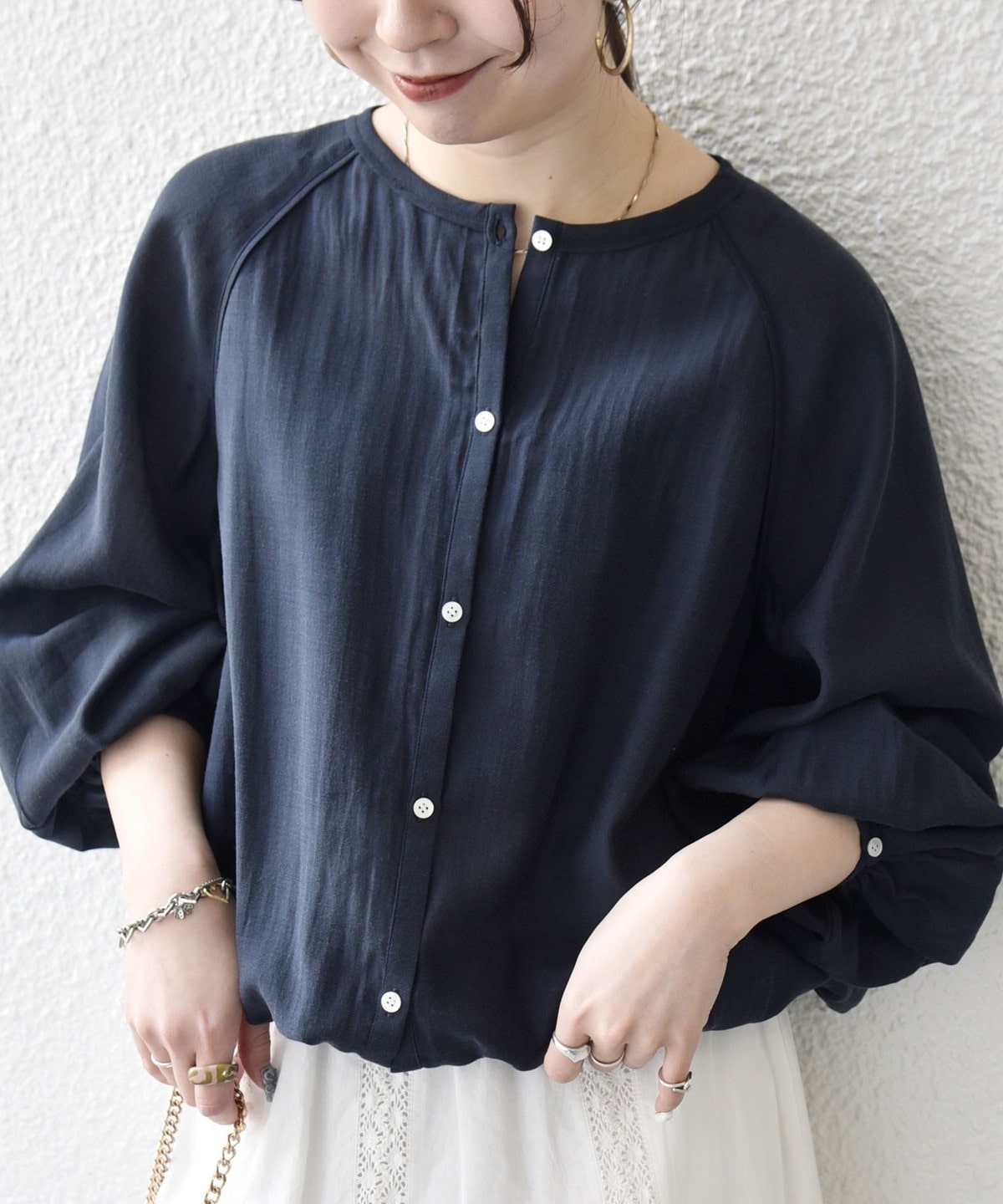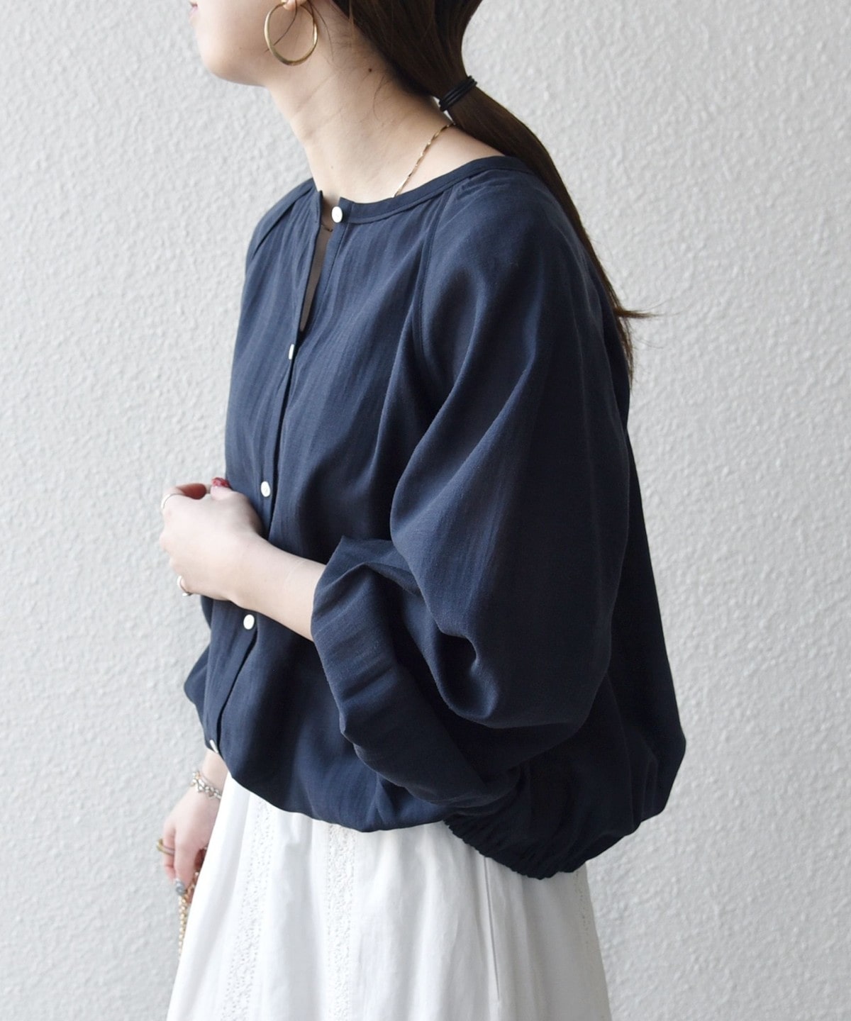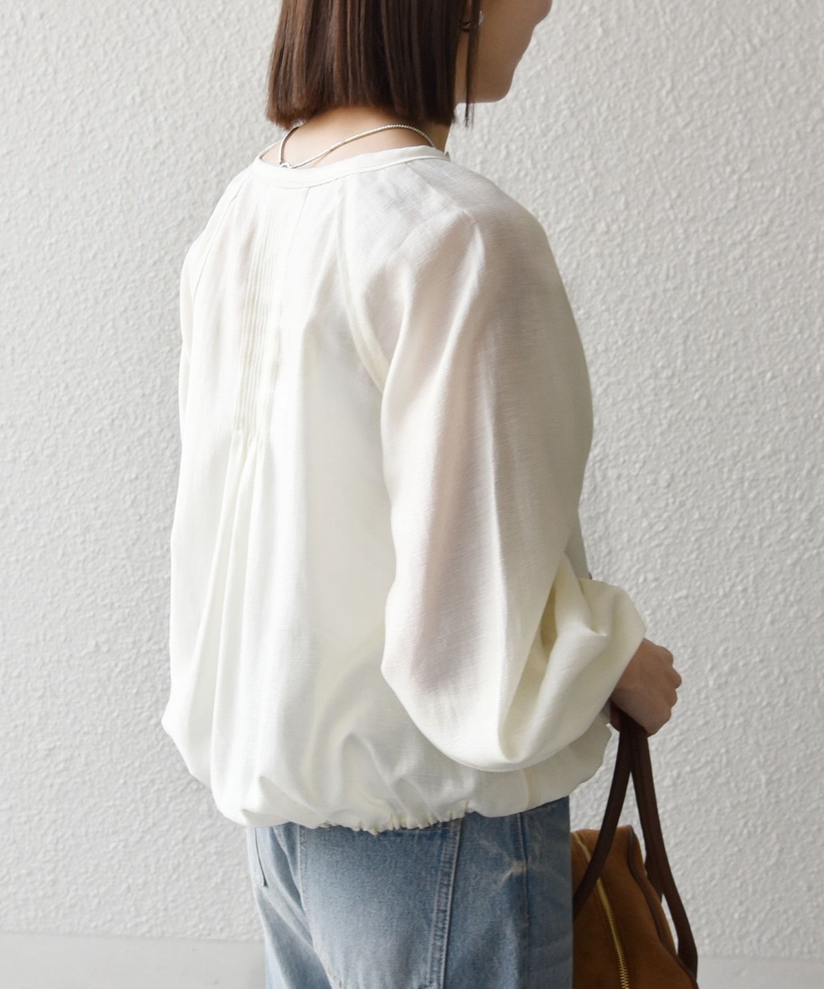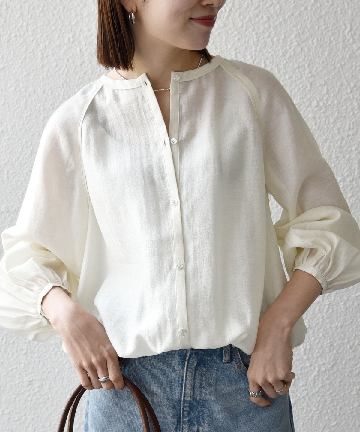 《予約》SHIPS any:〈洗濯機可能〉シアー クルーネック ボリューム スリーブ ブラウス