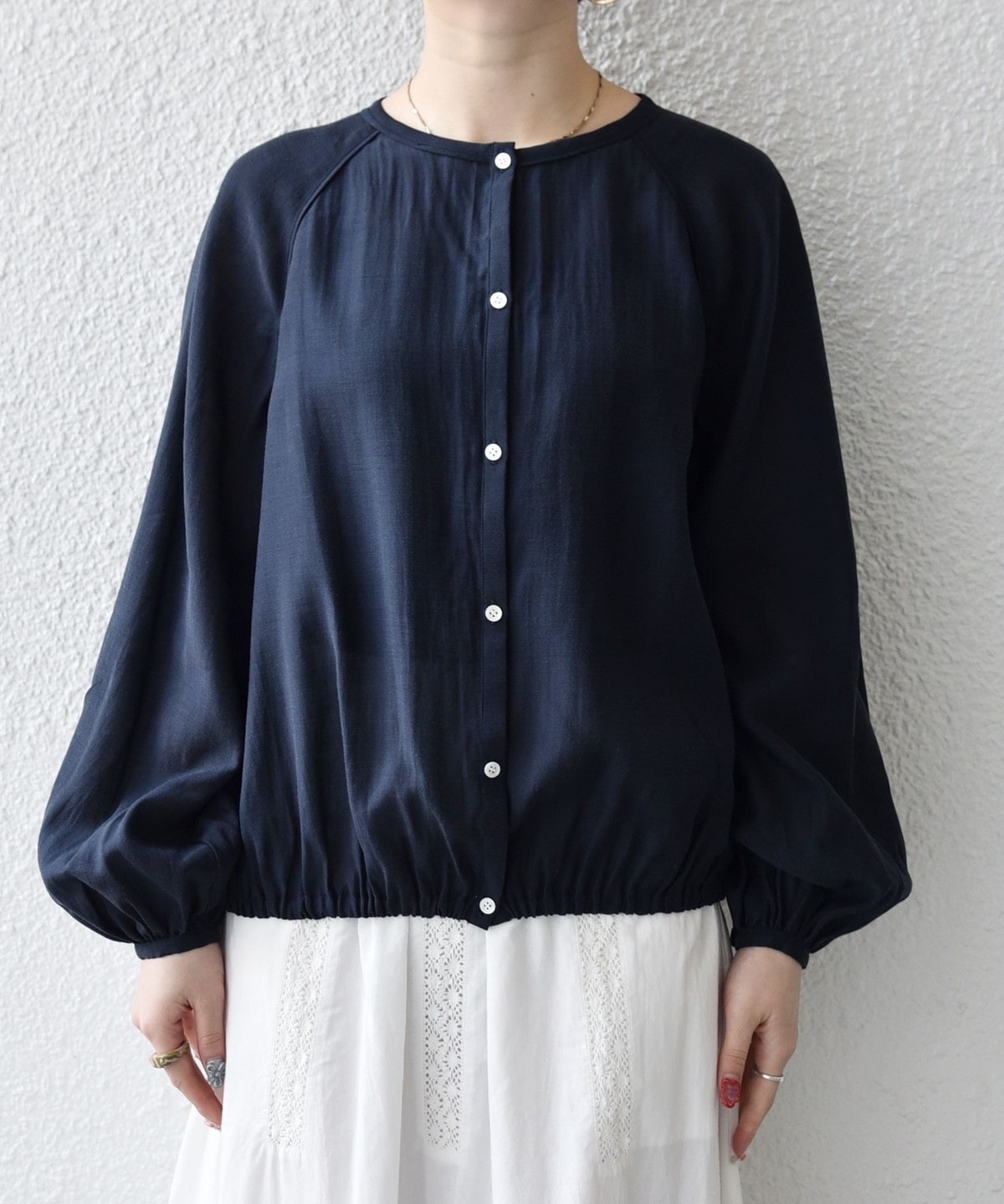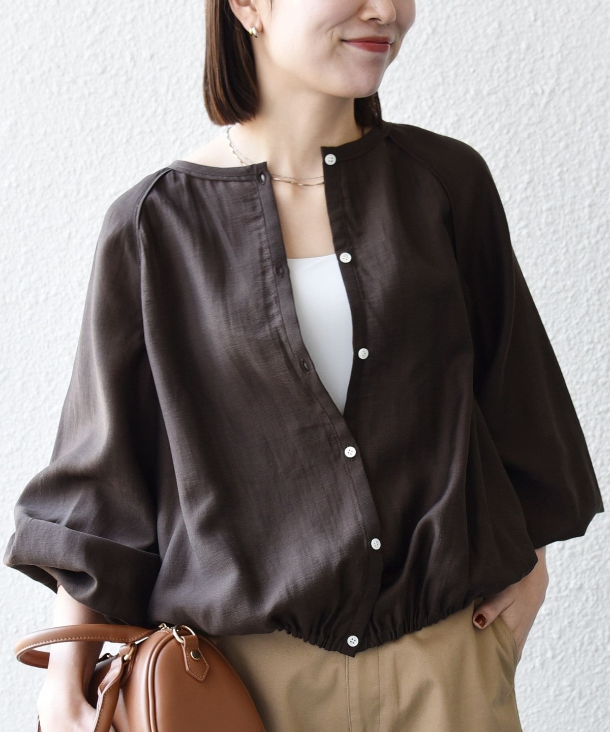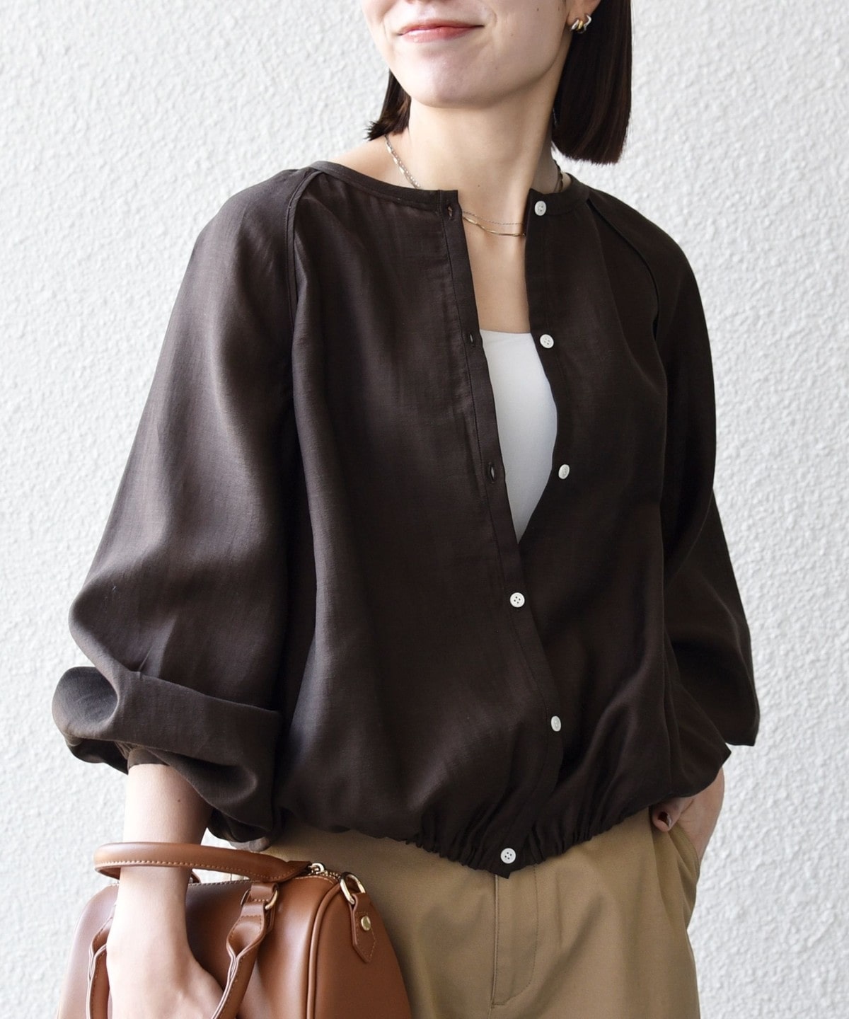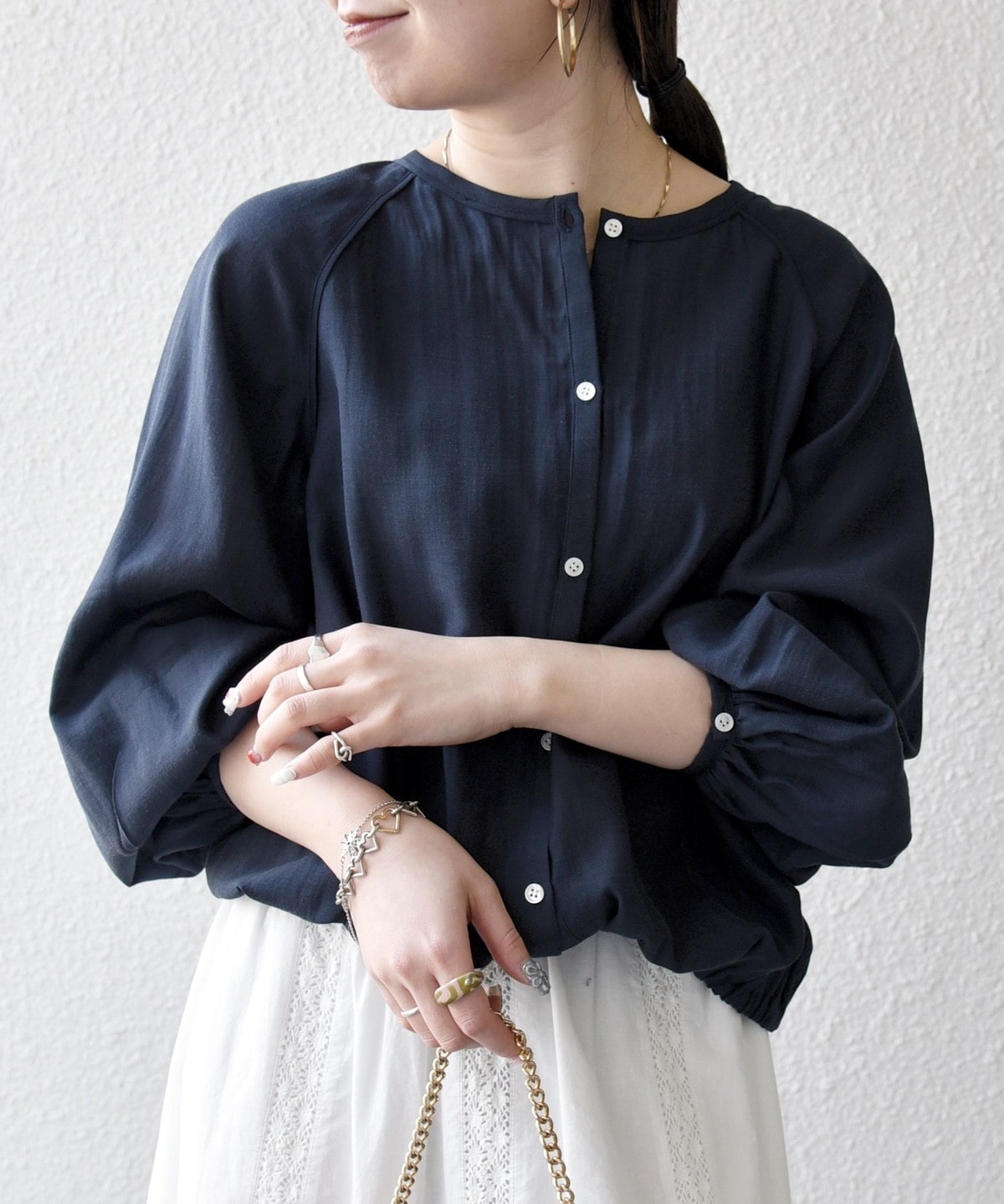 《予約》SHIPS any:〈洗濯機可能〉シアー クルーネック ボリューム スリーブ ブラウス