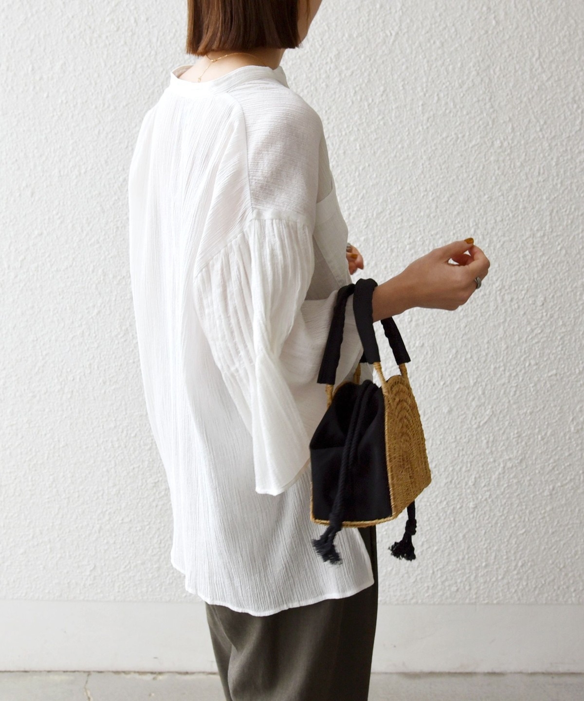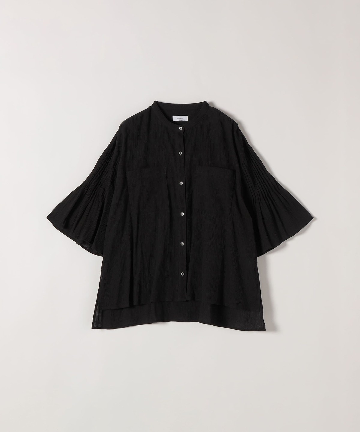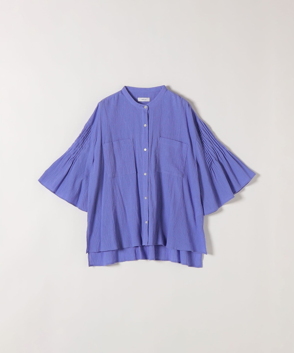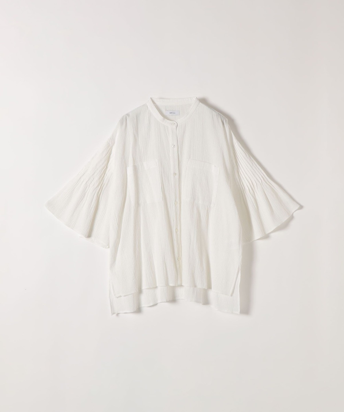 43. 《予約》SHIPS any:〈洗濯機可能〉楊柳 シアー バンド カラー フレア シャツ