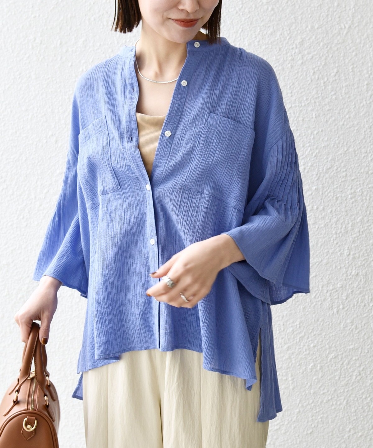> > >  > 《予約》SHIPS any:〈洗濯機可能〉楊柳 シアー バンド カラー フレア シャツ