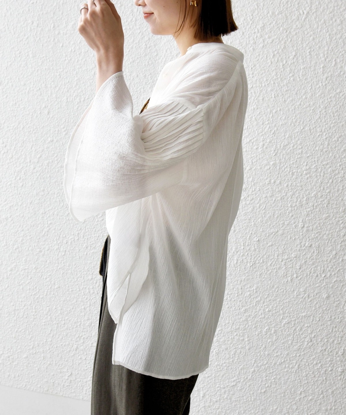 34. 《予約》SHIPS any:〈洗濯機可能〉楊柳 シアー バンド カラー フレア シャツ