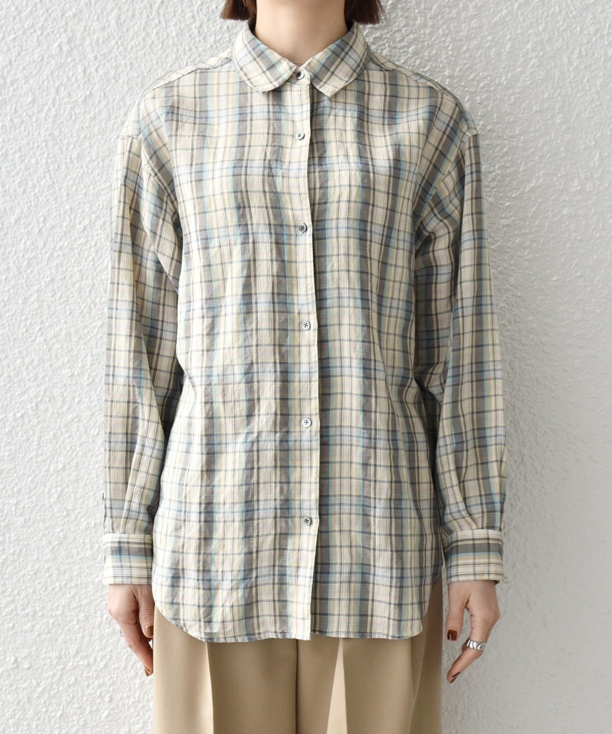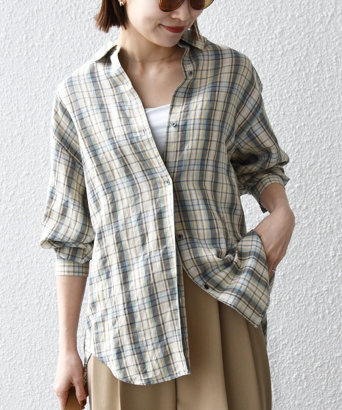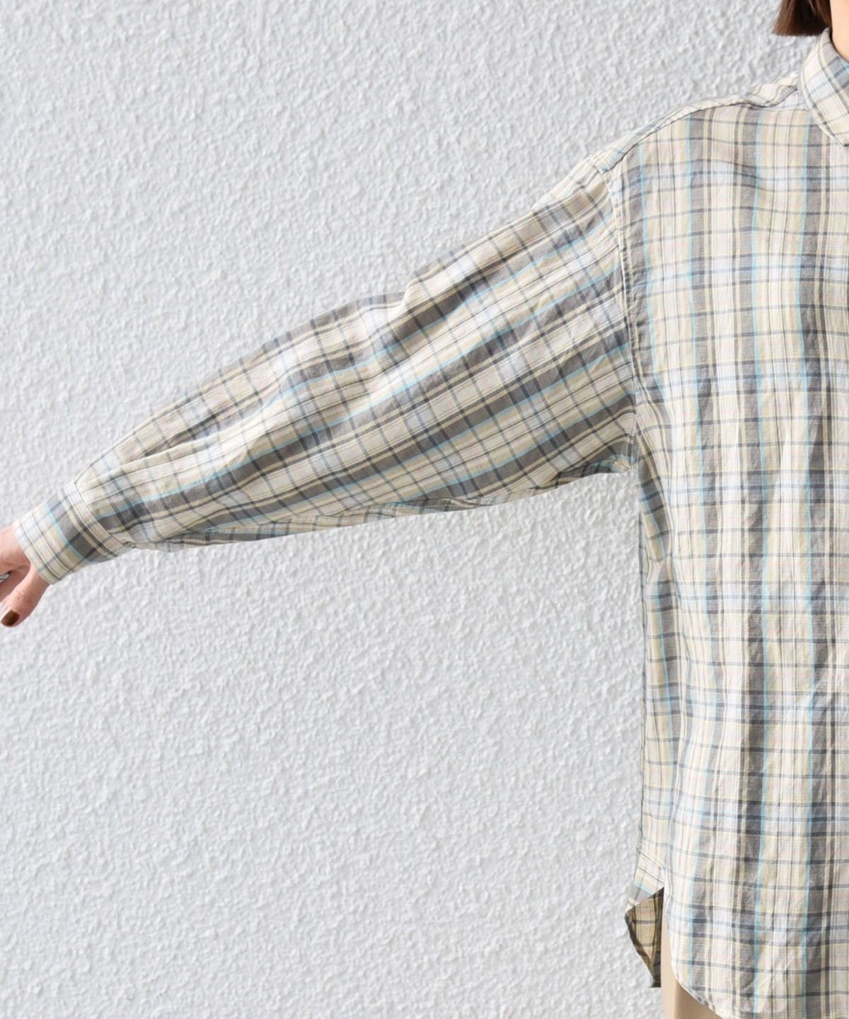 > > >  > 《予約》SHIPS any:〈洗濯機可能〉リネン ミックス レギュラーカラー ルーズ 刺繍 シャツ(チェック)