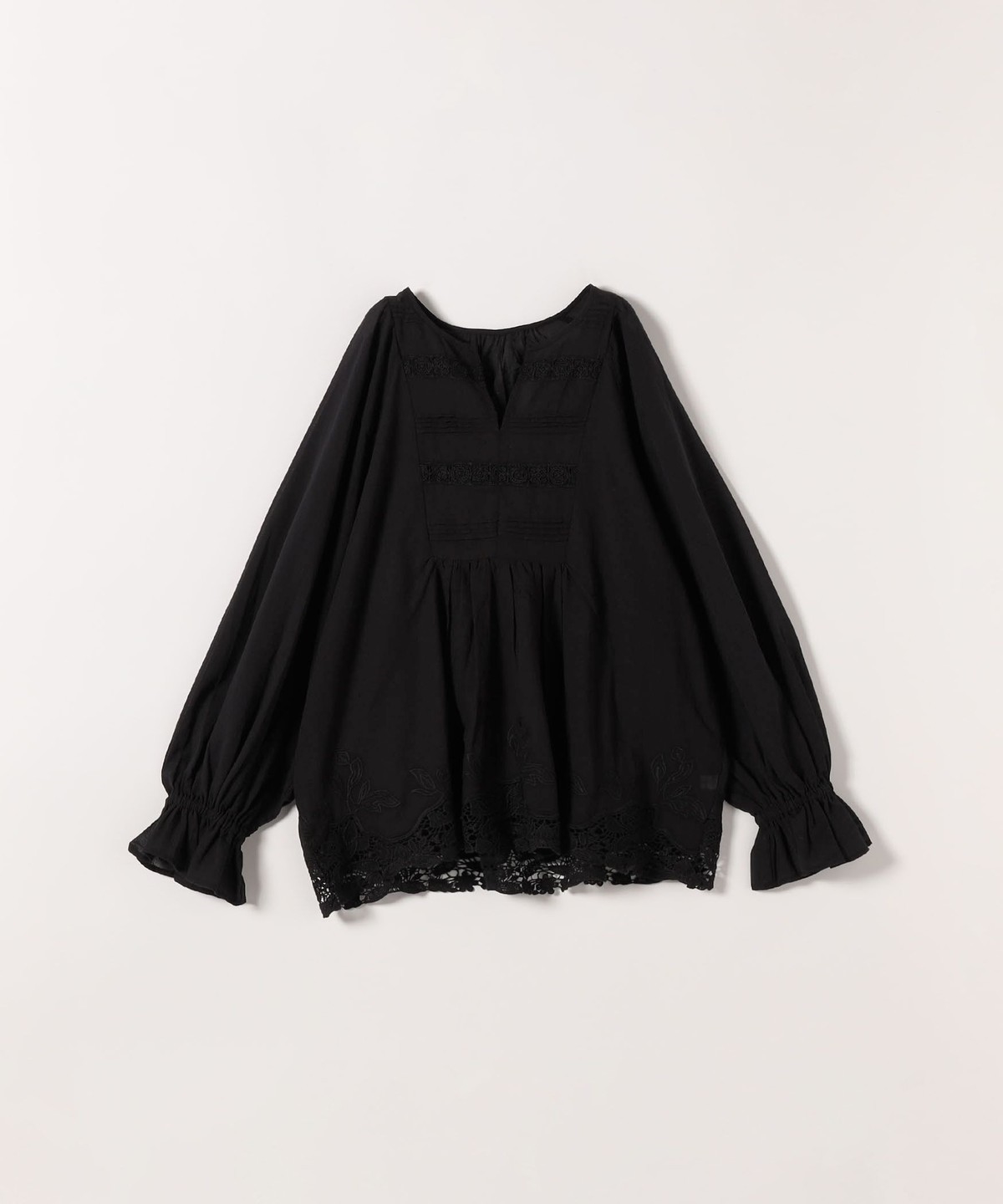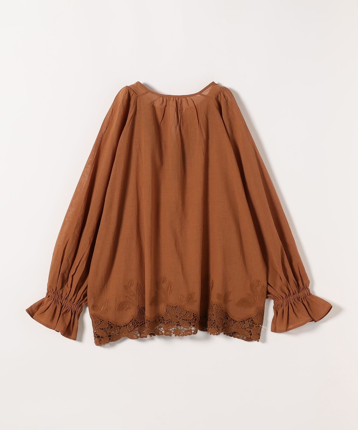 《予約》SHIPS any:〈手洗い可能〉コットン レース ヘム キーネック ギャザー ブラウス